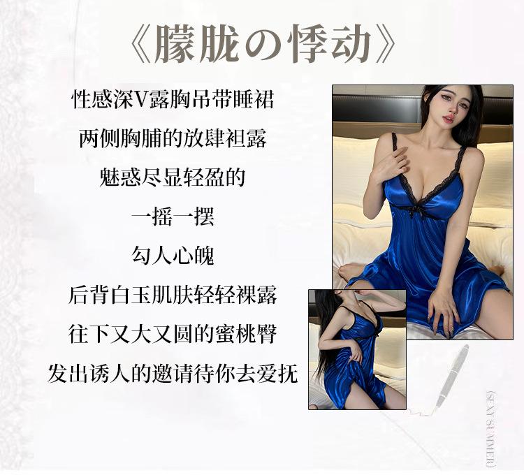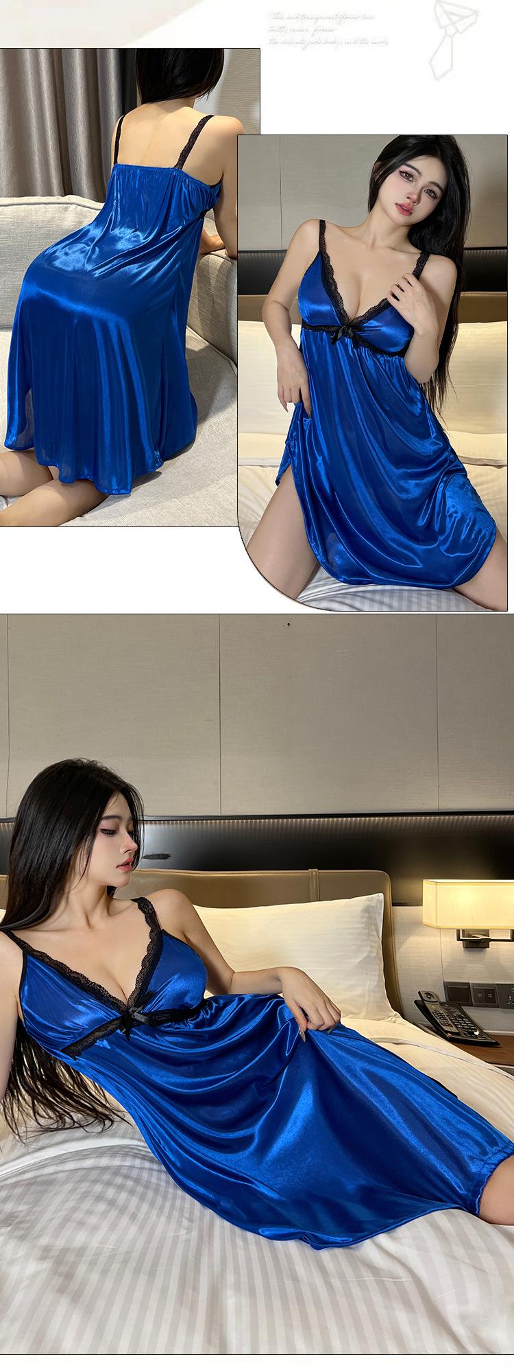 Camisón Sexy de Tirantes Espalda Descubierta Encaje Verano Sexy Satén Puro Camisón Sexy para Casa Camisón Delgado