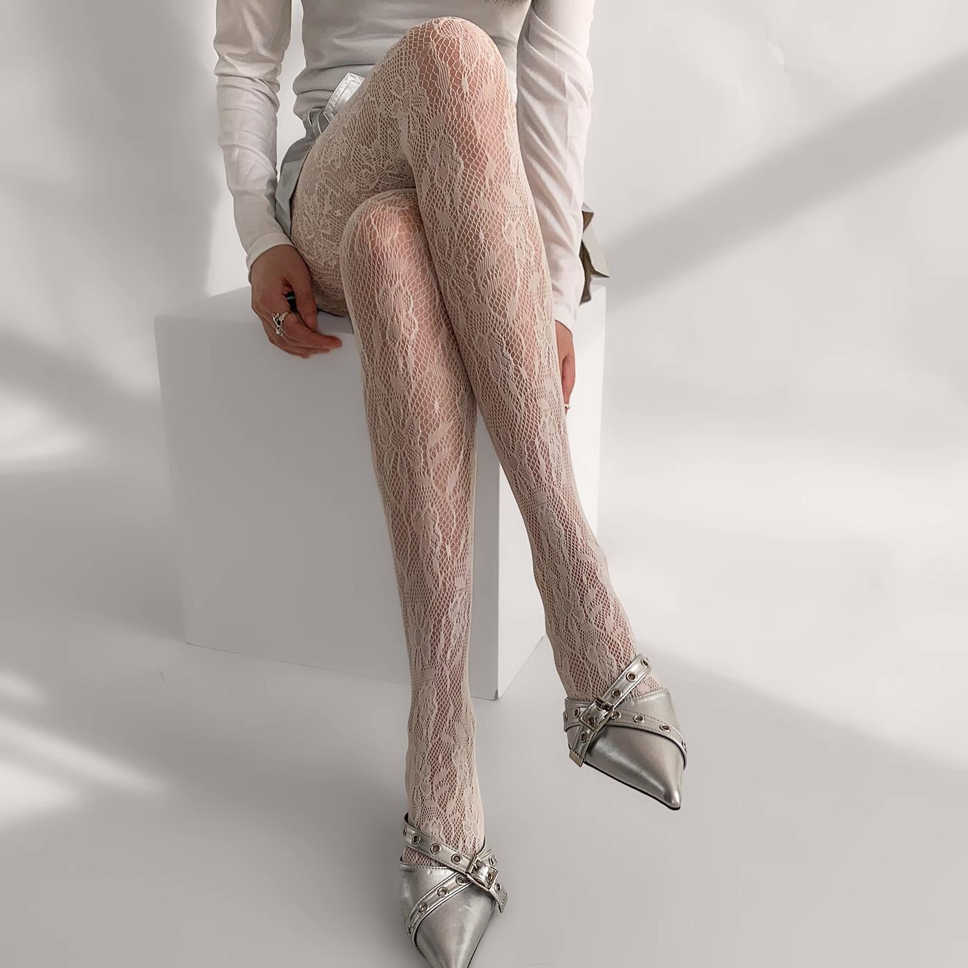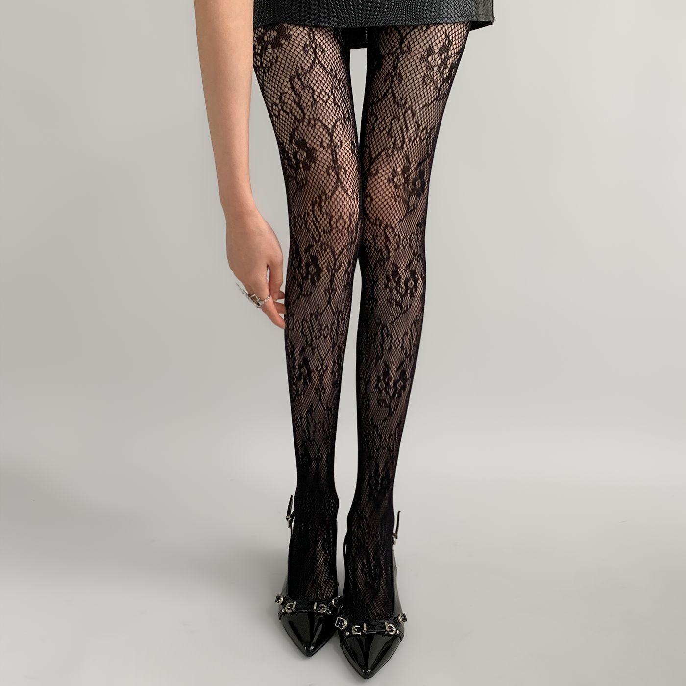 Medias de seda blanca pura sexys de primavera y verano, medias finas de red de encaje para niña JK, medias francesas con base hueca, adelgazantes de seda negra