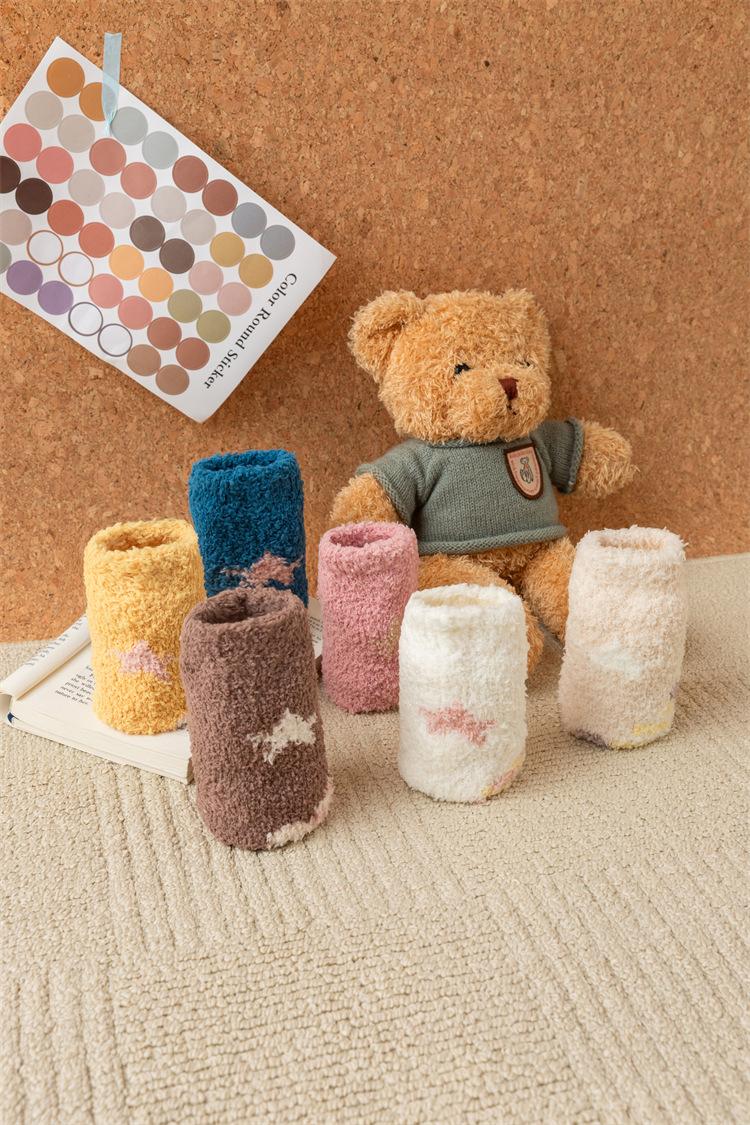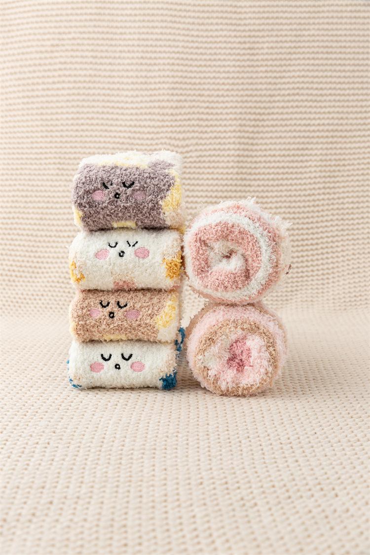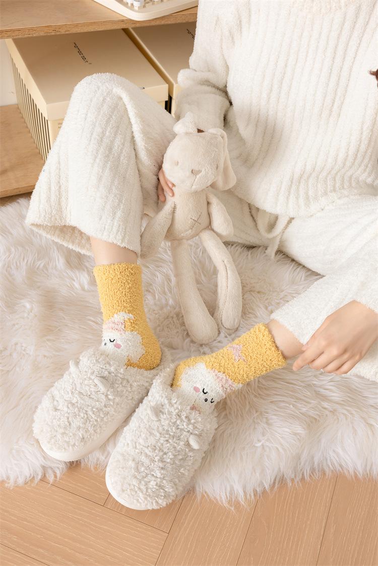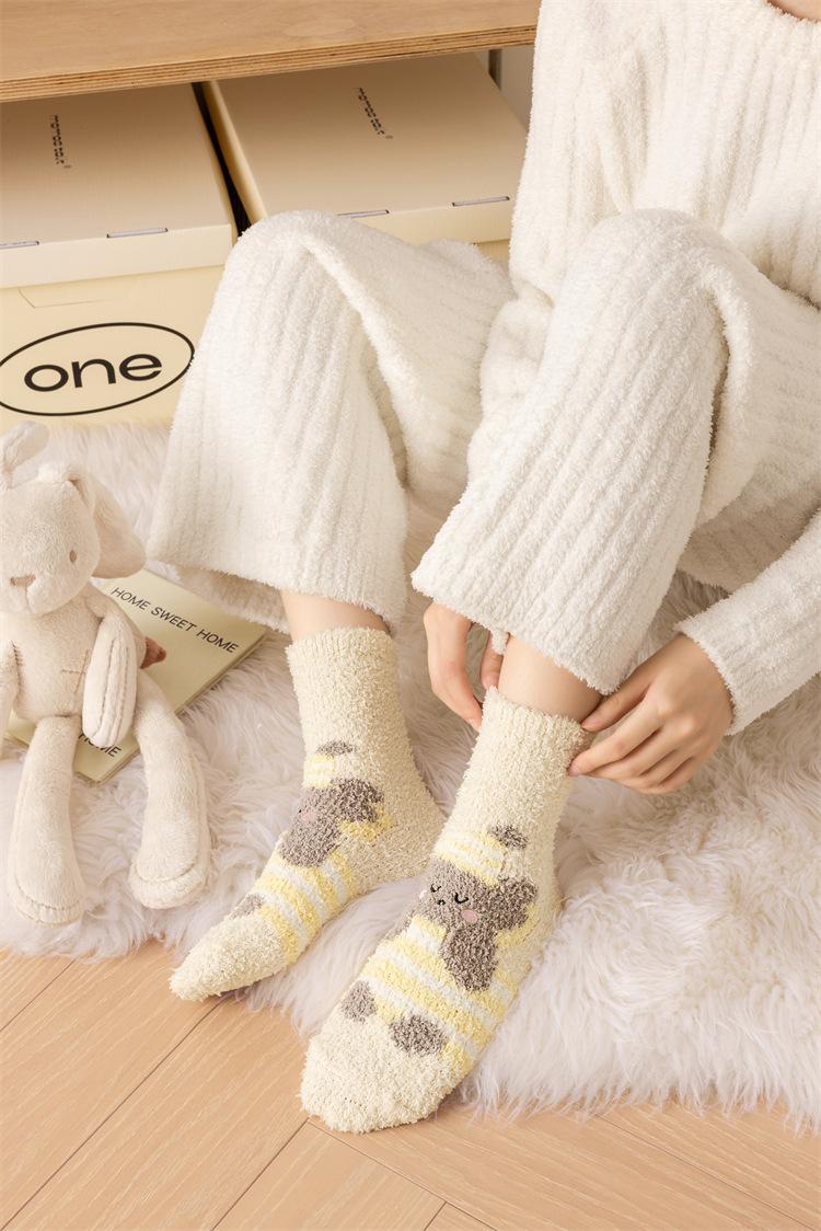 Calcetines gruesos de lana con forro polar para otoño e invierno, calcetines de media pantorrilla con dibujos animados, calcetines cálidos de lana coral sin pelusa para mujer