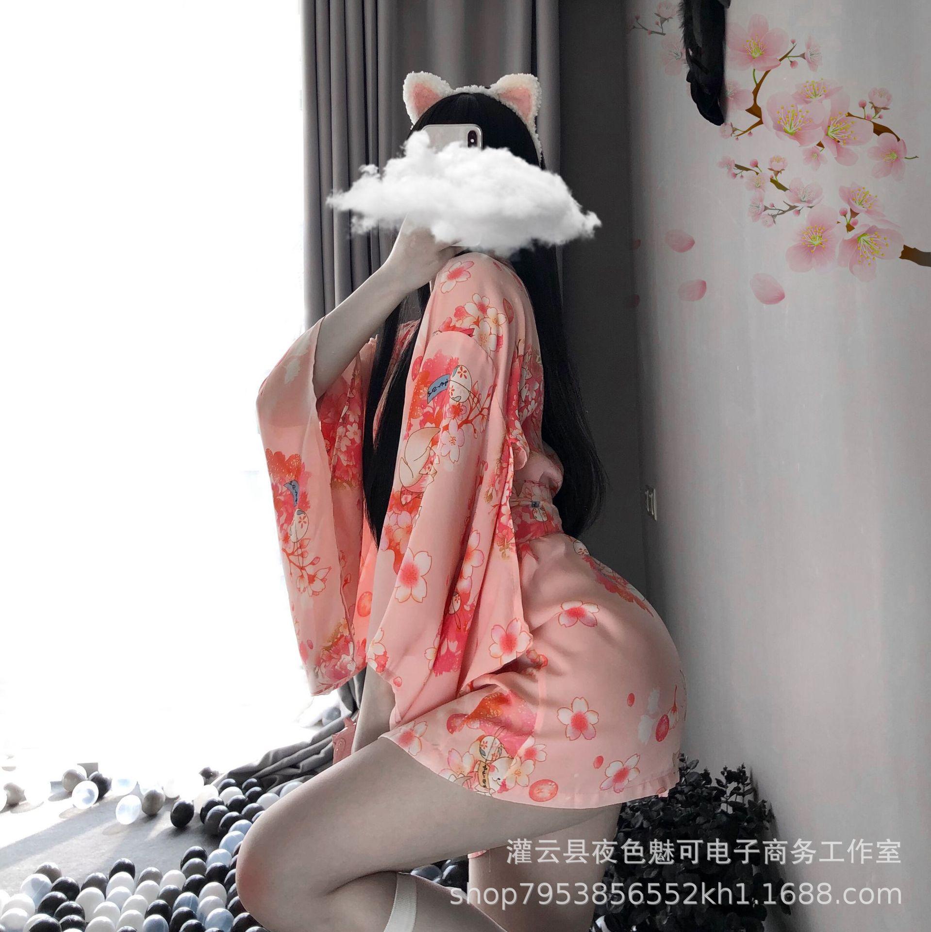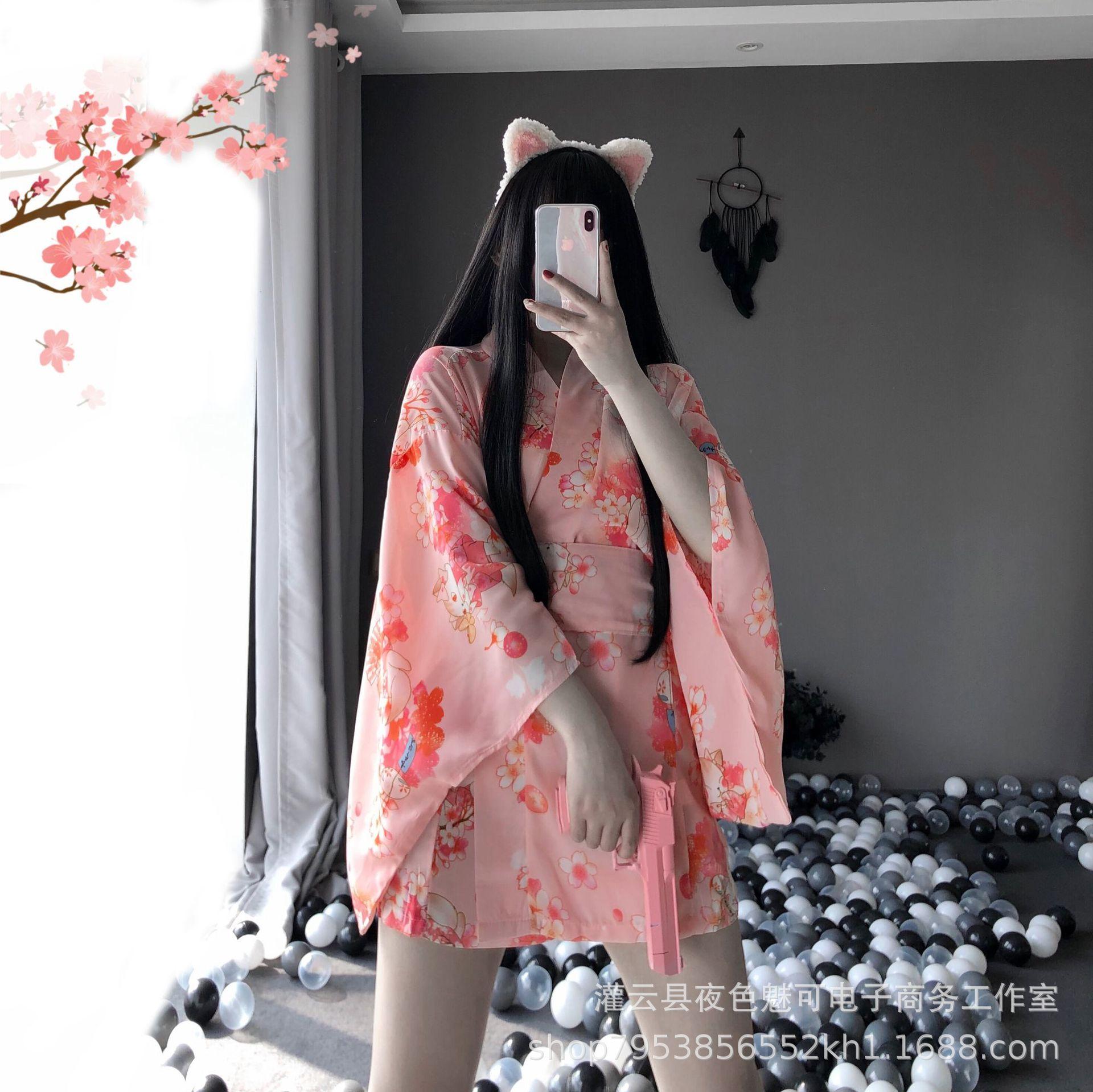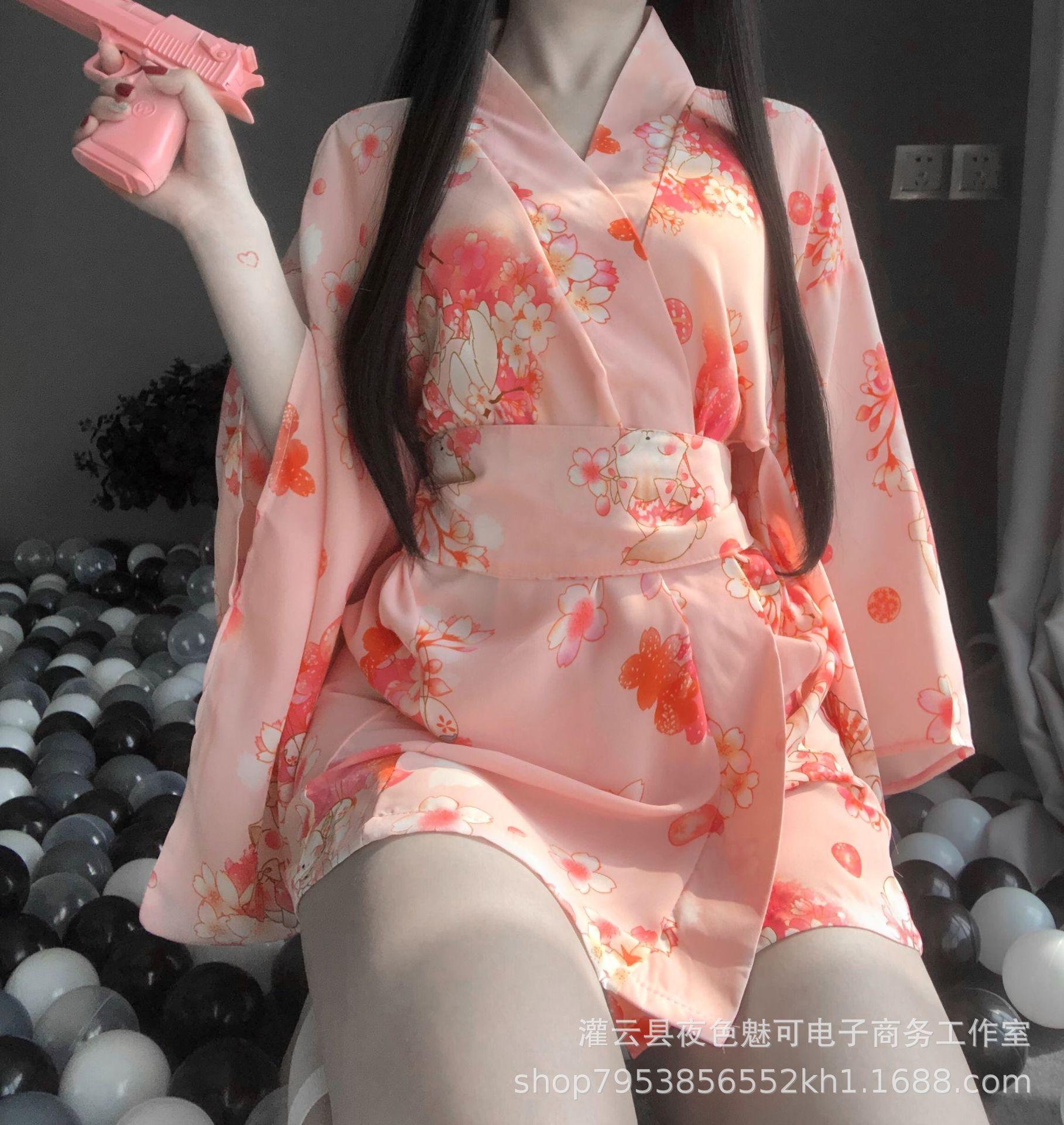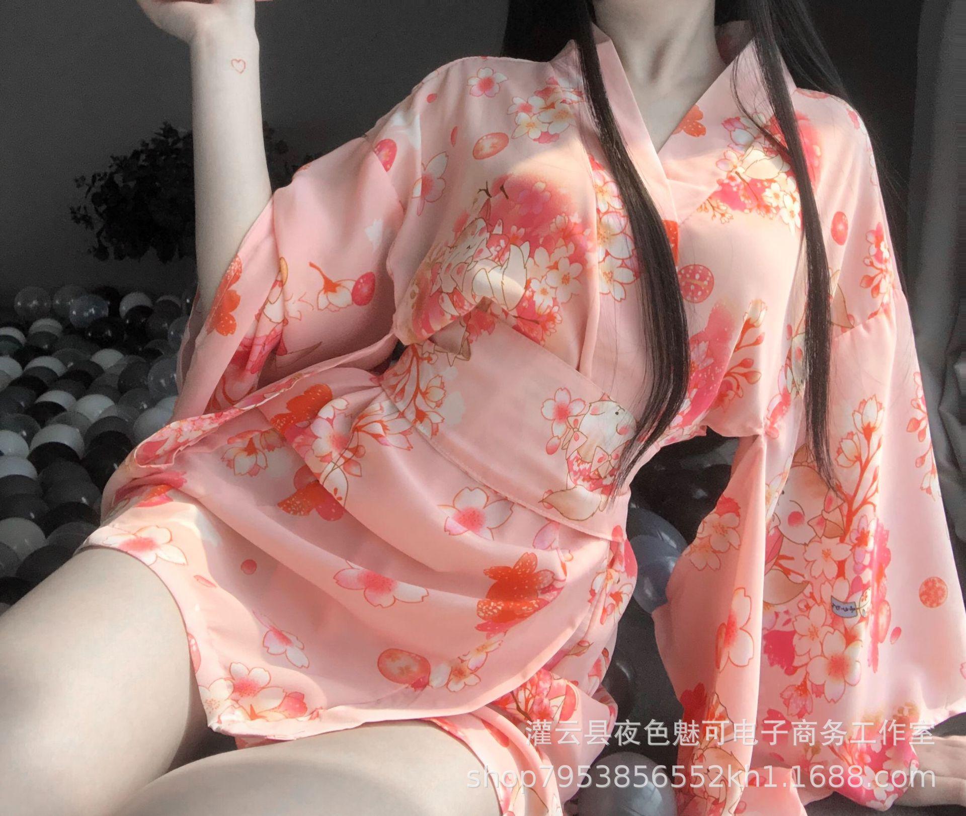 Conjunto de Kimono con Estampado Retro Japonés Nueva Lencería Sexy Bata de Baño para Mujer Moda al Mayoreo