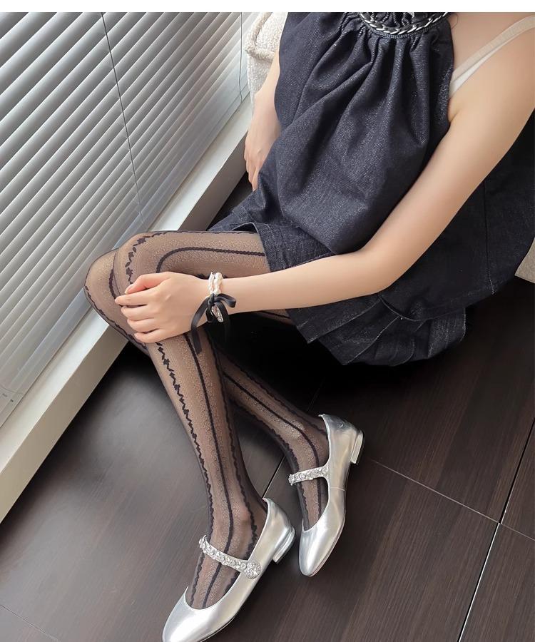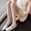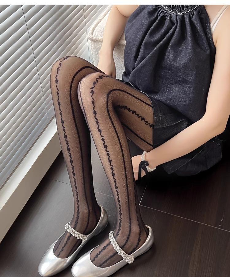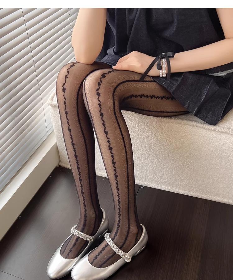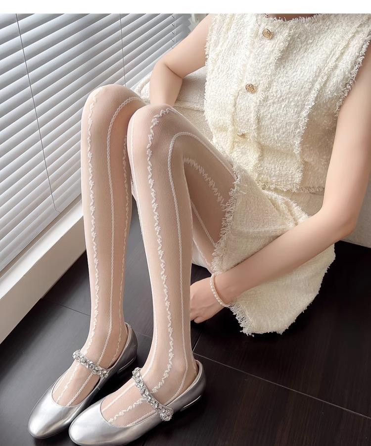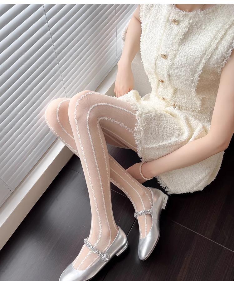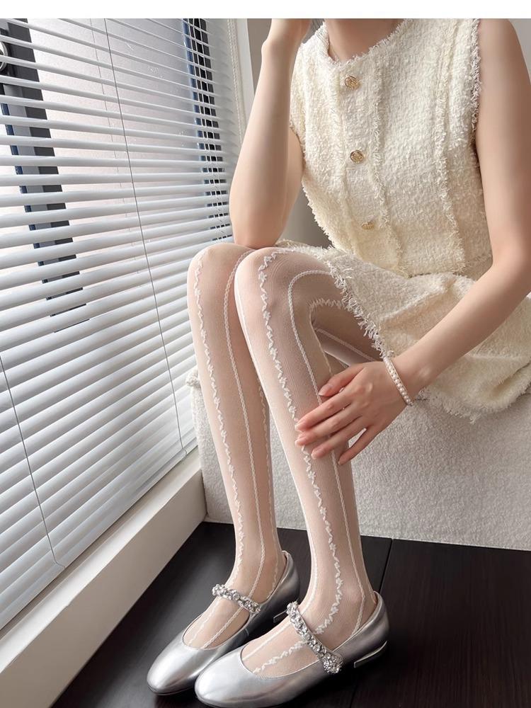 Medias finas de seda blanca pura, carnosas y de primavera y verano, ajustadas, antigancho, de seda jacquard negra, con base de encaje para mujer.