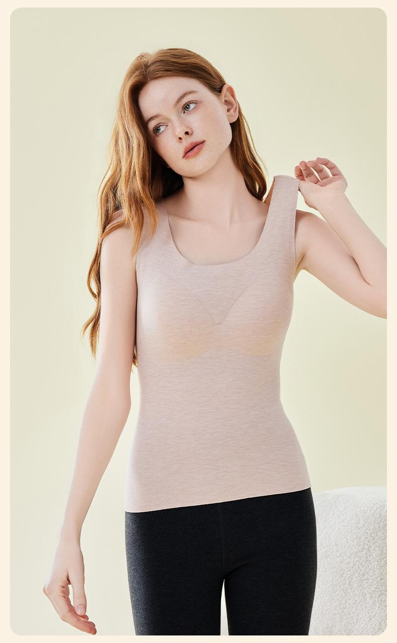 Chaleco Cálido Nuevo de Seda Cachemira con Almohadilla en el Pecho Chaleco Base para Mujer con Forro Polar Engrosado Otoño e Invierno Chaleco de Terciopelo para Mujer