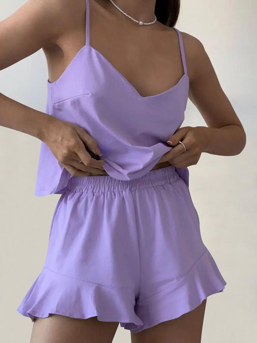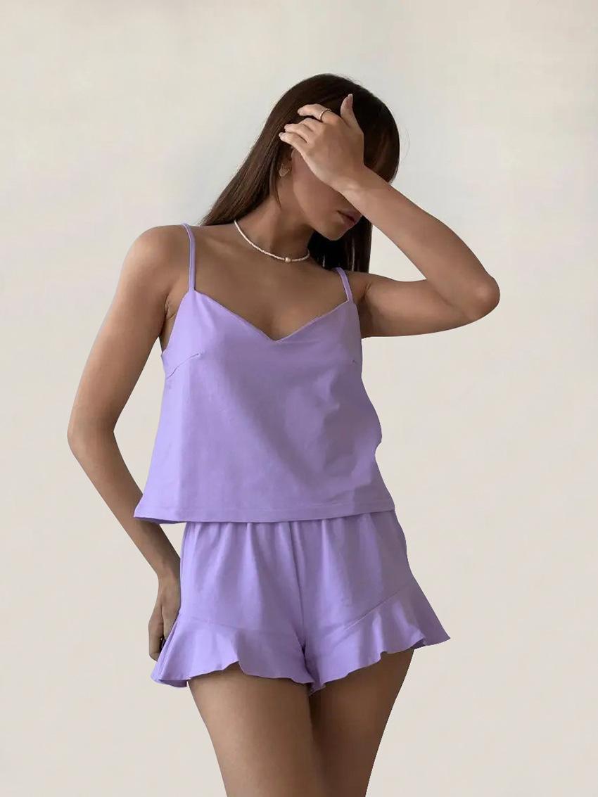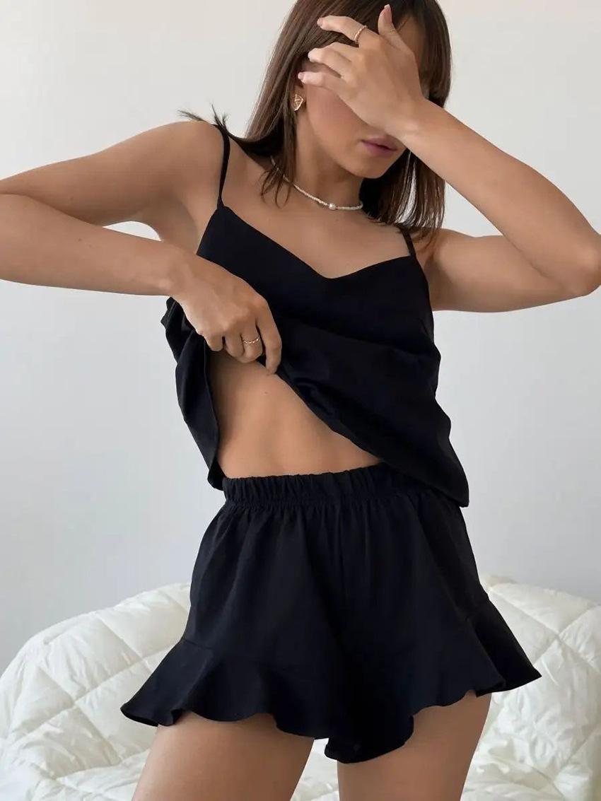 Pijama corto sexy de color sólido para mujer, traje de otoño de 2024, estilo europeo y americano, venta al por mayor de ropa para el hogar transfronteriza