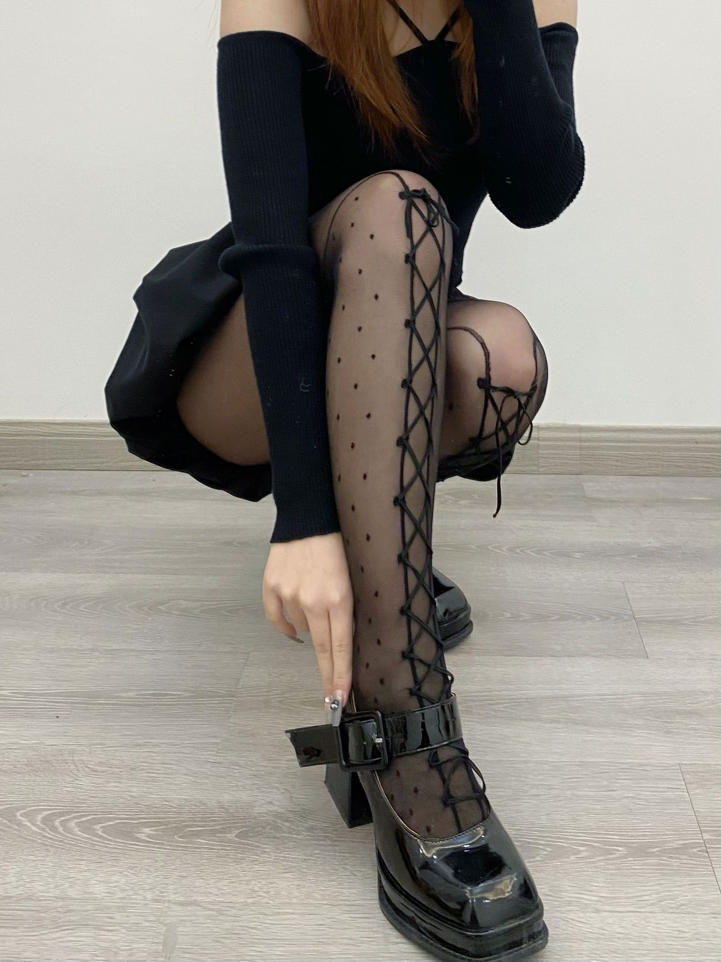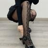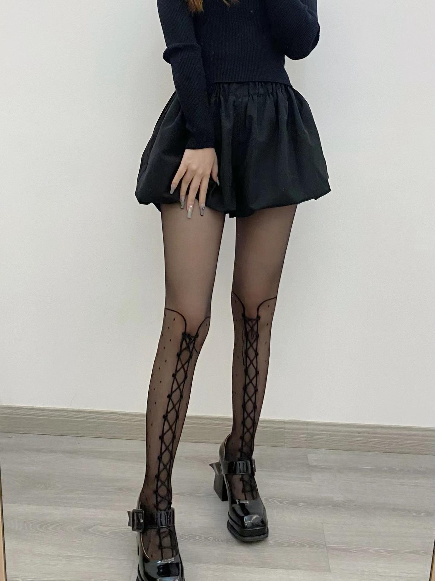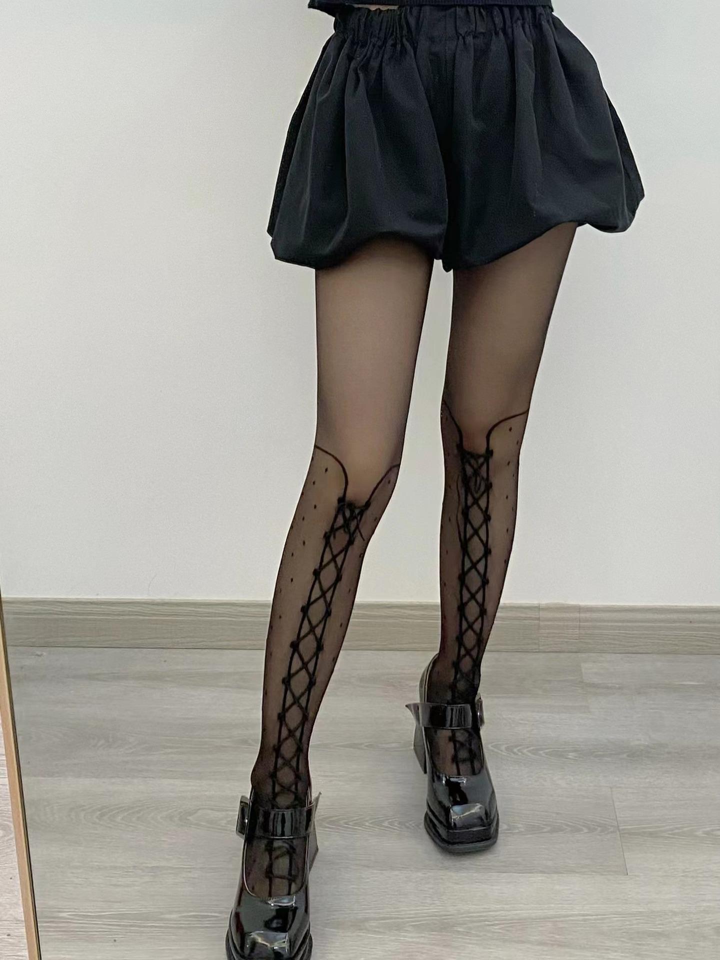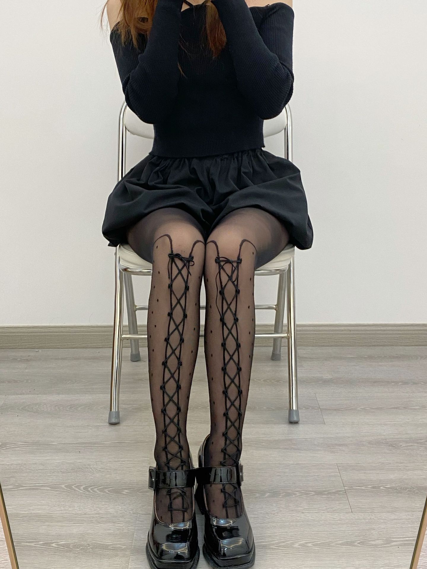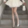 Otoño e Invierno nuevo agua Jade punto cosido falso pantorrilla correa lazo negro seda blanco seda puro estilo chica caliente medias