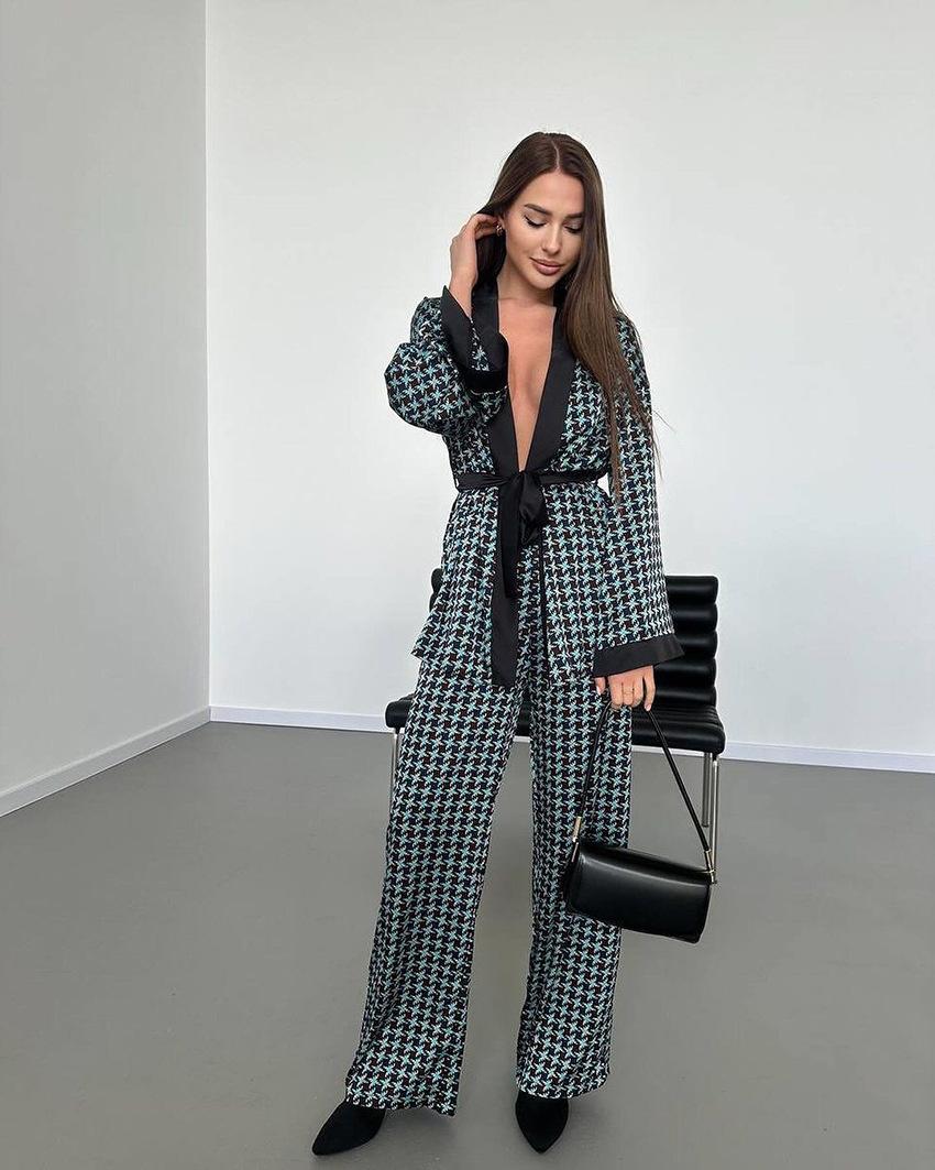 Pijama de dos piezas con estampado de moda para el hogar, ropa de dormir suave y holgada de verano, estilo europeo y estadounidense, venta al por mayor