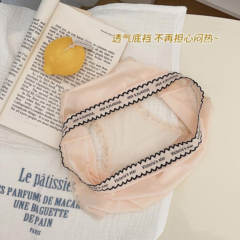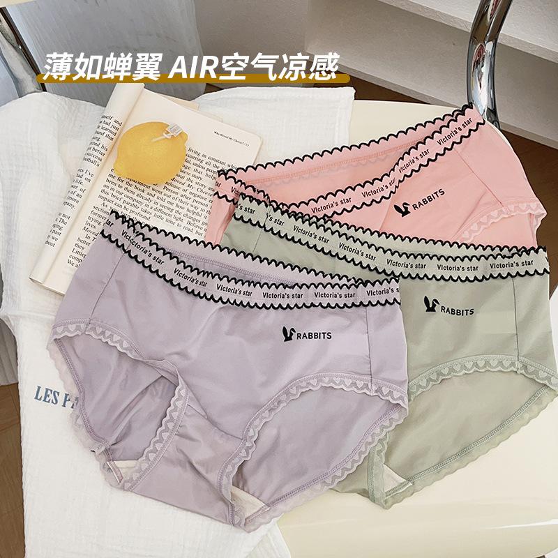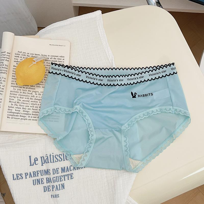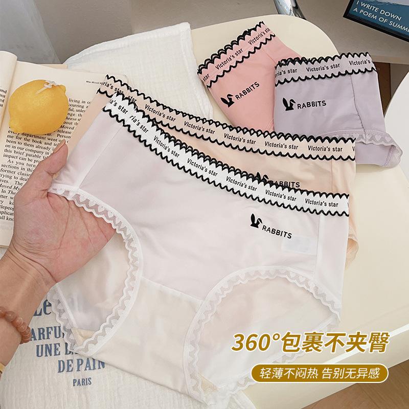 Ropa interior de verano para mujer, de seda helada, fina, transpirable, de cintura media, antimarcas, de algodón puro, antibacteriana, de encaje sexy para niñas.