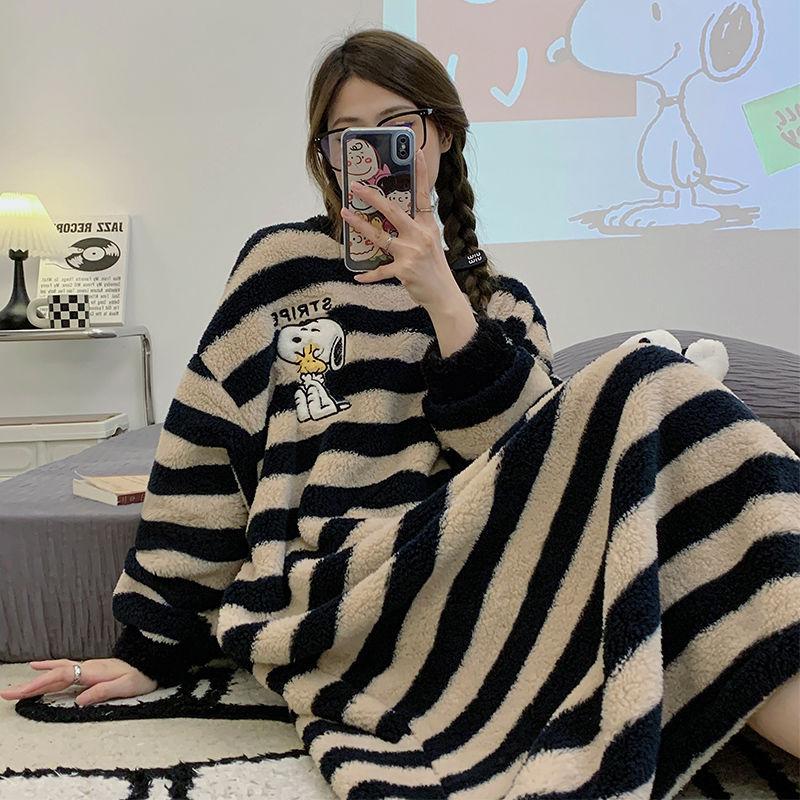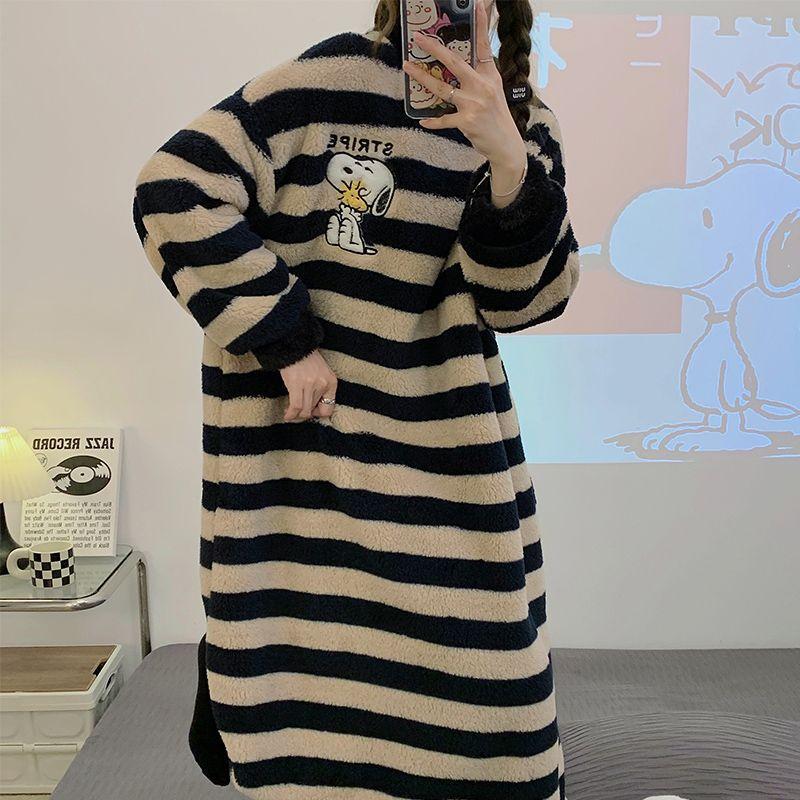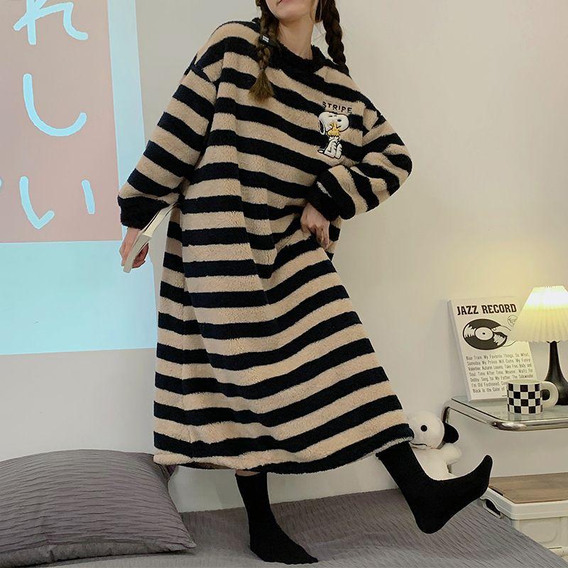 Nuevo camisón de otoño e invierno para mujer, pijama de forro polar de coral, ropa para el hogar de franela con forro polar, grueso, talla grande, vestido para mujeres embarazadas