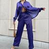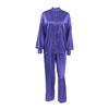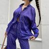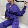 Cárdigan Camisa Pijama Conjunto de Dos Piezas Satén Morado Otoño Europeo y Americano Estampado Manga Larga Pantalón Ropa de Casa para Mujer
