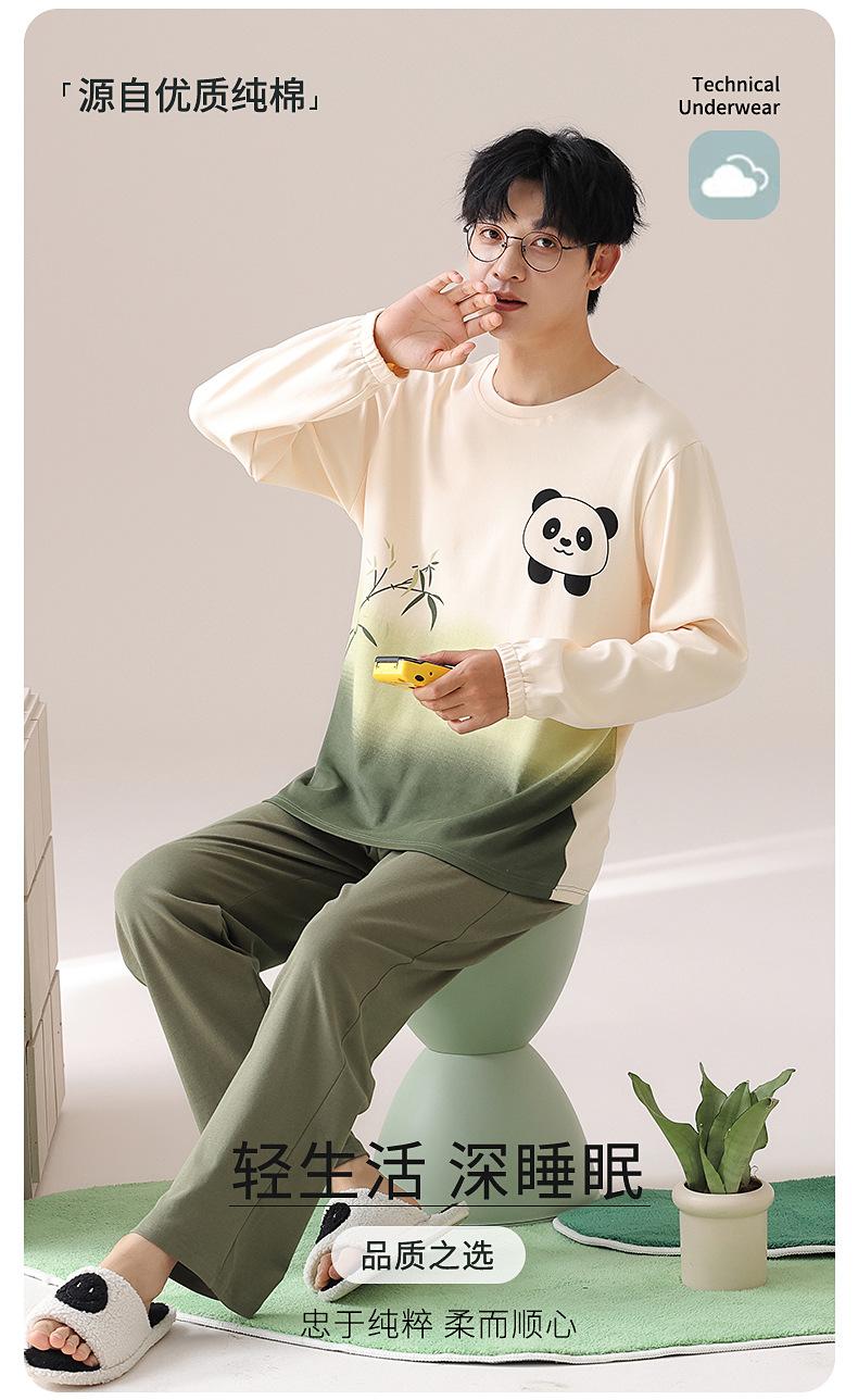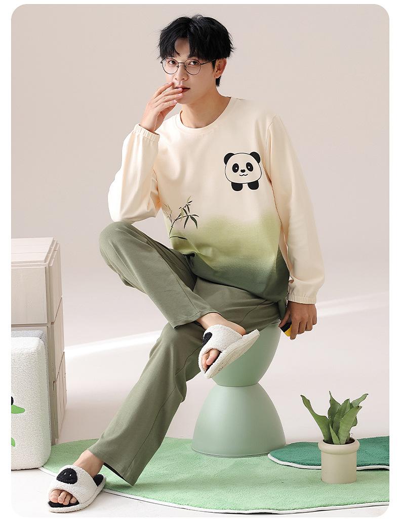 [Algodón puro] Pijamas para hombre, primavera, otoño e invierno, manga larga, para adolescentes, dibujos animados, ropa para el hogar, cuello redondo, traje de alta gama, moda.