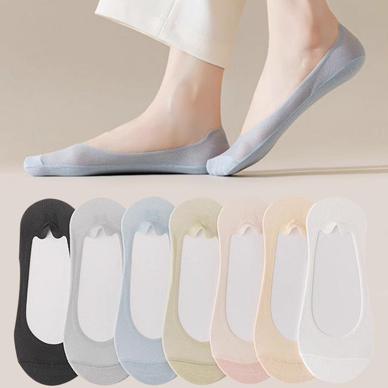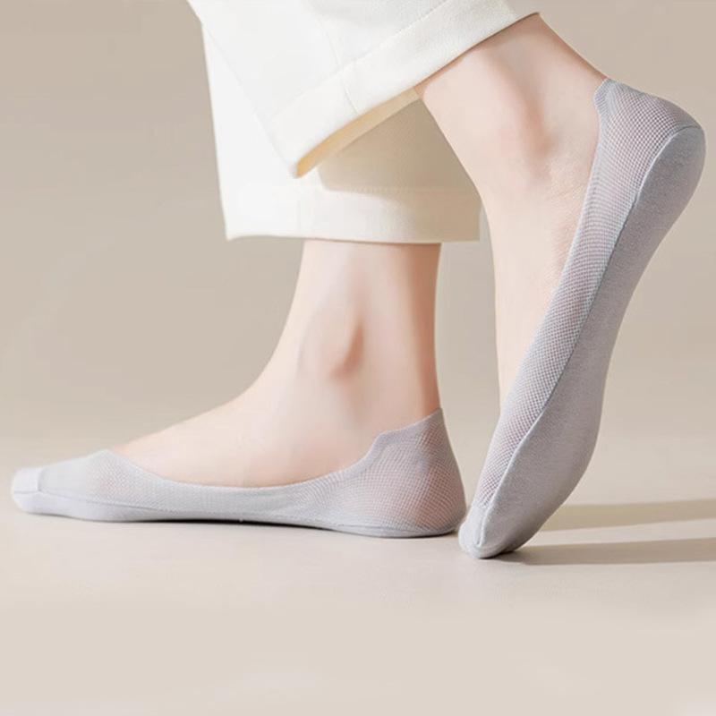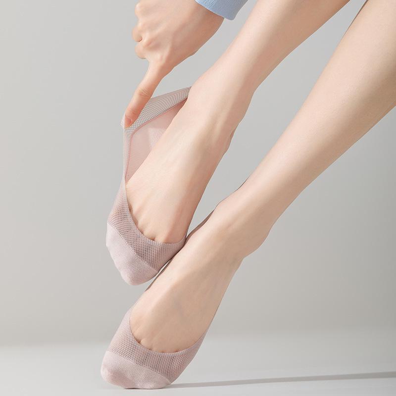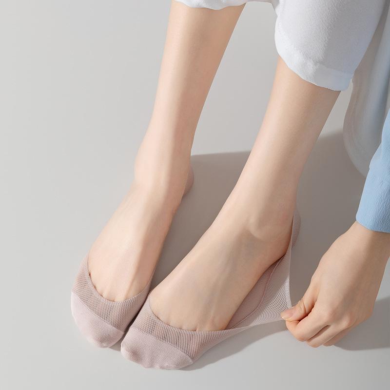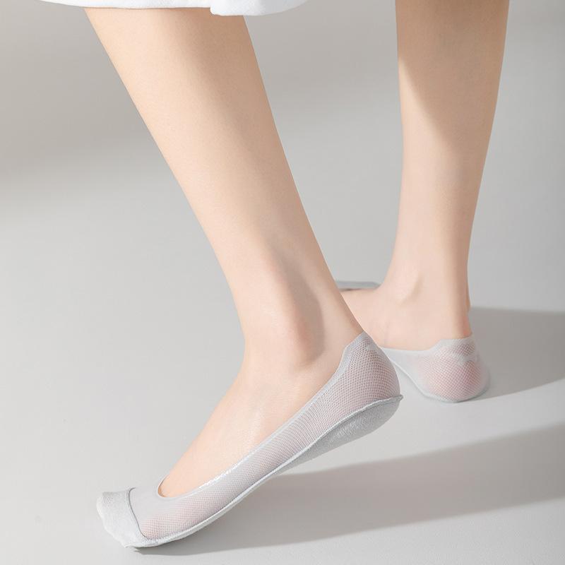 Calcetines de verano para mujer, de malla ultrafina, de seda helada, transpirables, absorbentes del sudor, de boca baja, invisibles, antideslizantes, con talón resistente, calcetines cortos para mujer.
