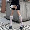 Calcetines japoneses JK blancos de verano para mujer, finos, transparentes, con encaje de carne, cortos, con lazo, negros, hasta media pantorrilla