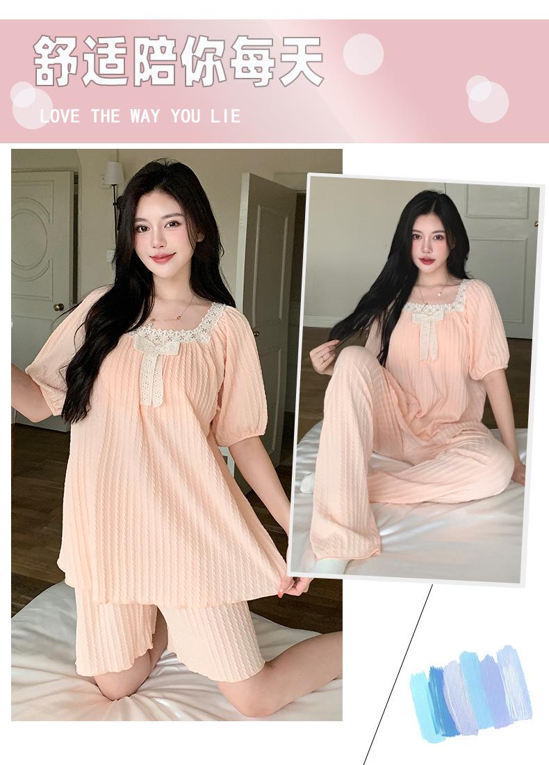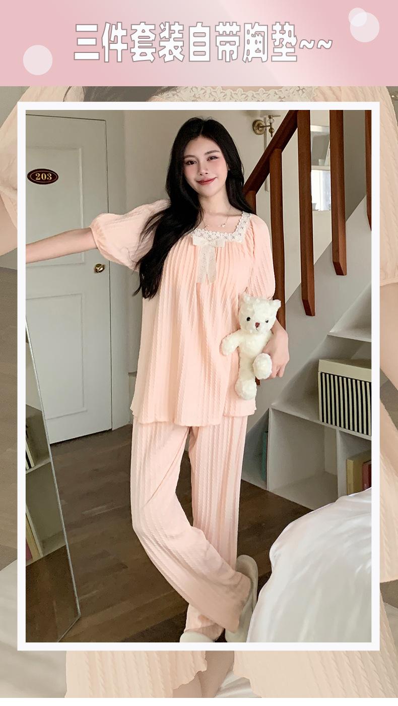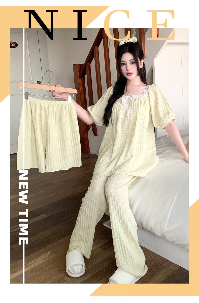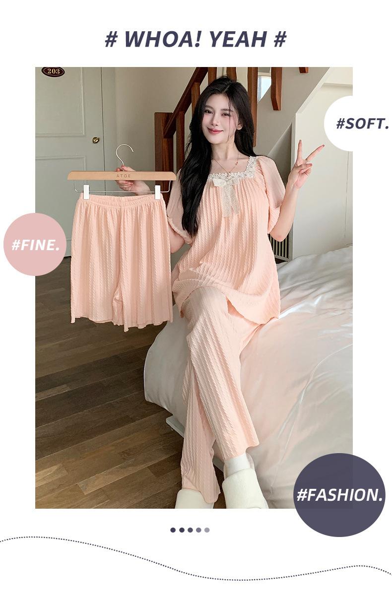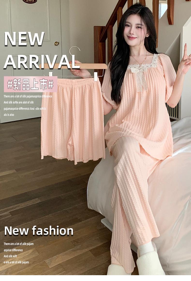 Pijama de jacquard 6535 para mujer, primavera y verano, dulce, de manga corta con almohadilla para el pecho, pantalones cortos, tres piezas, talla grande, 240 kg, ropa para el hogar