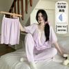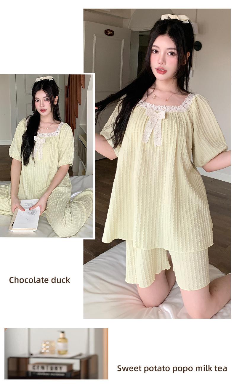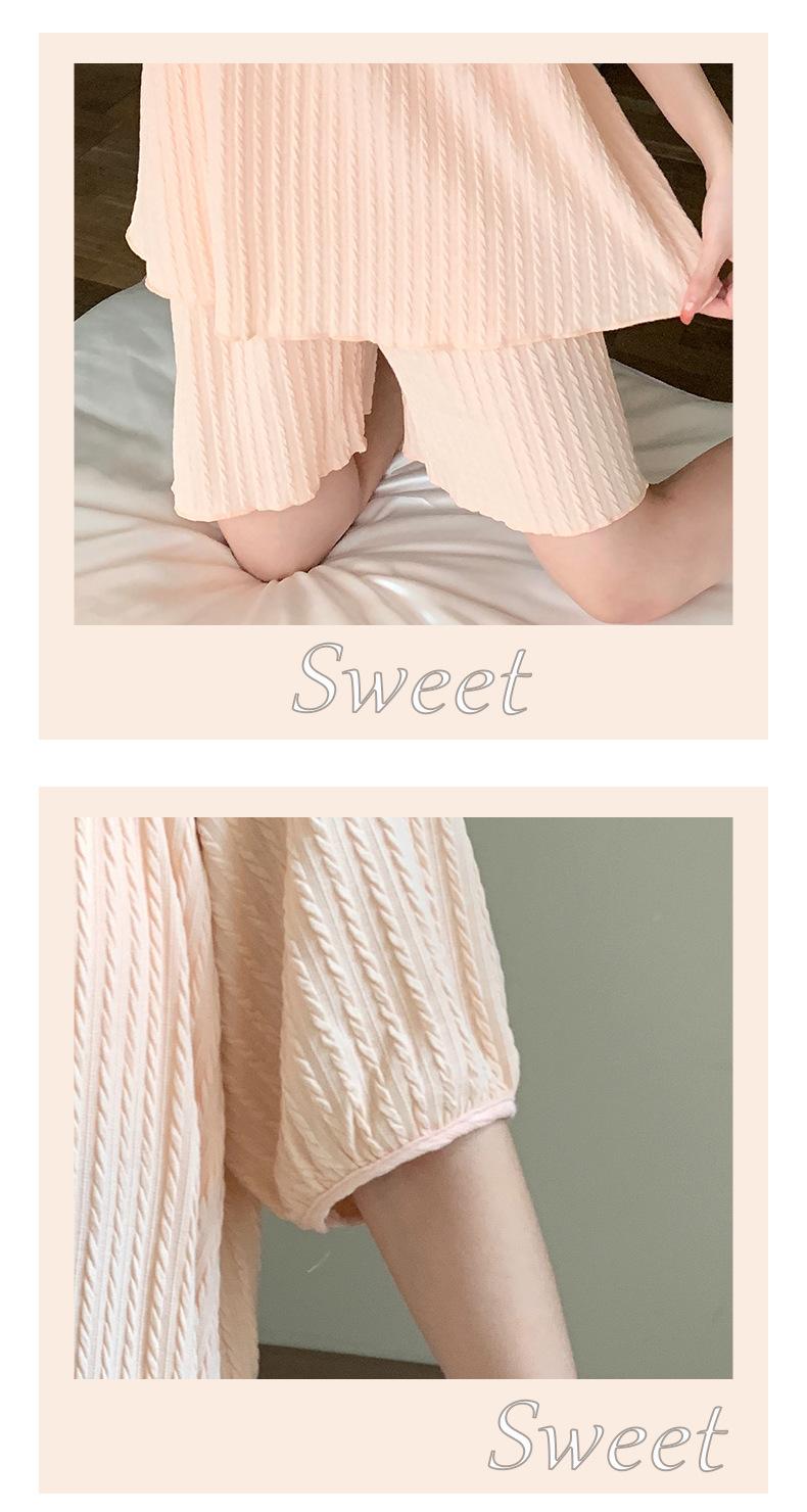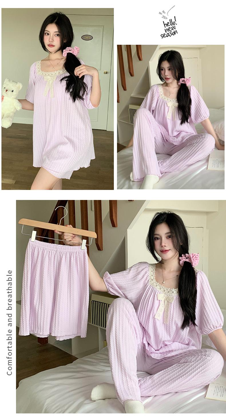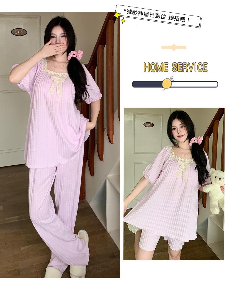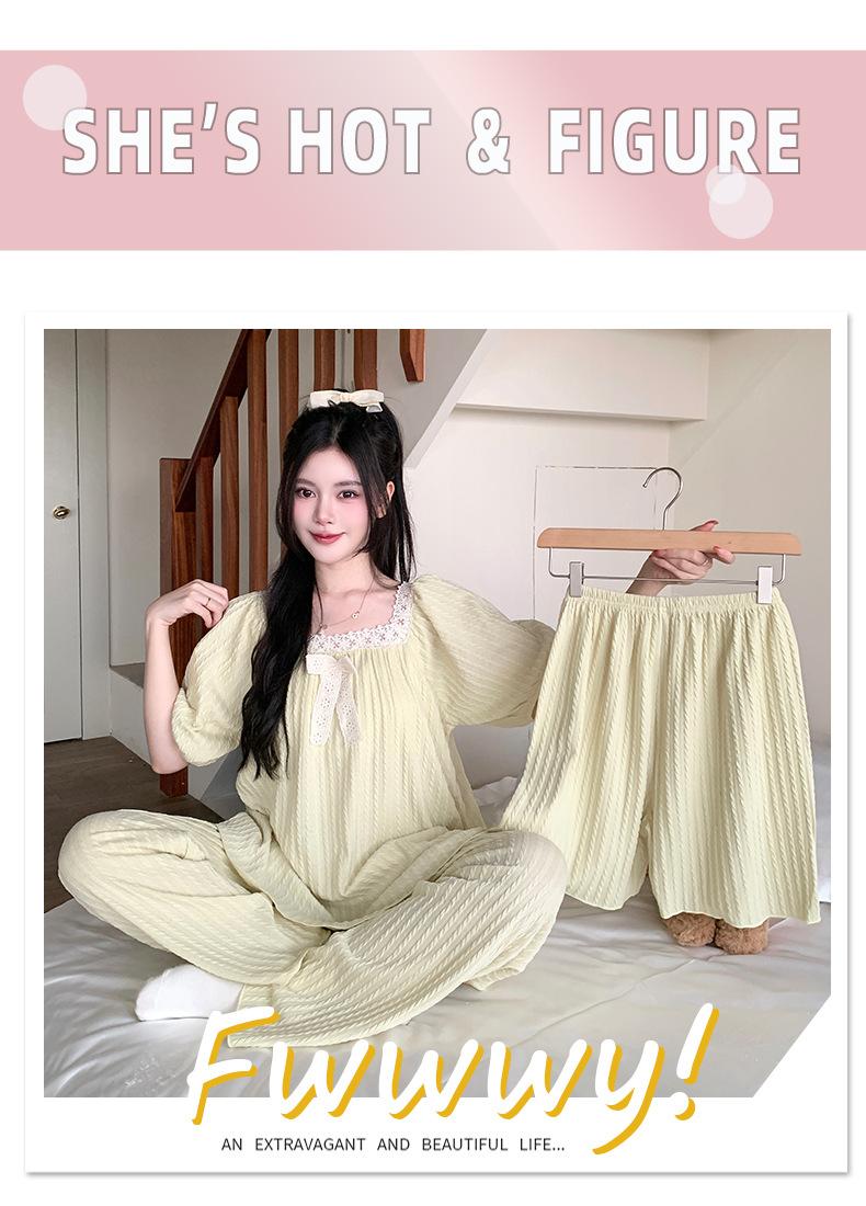 Pijama de jacquard 6535 para mujer, primavera y verano, dulce, de manga corta con almohadilla para el pecho, pantalones cortos, tres piezas, talla grande, 240 kg, ropa para el hogar
