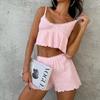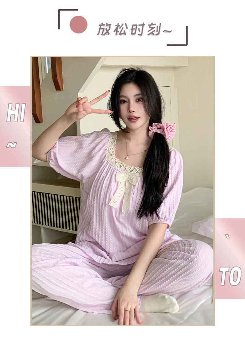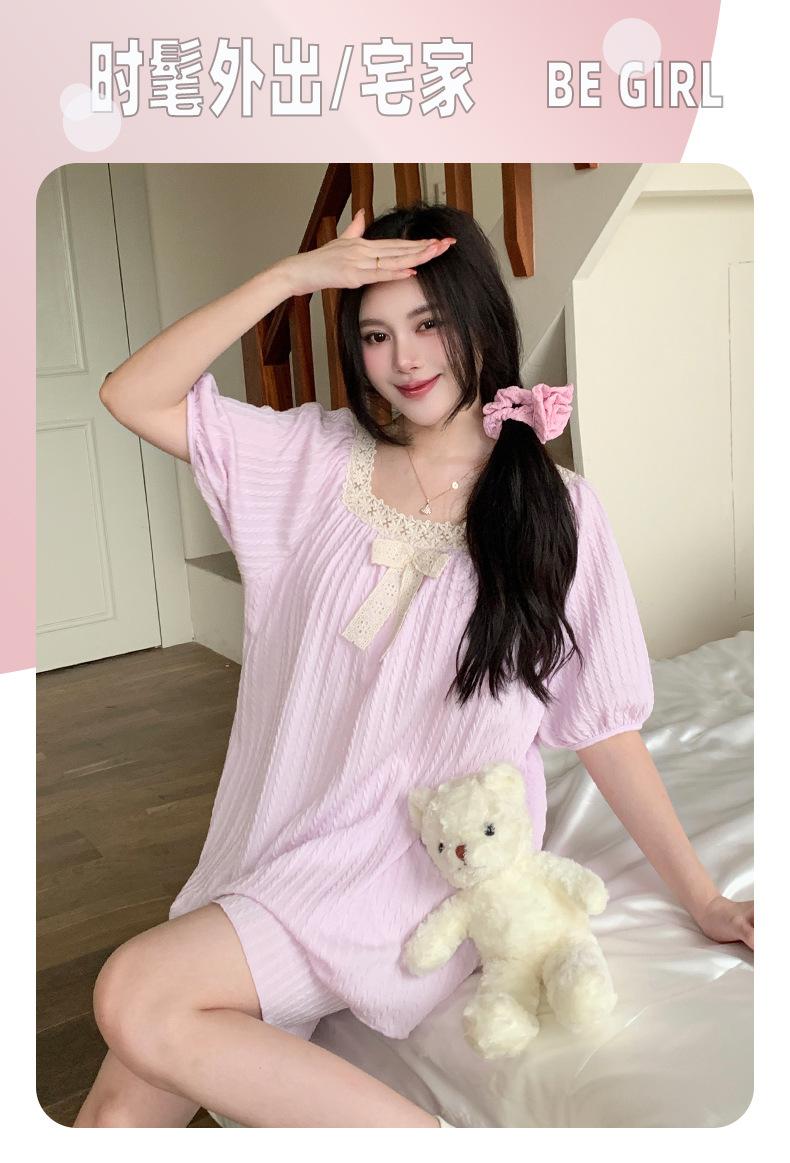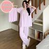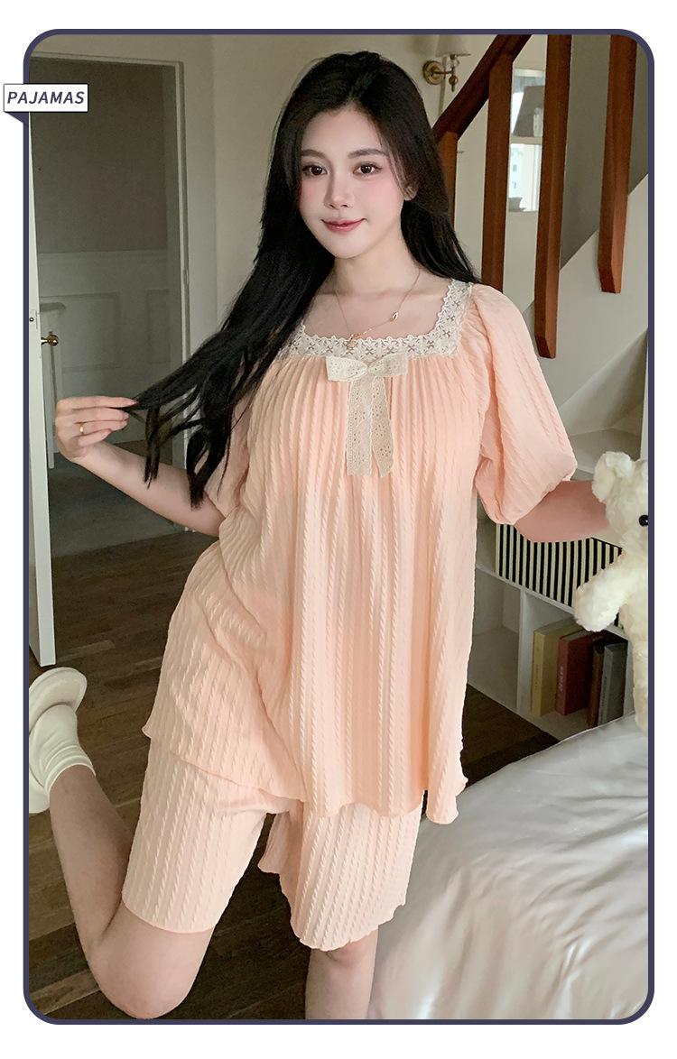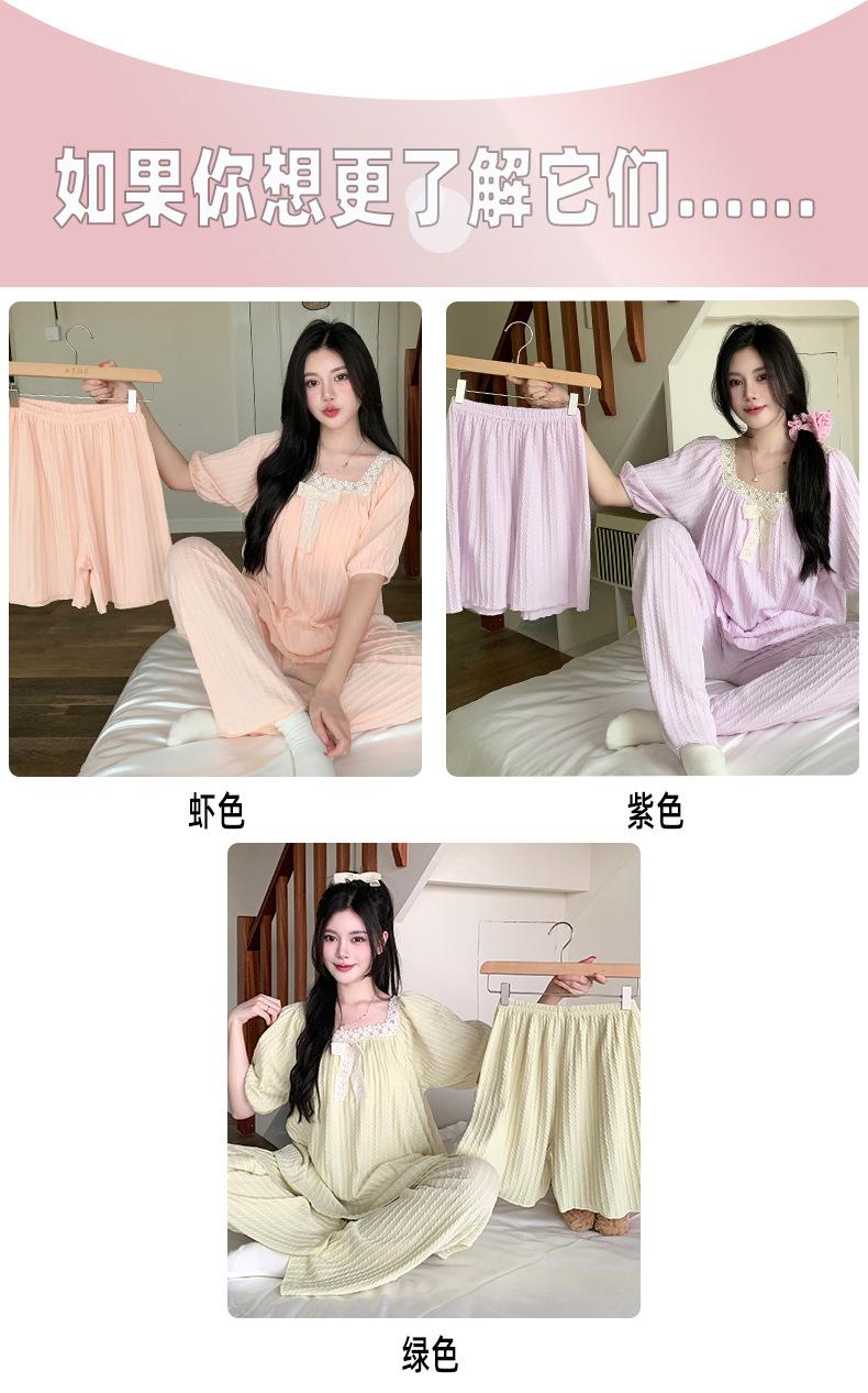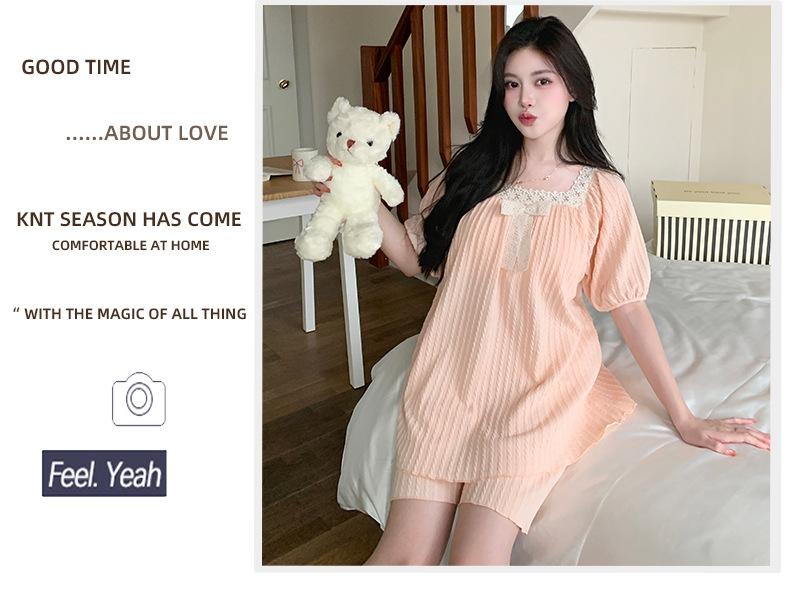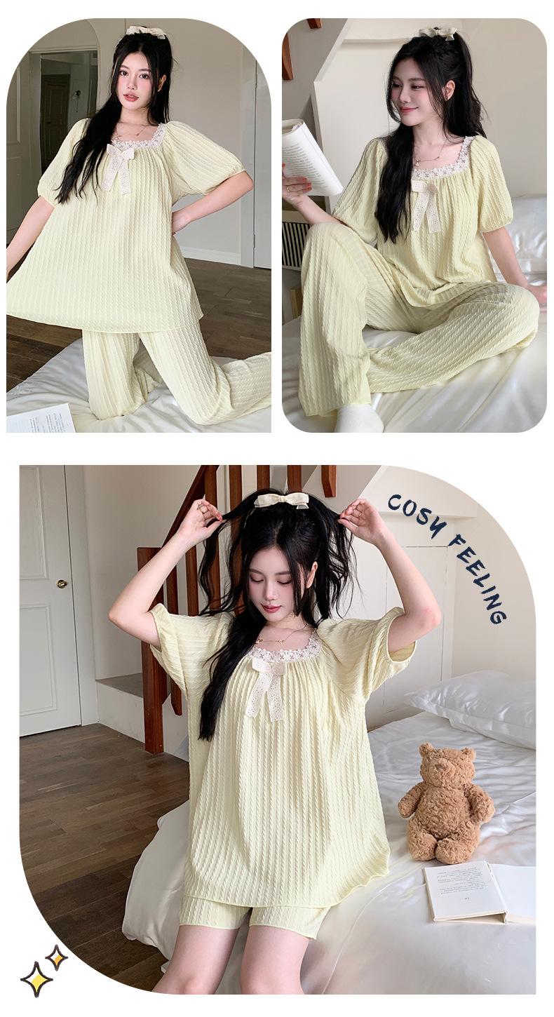 Pijama de jacquard 6535 para mujer, primavera y verano, dulce, de manga corta con almohadilla para el pecho, pantalones cortos, tres piezas, talla grande, 240 kg, ropa para el hogar
