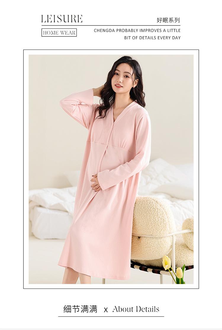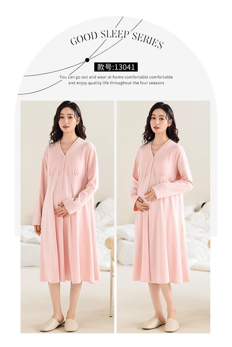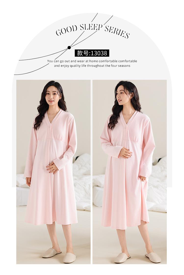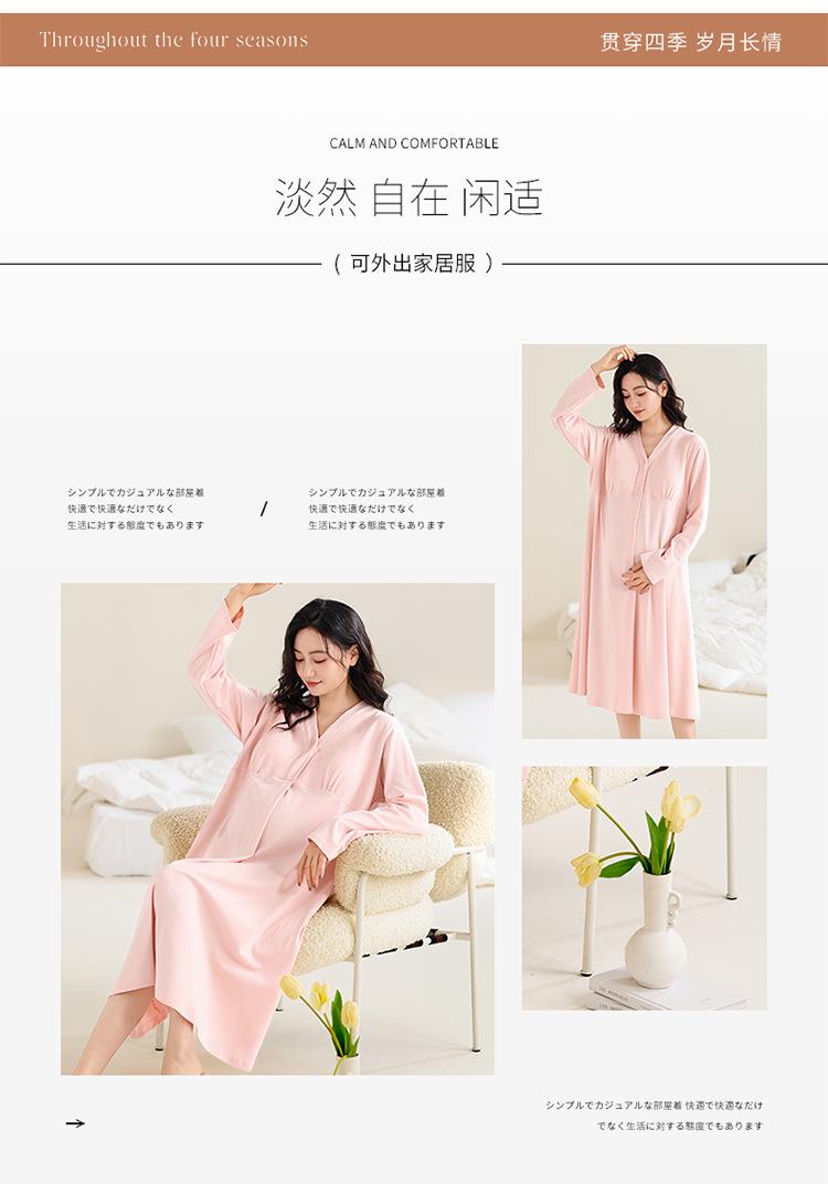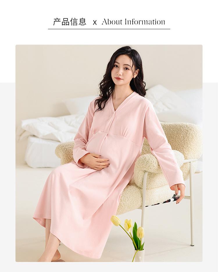 Camisón de lactancia de manga larga para embarazadas, primavera y otoño, para parto, maternidad, posparto, lactancia, almohadilla para el pecho y examen materno.