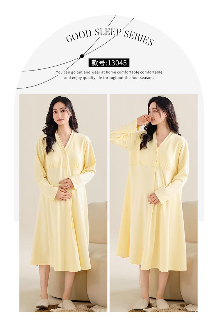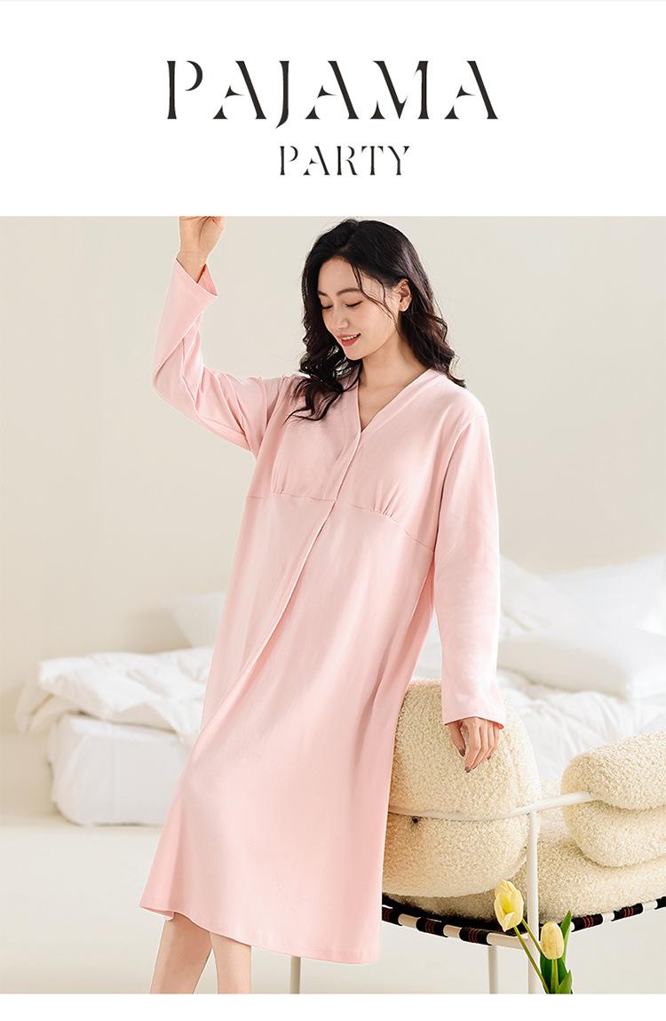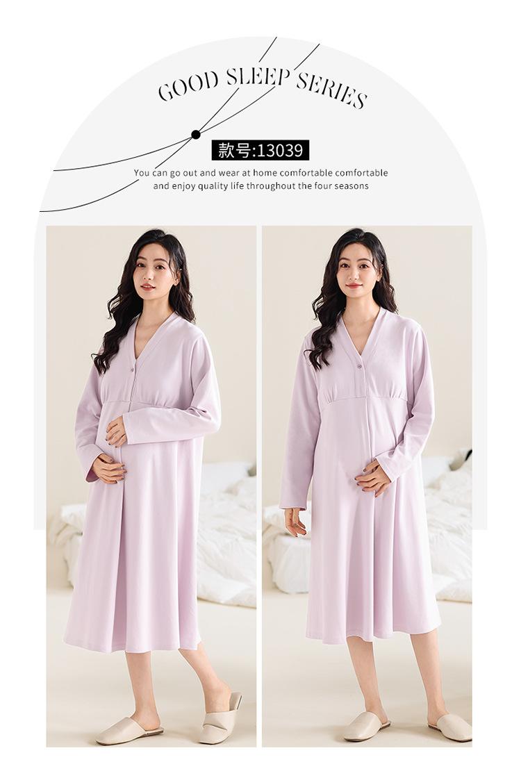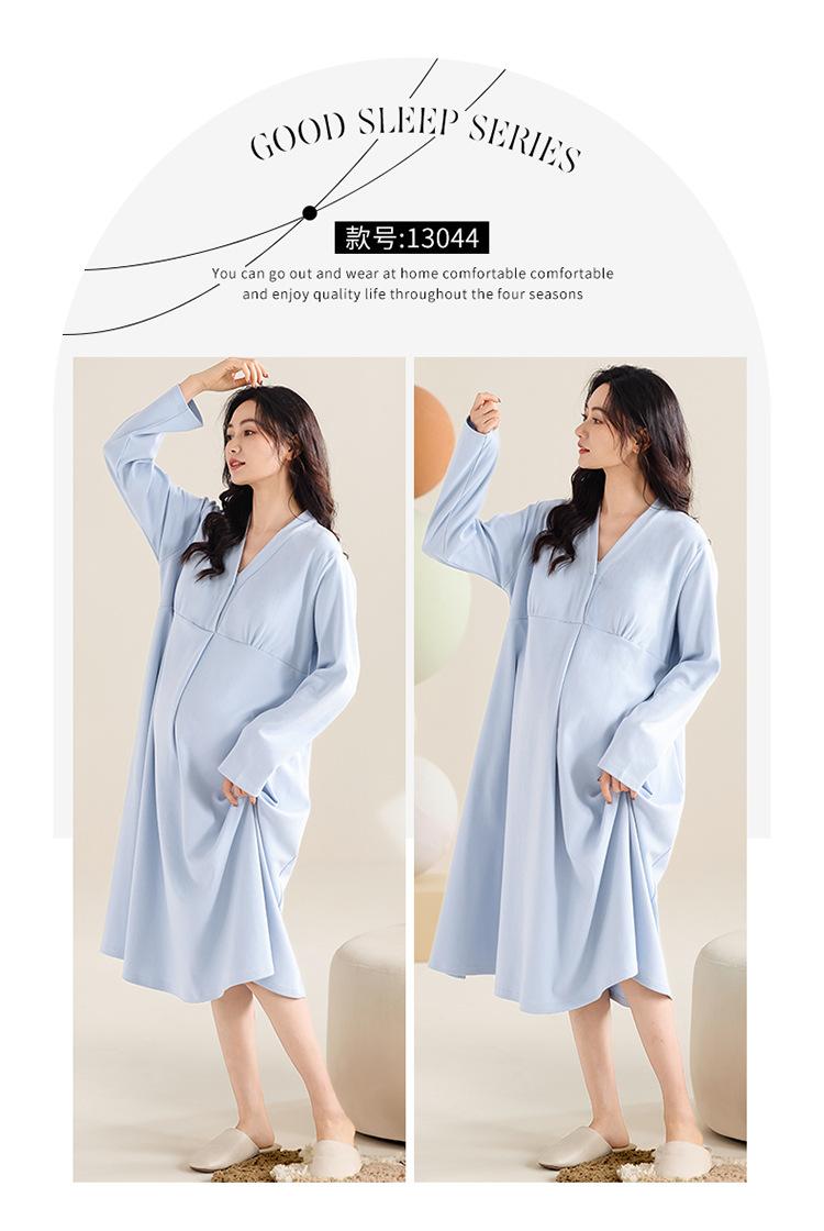 Camisón de lactancia de manga larga para embarazadas, primavera y otoño, para parto, maternidad, posparto, lactancia, almohadilla para el pecho y examen materno.