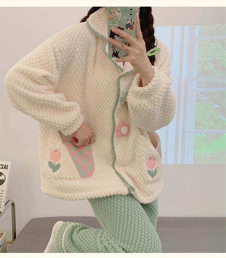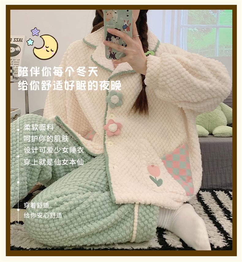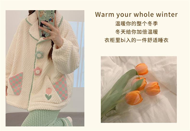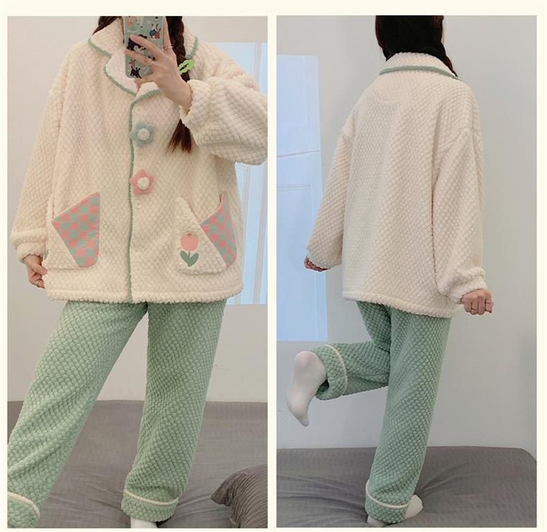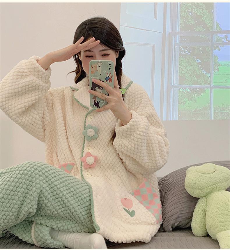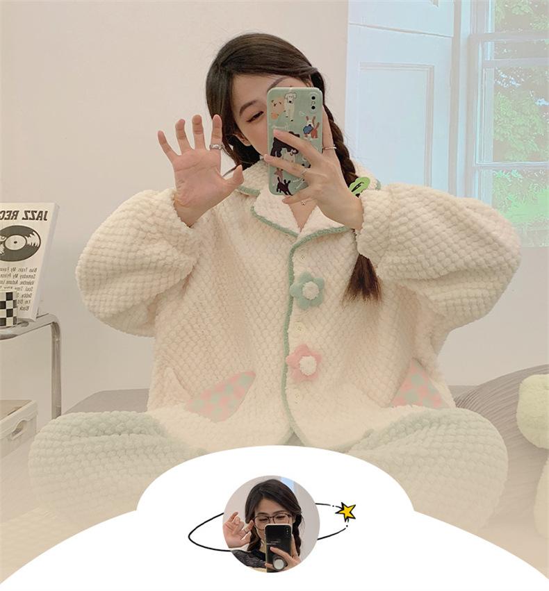 Compra Pijamas de invierno de lana coral para mujer, bonitos y bonitos, con forro polar grueso y cálido, ropa informal para el hogar. al por mayor en Joom.pro