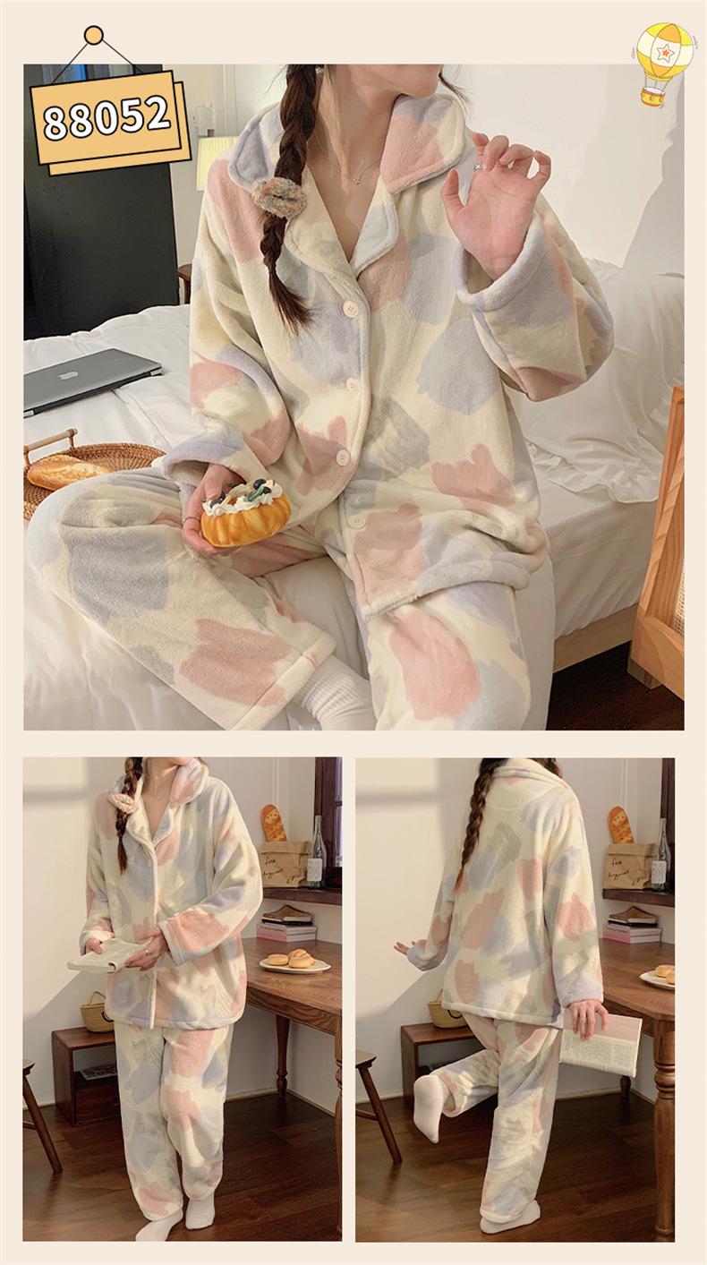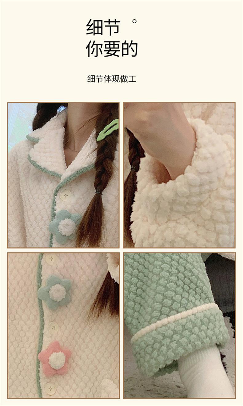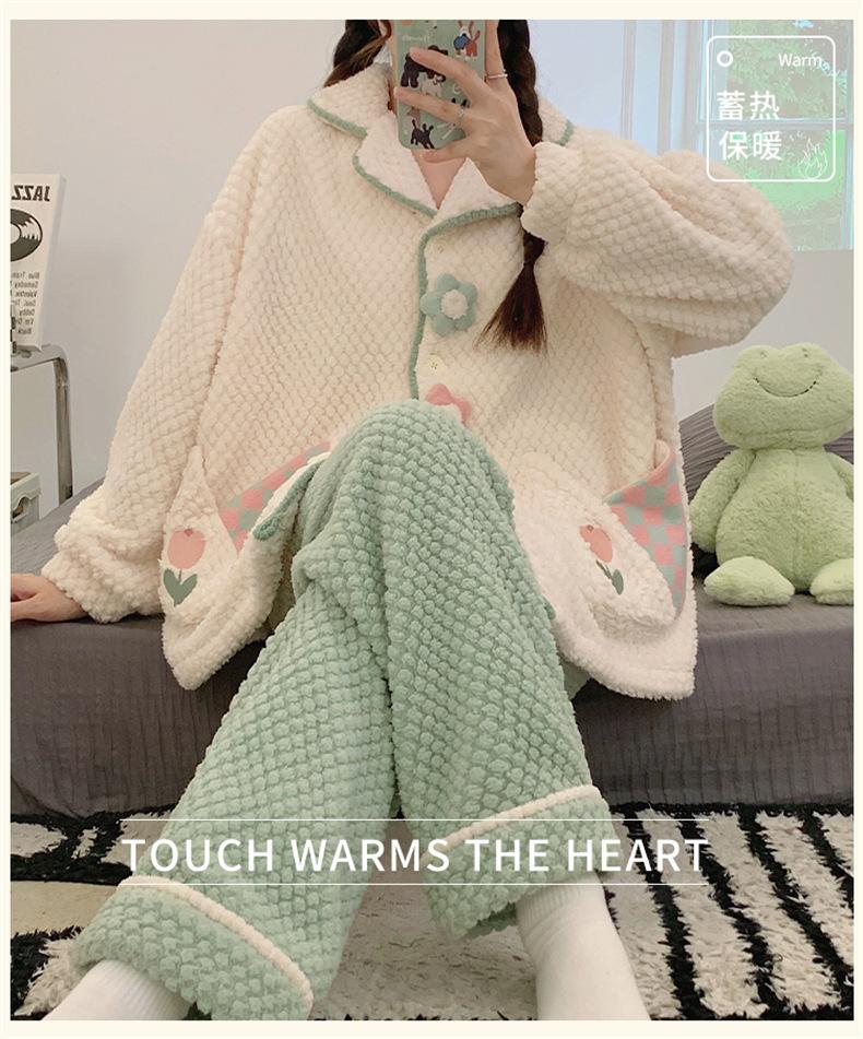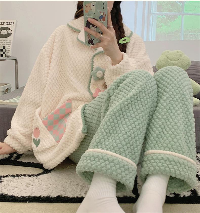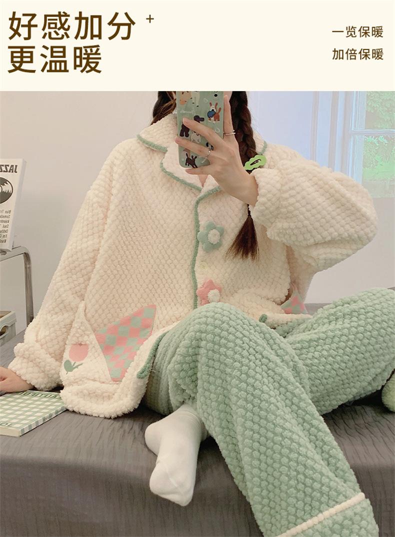Compra Pijamas de invierno de lana coral para mujer, bonitos y bonitos, con forro polar grueso y cálido, ropa informal para el hogar. al por mayor en Joom.pro