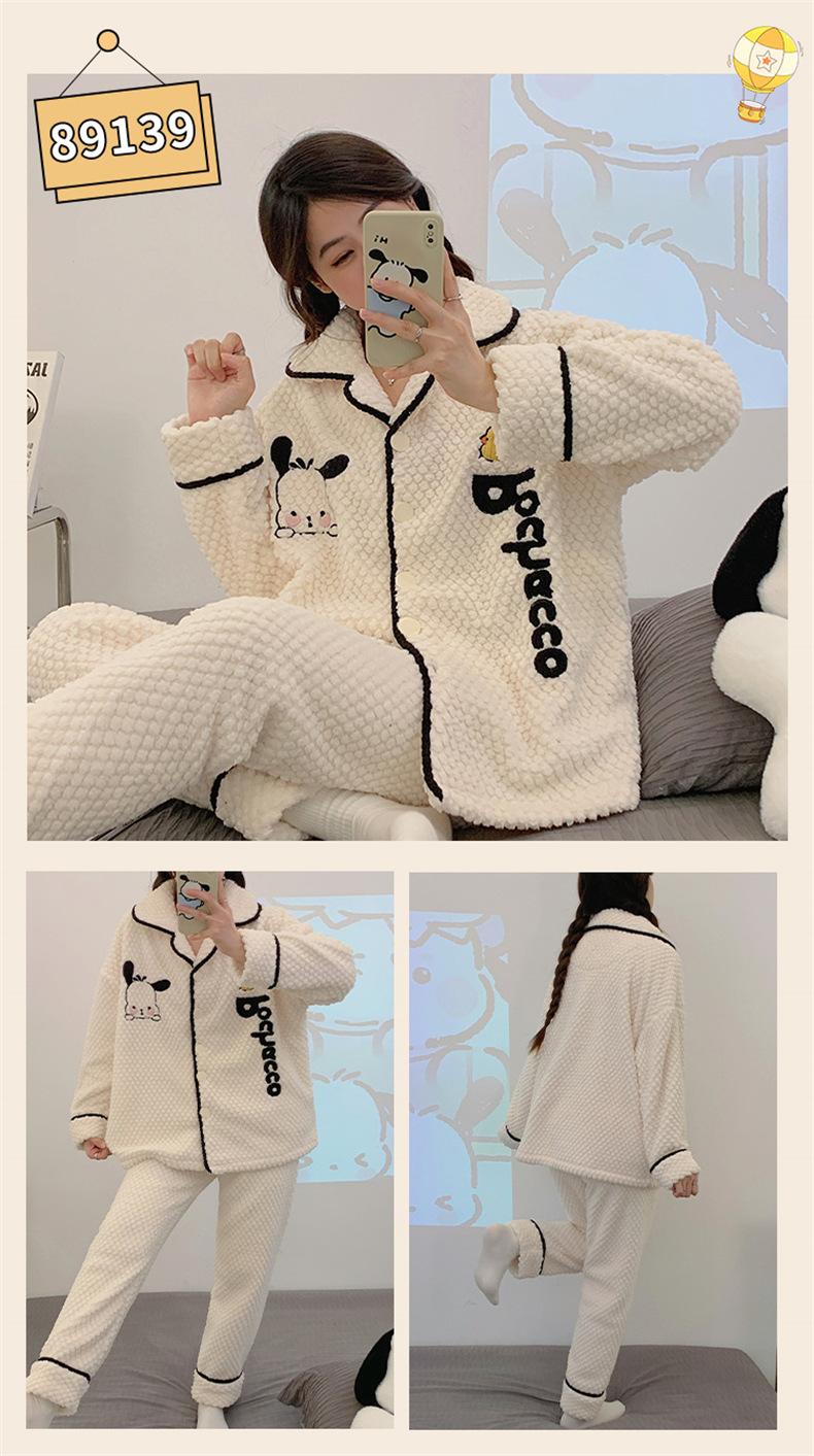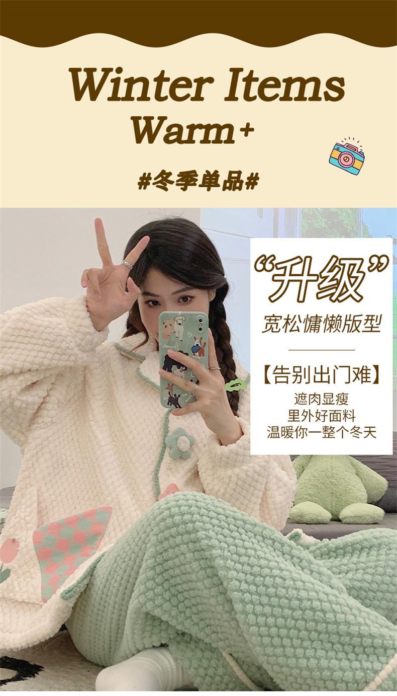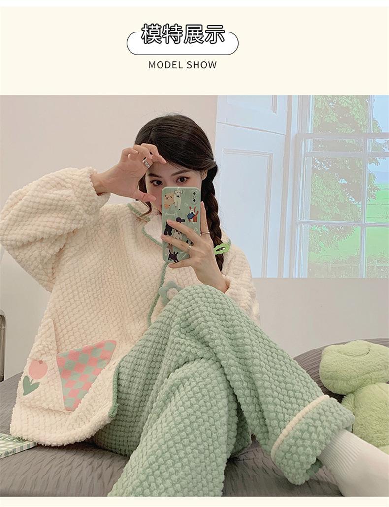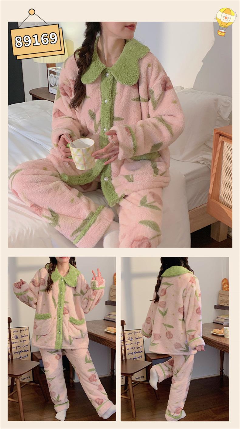 Compra Pijamas de invierno de lana coral para mujer, bonitos y bonitos, con forro polar grueso y cálido, ropa informal para el hogar. al por mayor en Joom.pro