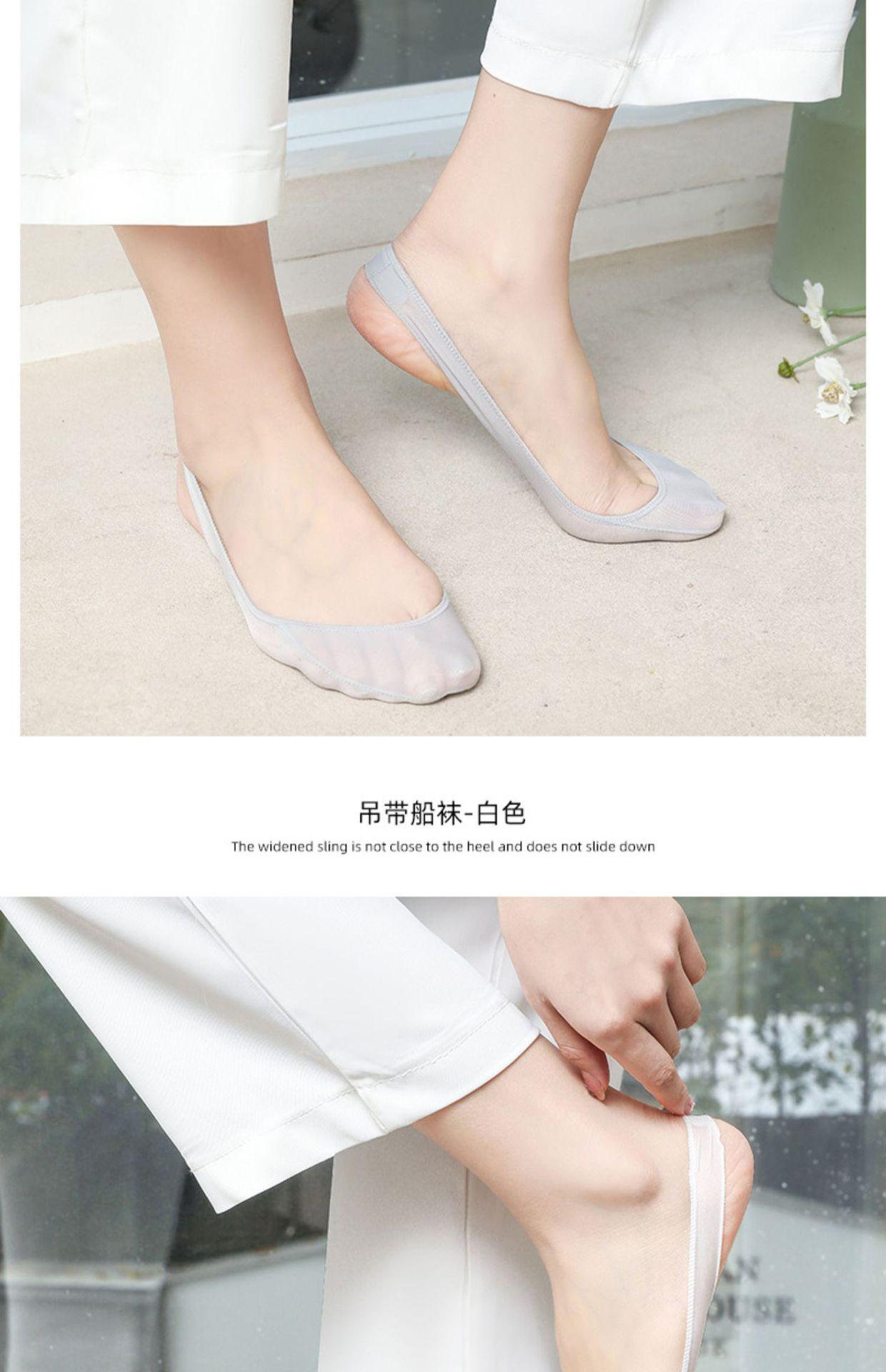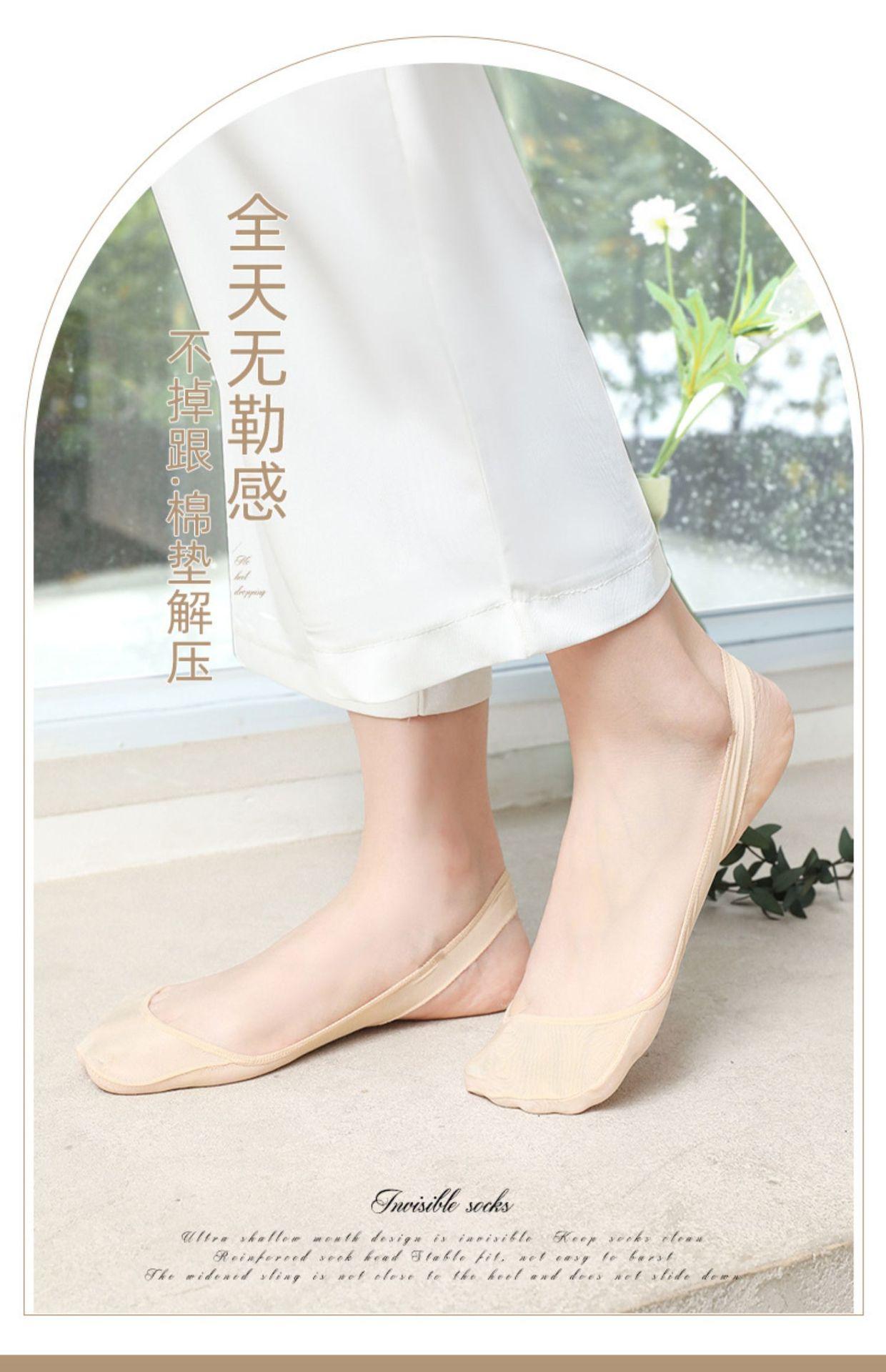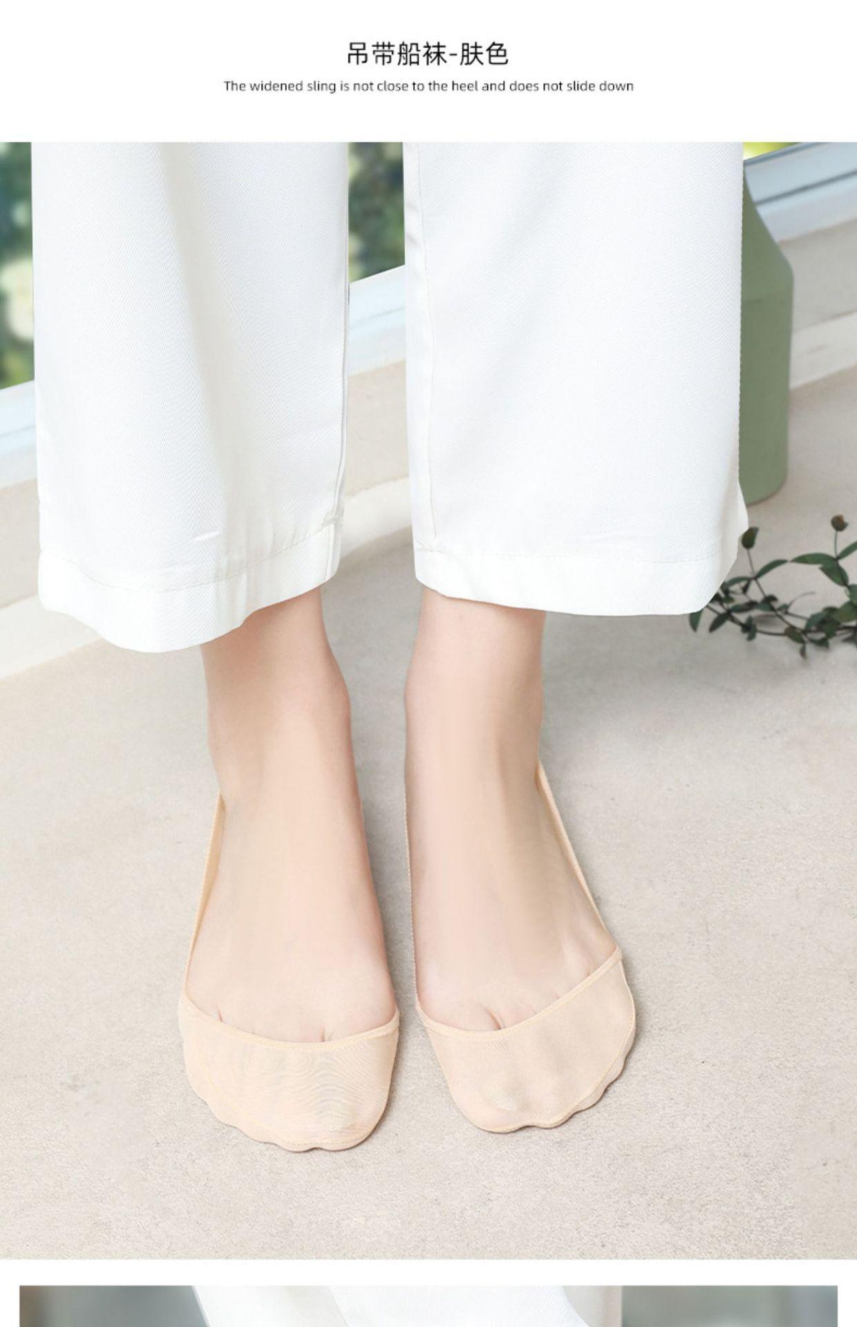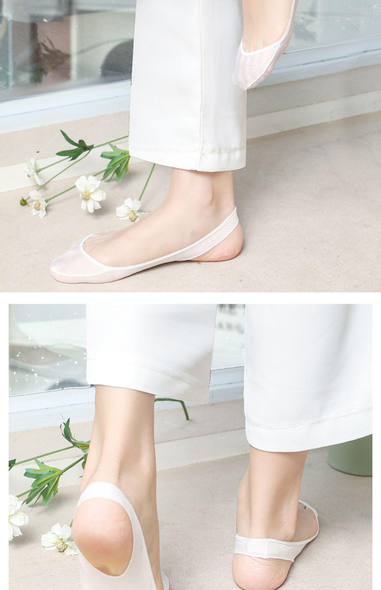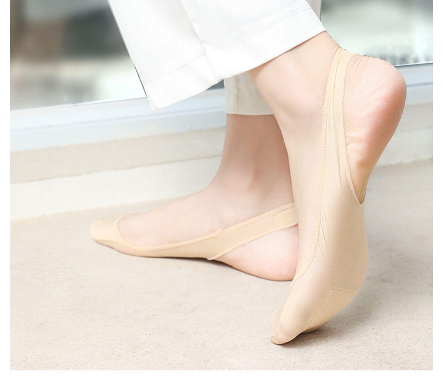 Calcetines invisibles de seda helada para mujer, con boca poco profunda, con almohadilla absorbente de sudor y finos calcetines cortos de verano para tacones altos.