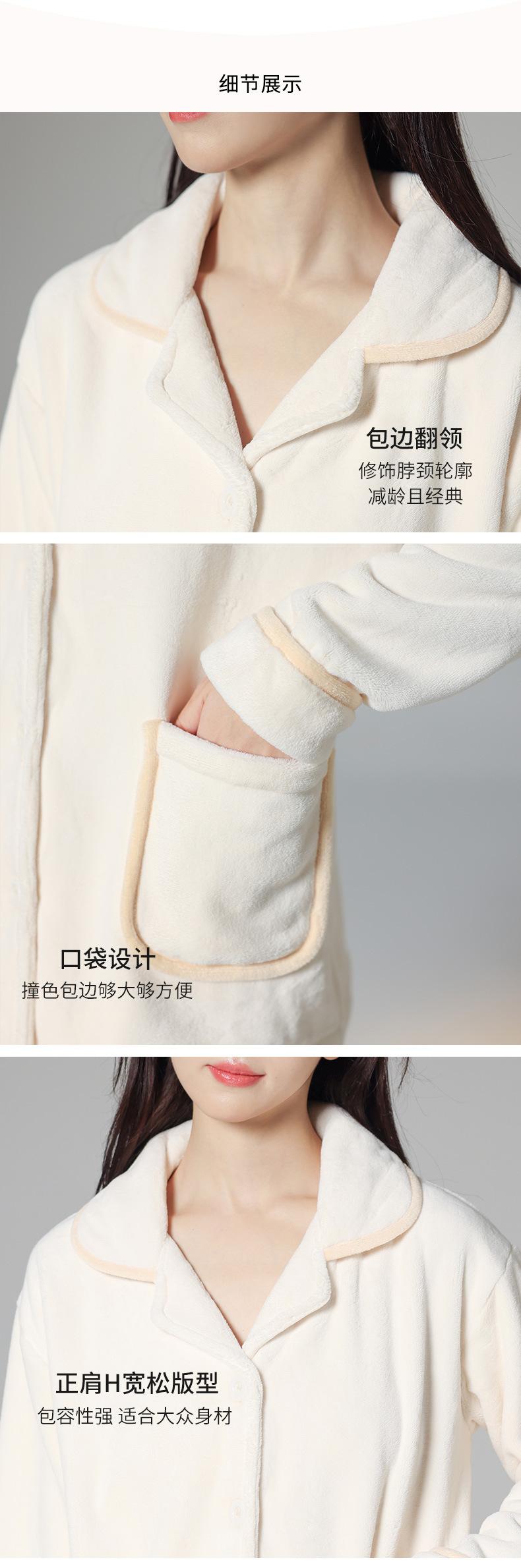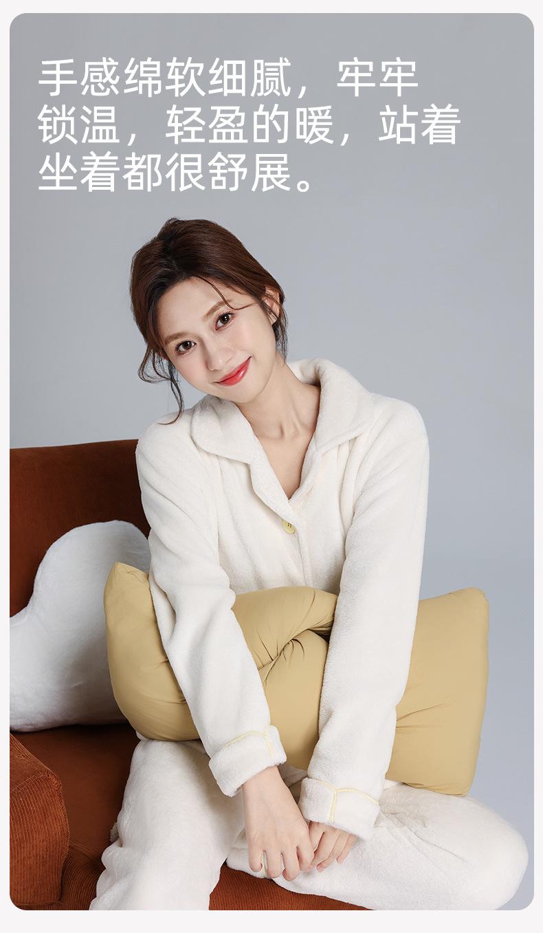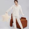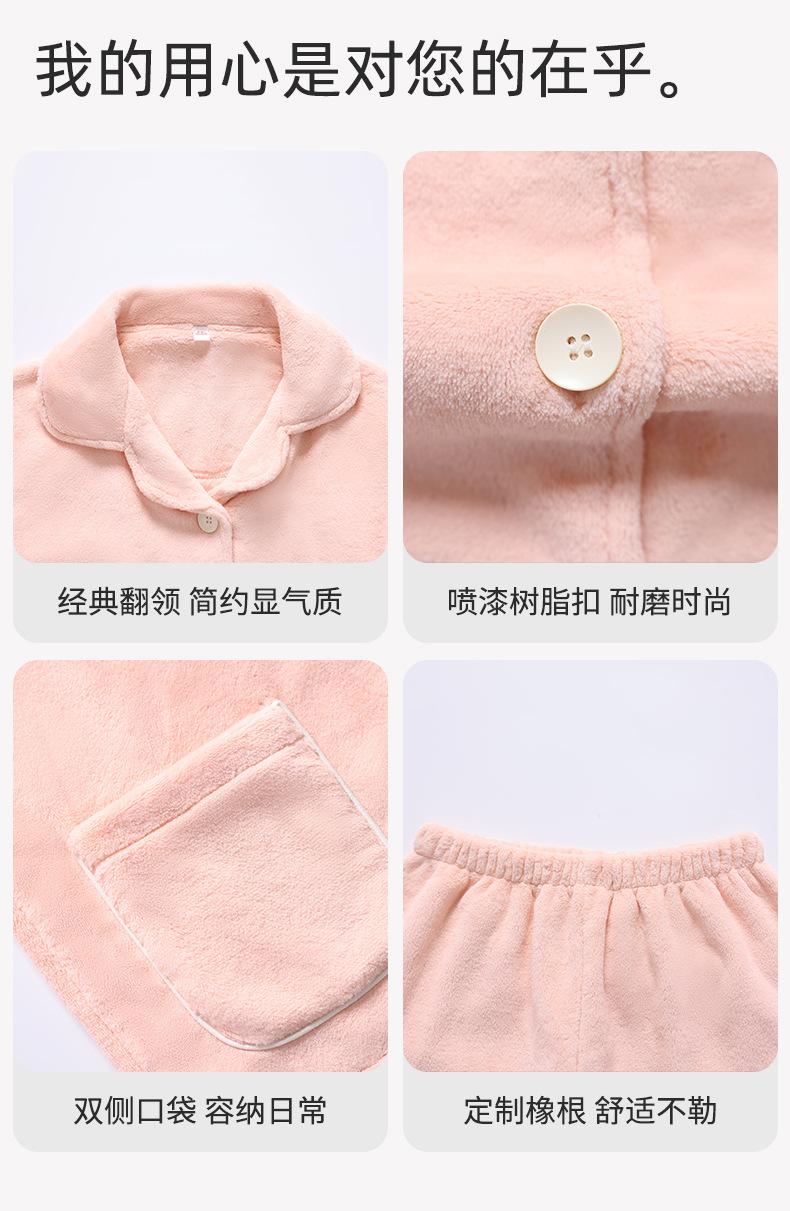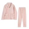 Pijama de Franela Cálido para Invierno, Ropa de Casa Gruesa de Terciopelo Coral, Traje Casual Cárdigan de Otoño para Mujer