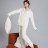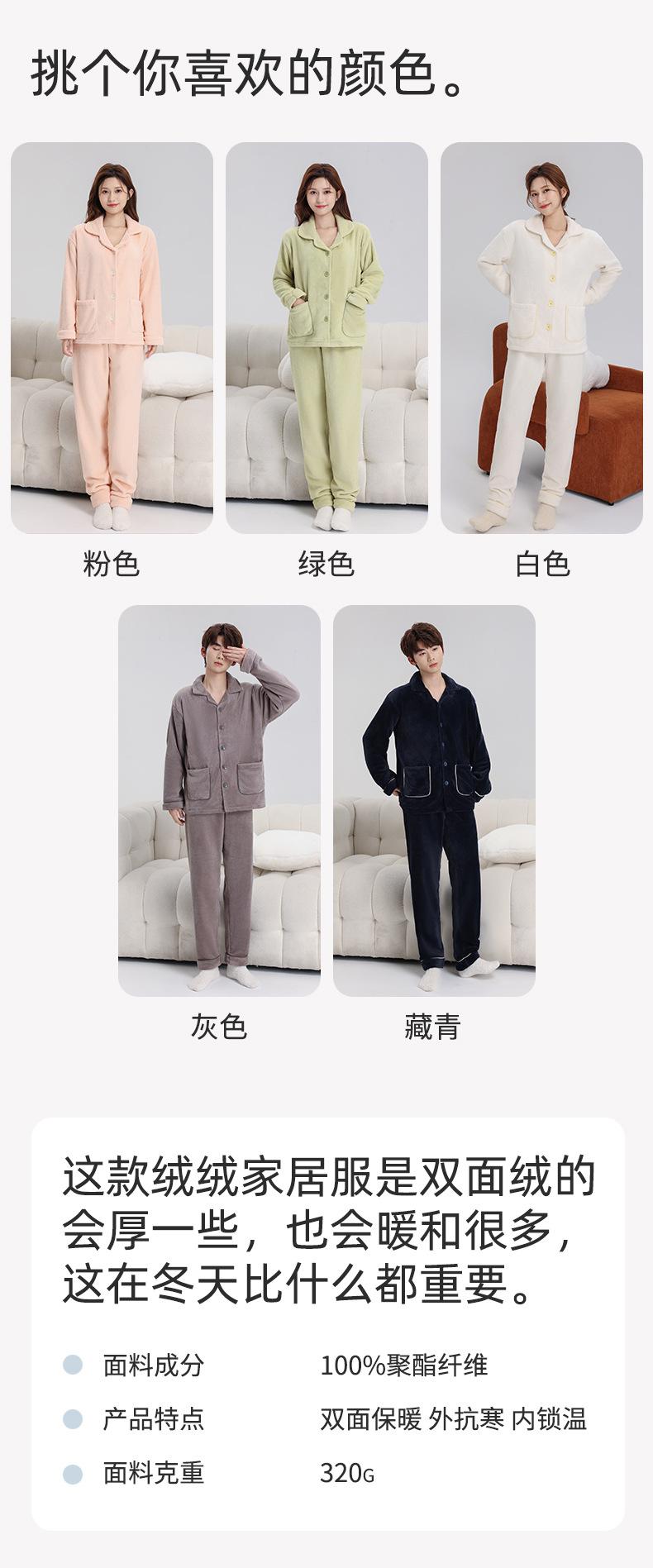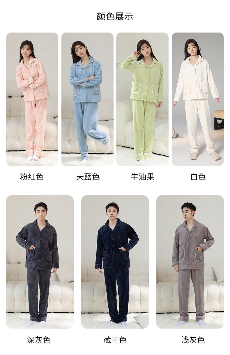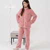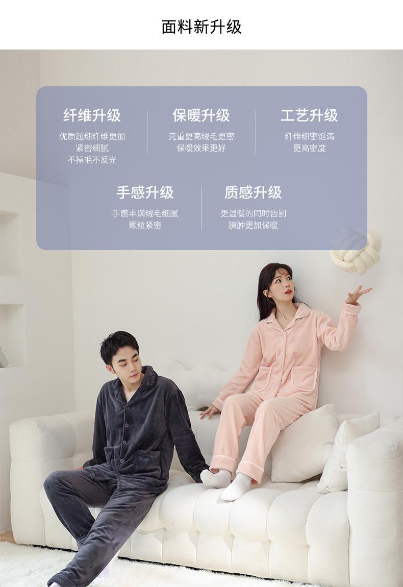 Pijama de Franela Cálido para Invierno, Ropa de Casa Gruesa de Terciopelo Coral, Traje Casual Cárdigan de Otoño para Mujer