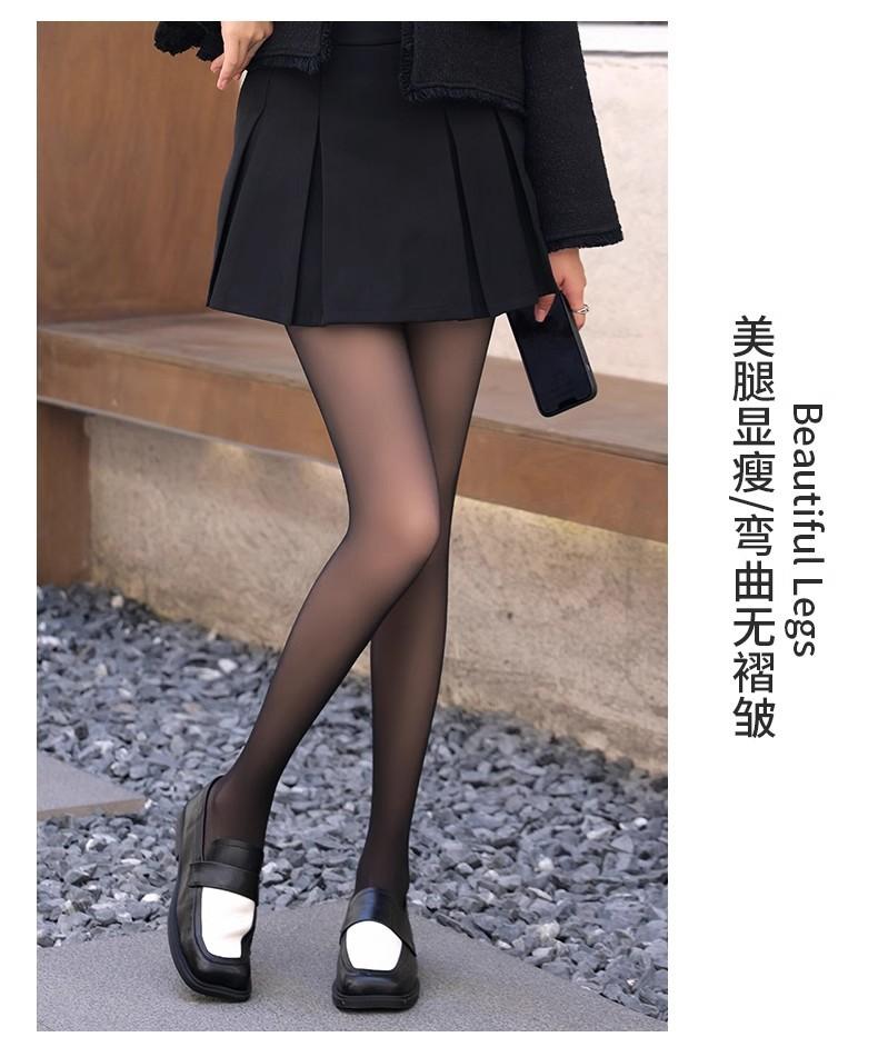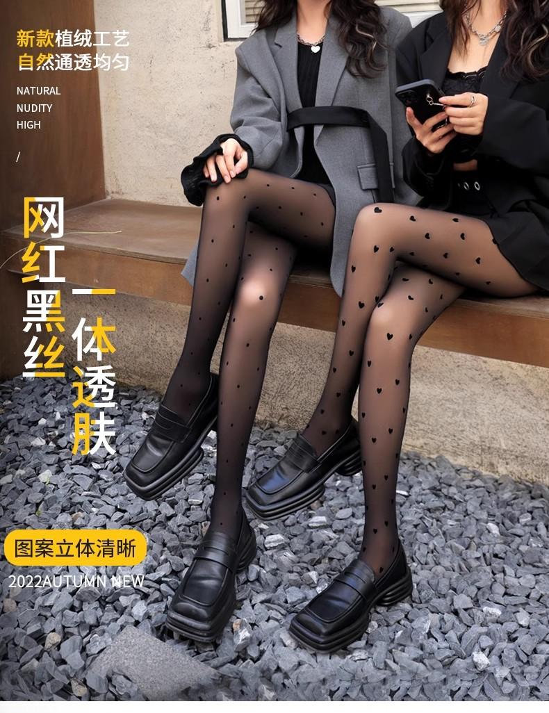 Medias de Seda de Lunares Onda de Amor para Mujer con Forro Polar Espesado Otoño e Invierno Artefacto Piernas Ligeras Base Color Carne Falso Flocado Letra Pantimedias