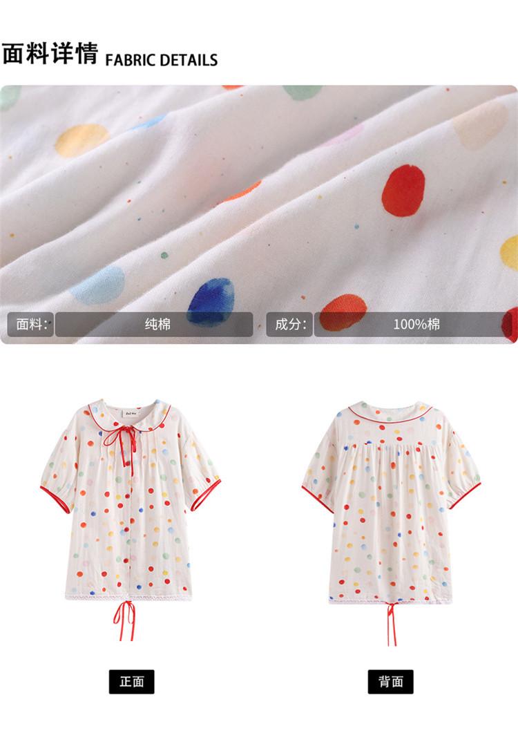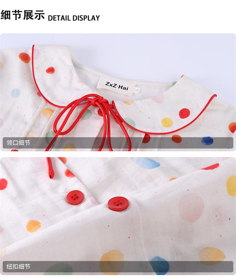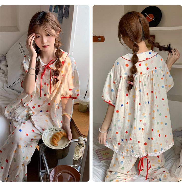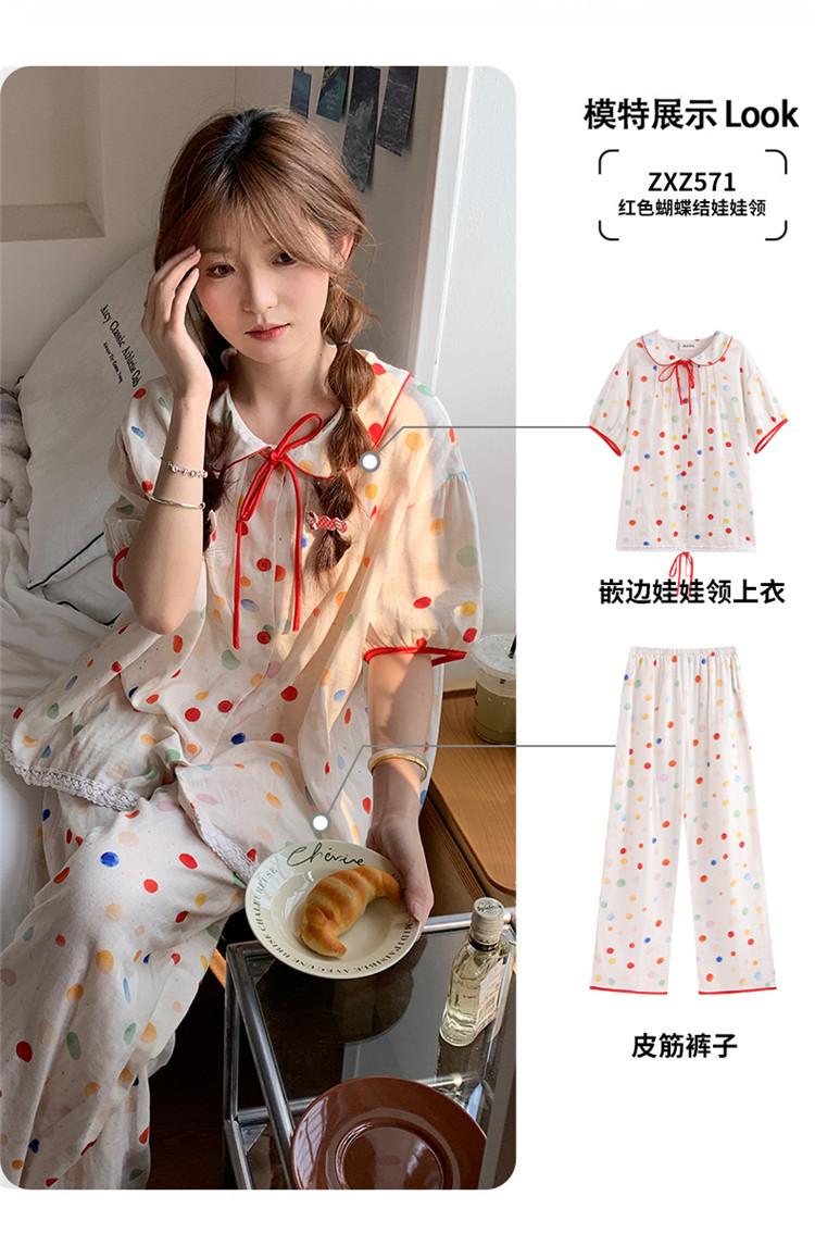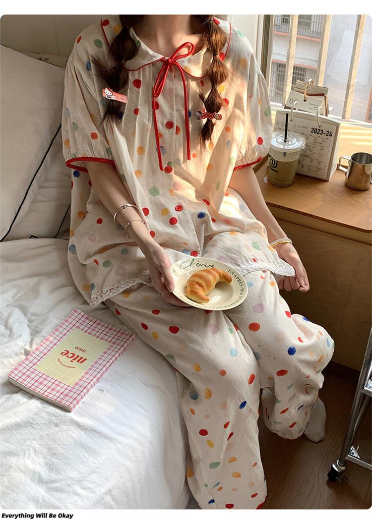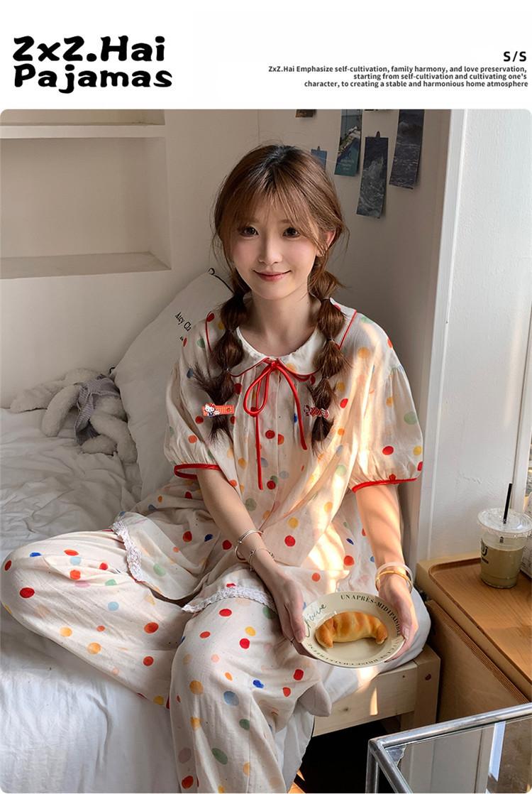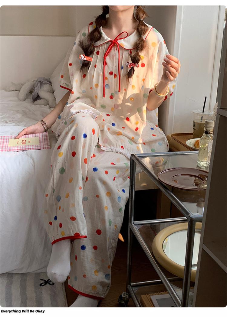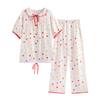 Primavera y Verano Nuevo Pijama de Algodón con Lindo Cuello de Muñeca con Lazo Rojo de Dibujos Animados para Exterior Ropa para el Hogar