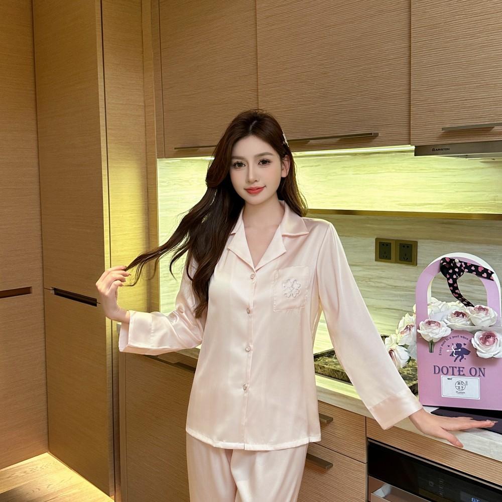 Cárdigan sencillo y cómodo para mujer, ropa de casa, pijama holgado de manga larga de seda helada, nueva moda de primavera y otoño