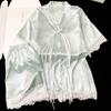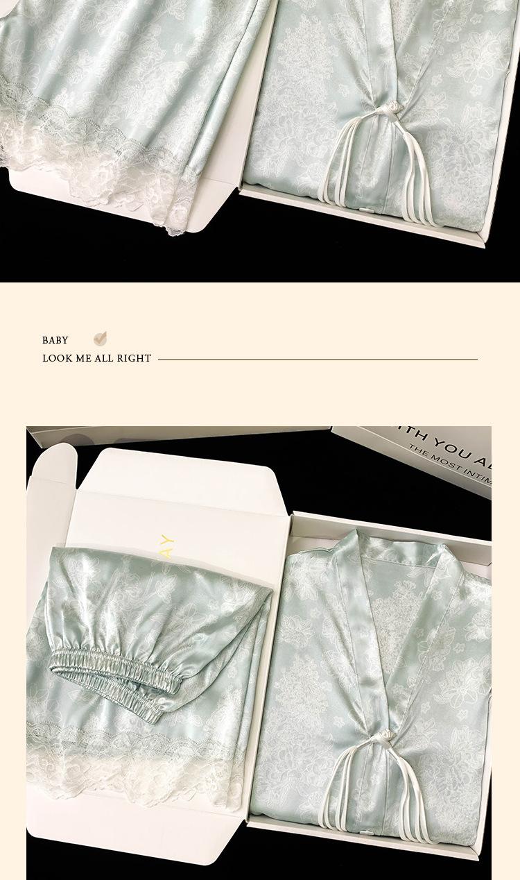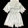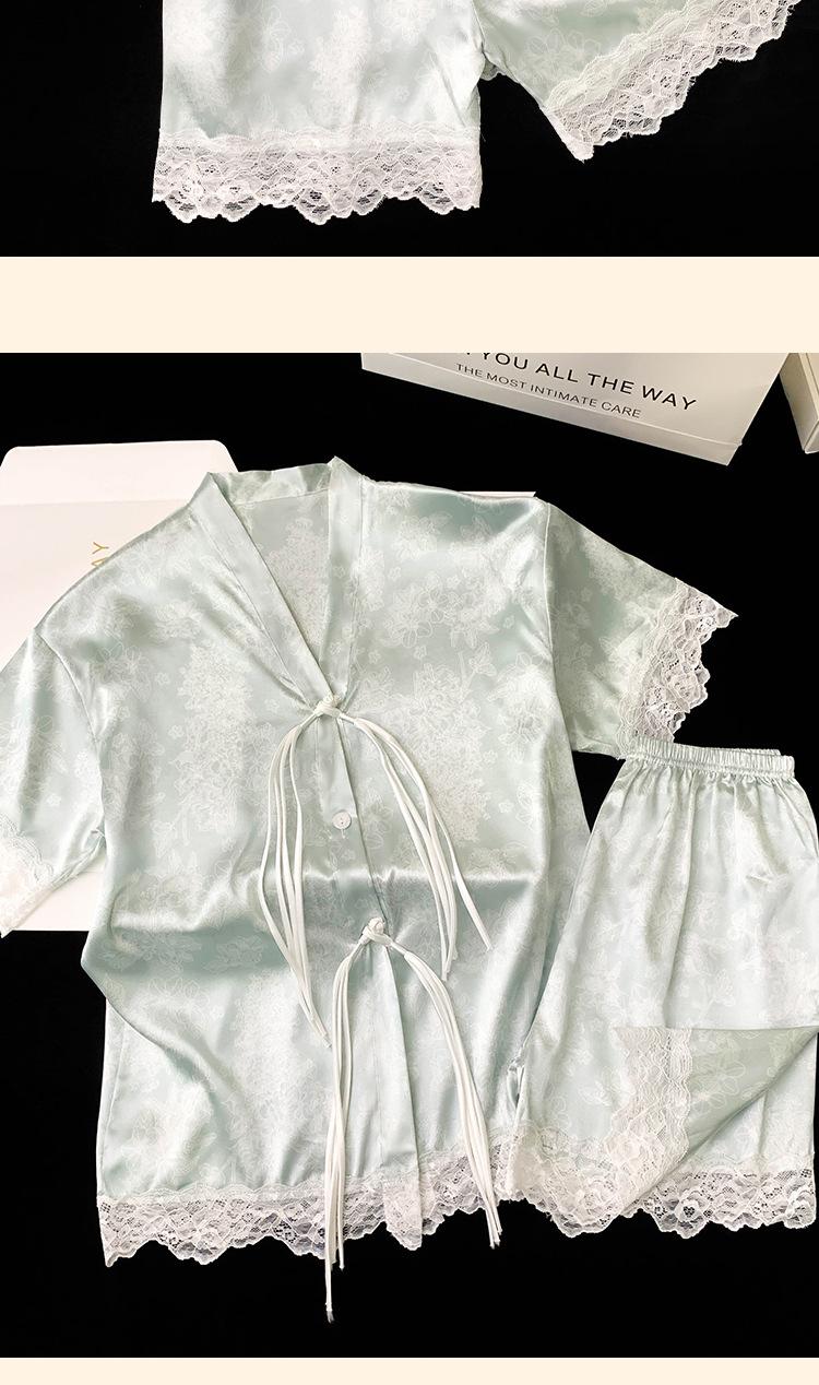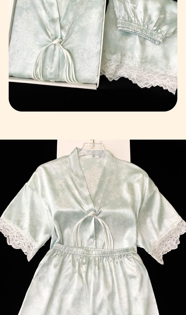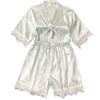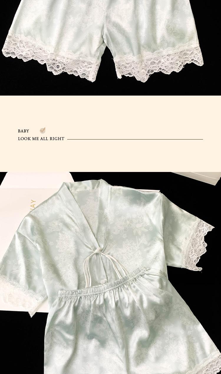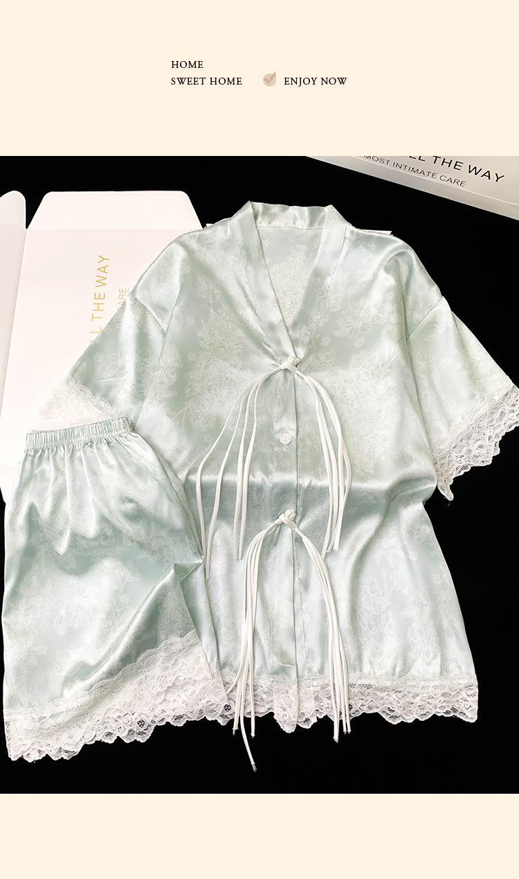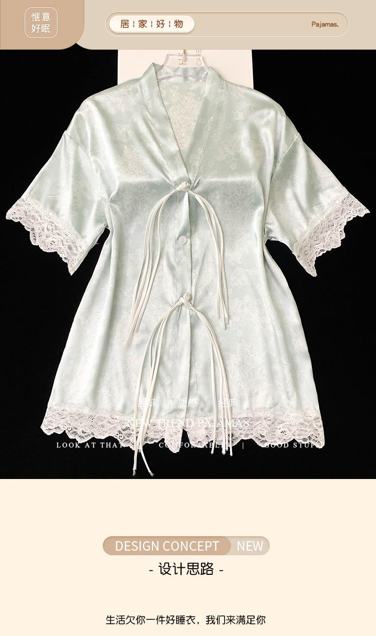 Pijama de seda helada estilo chino, estilo nacional, con cuello en V y hebilla, pantalones cortos de manga corta para mujer, ropa exterior para el hogar, toma real para el cabello.