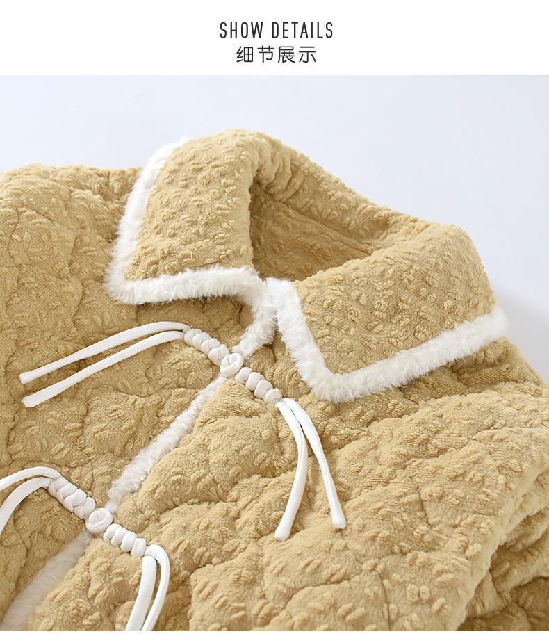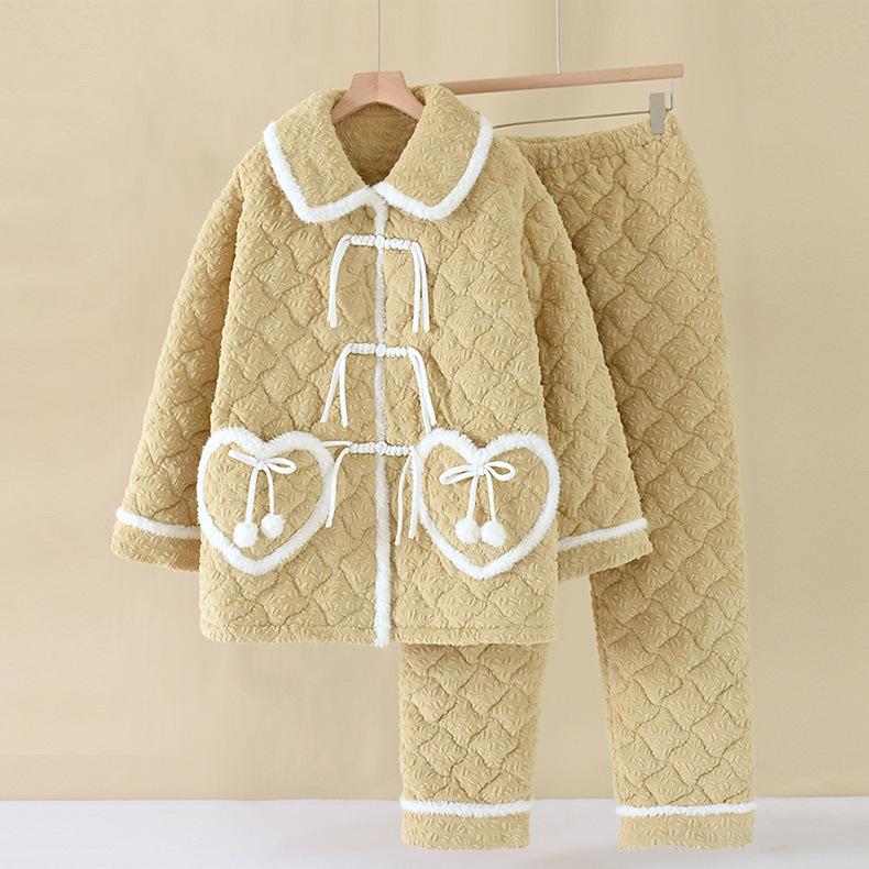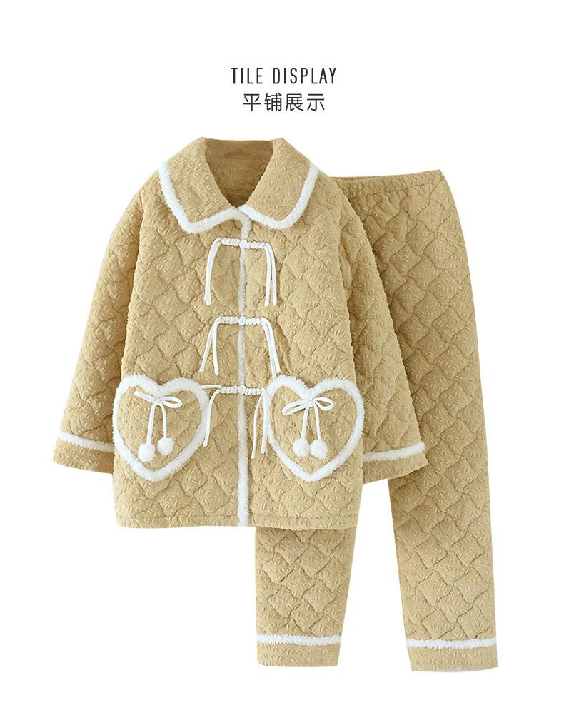Pijama acolchado de algodón de tres capas, traje de franela, otoño e invierno, lindo de dibujos animados, forro polar de coral, ropa para el hogar, una generación de cabello