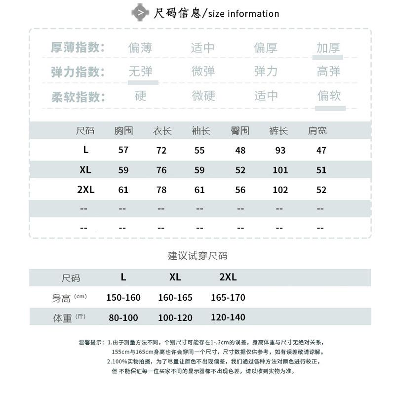 L height 150-160 weight 40-50kg, Xl height 160-165 weight 50-60kg, Xxl height 165-170 weight 60-70kg