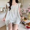 XQ-40305 bubble wrinkle sling suit-small blue flower