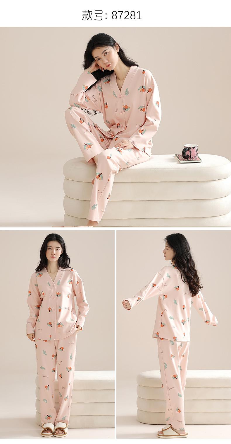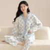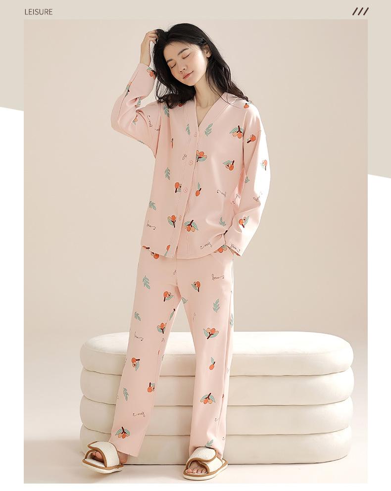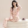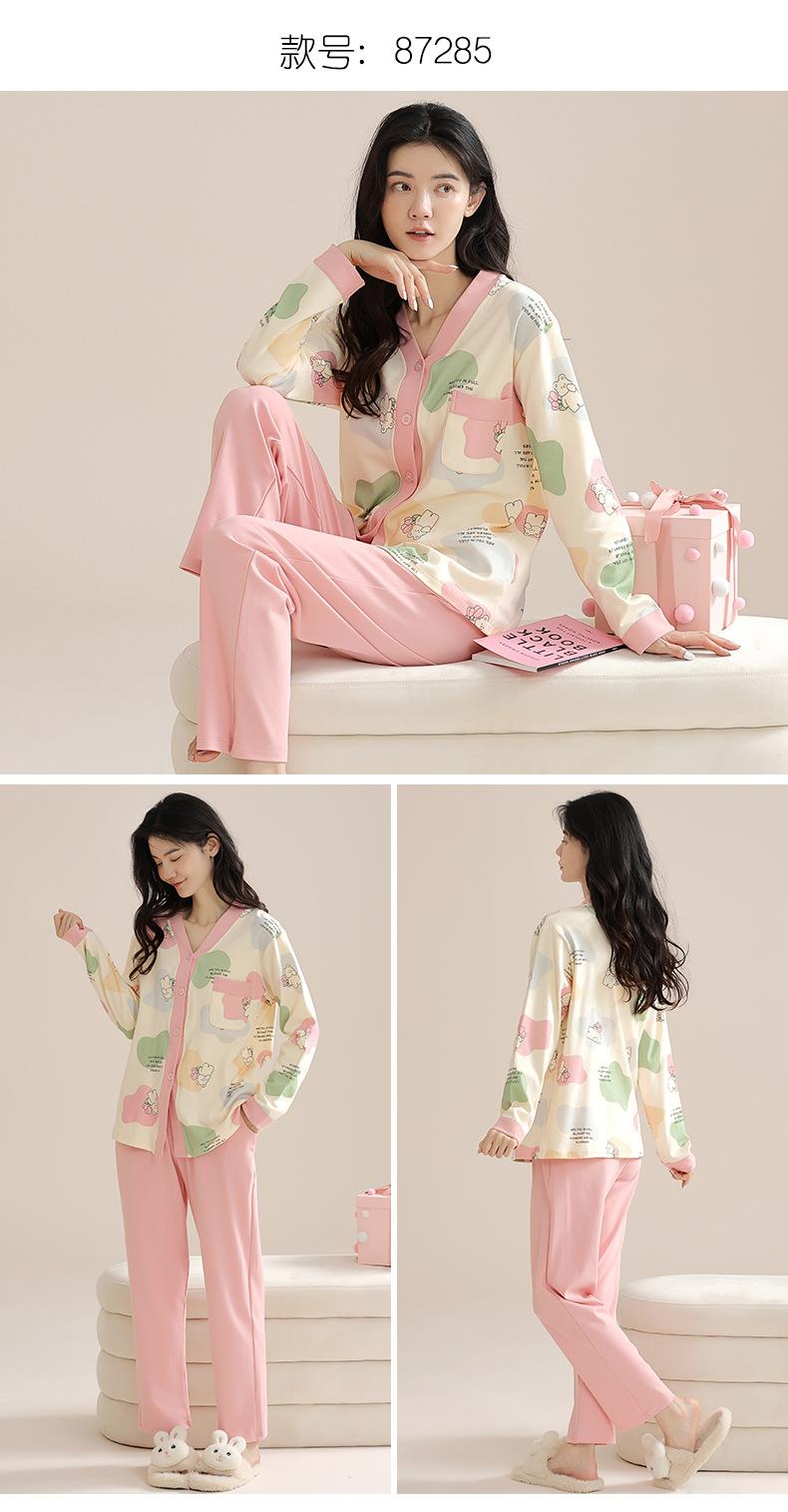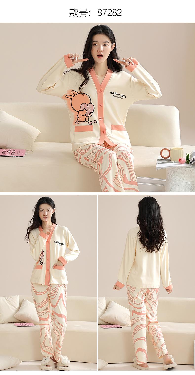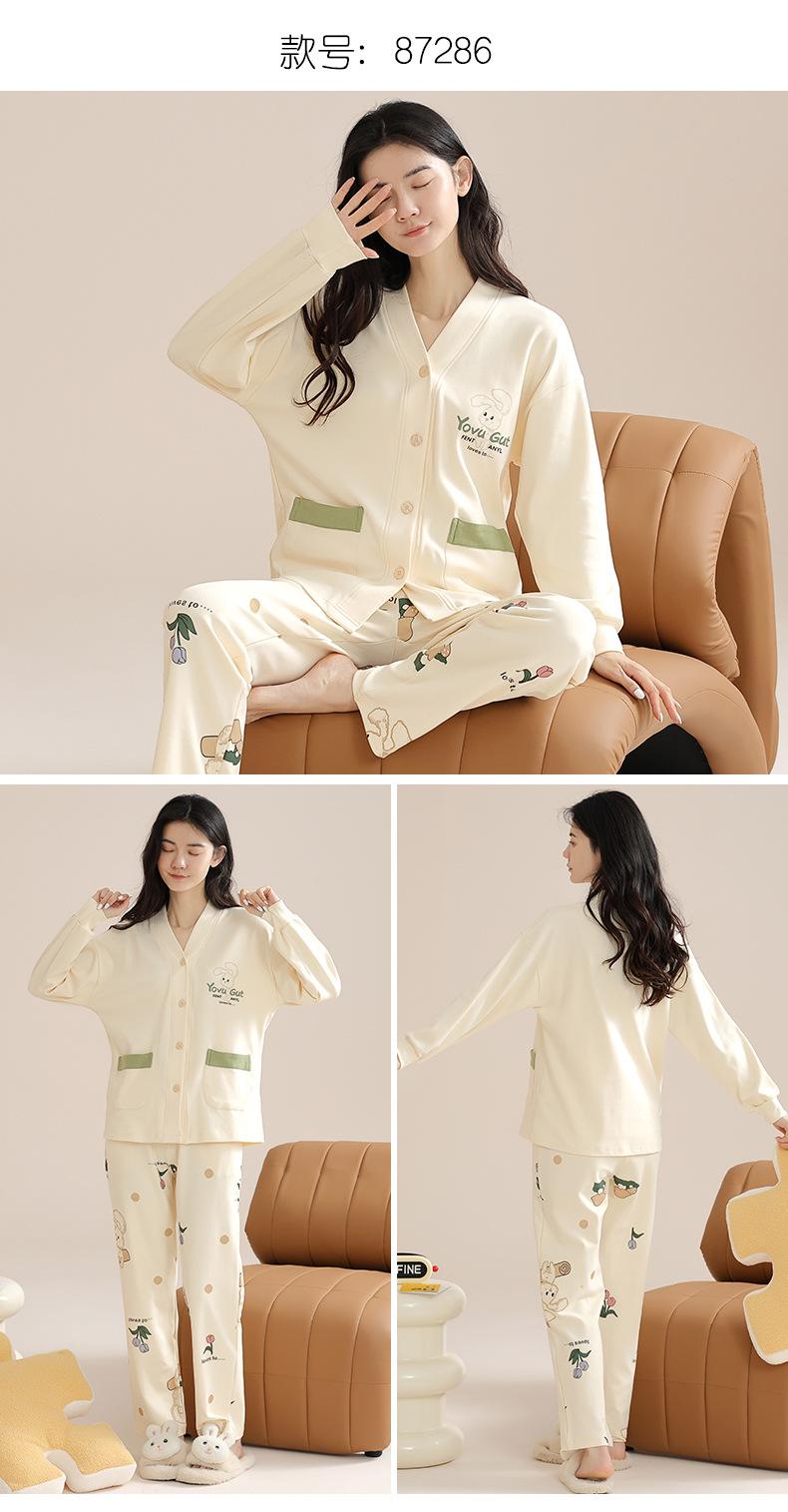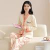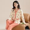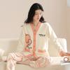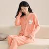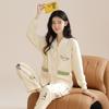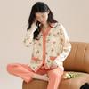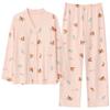 Pijamas de algodón para niña, primavera y otoño, cuello kimono, manga larga, estampado de dibujos animados, cómodos, tallas grandes, ropa exterior para el hogar.