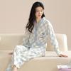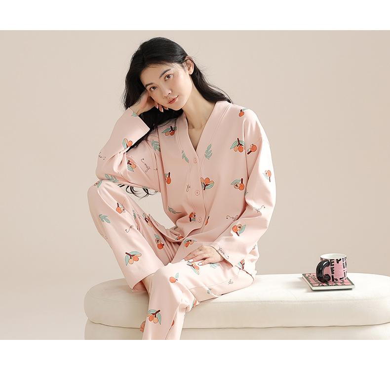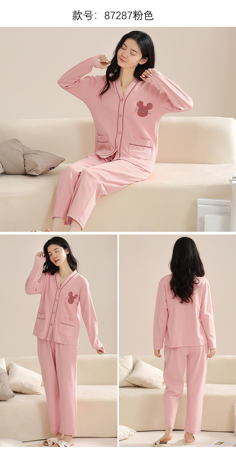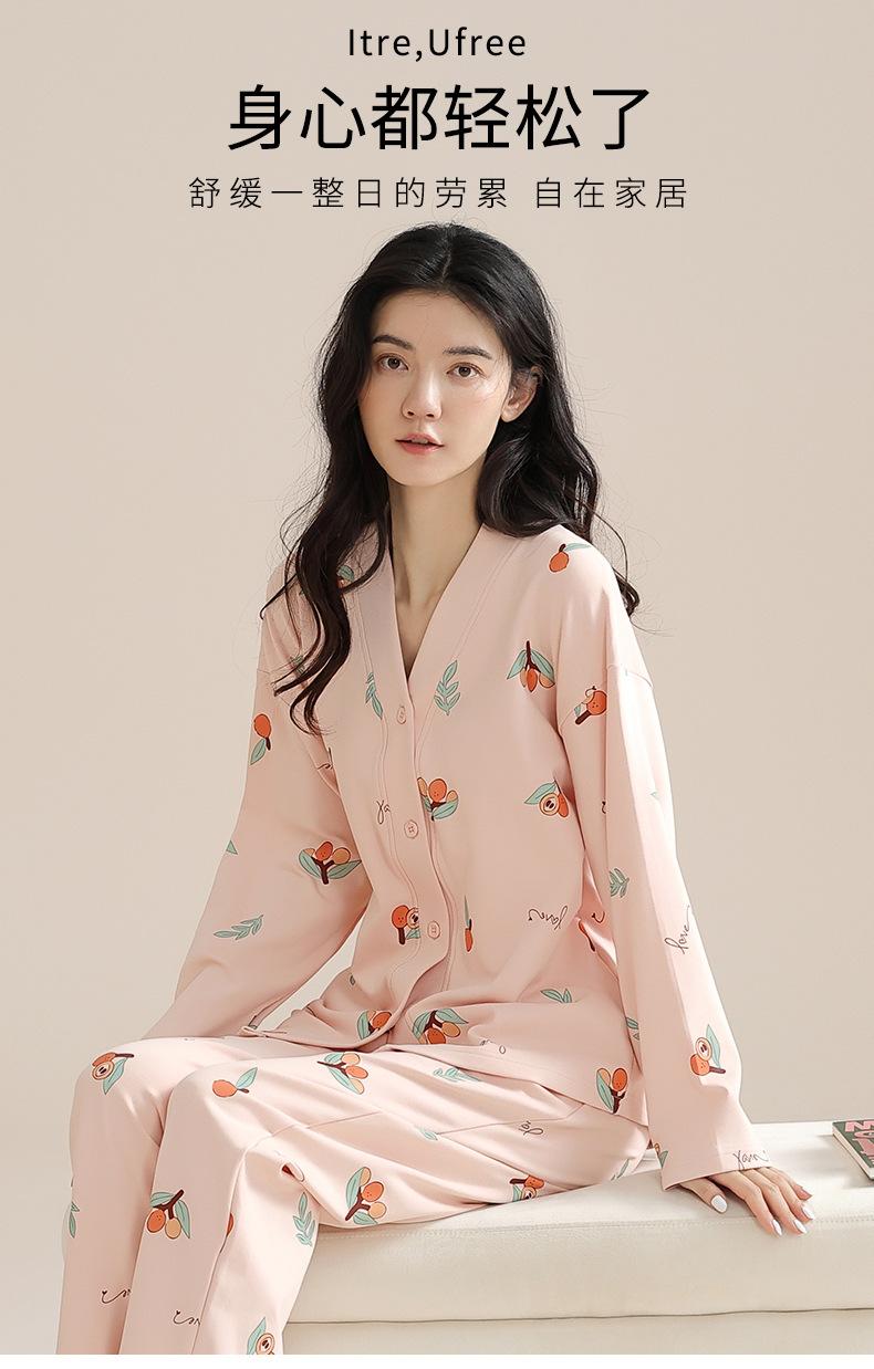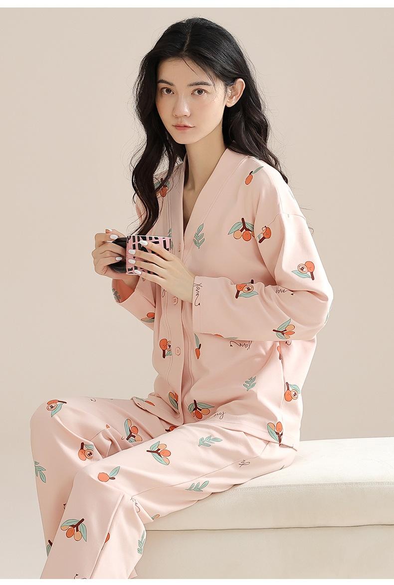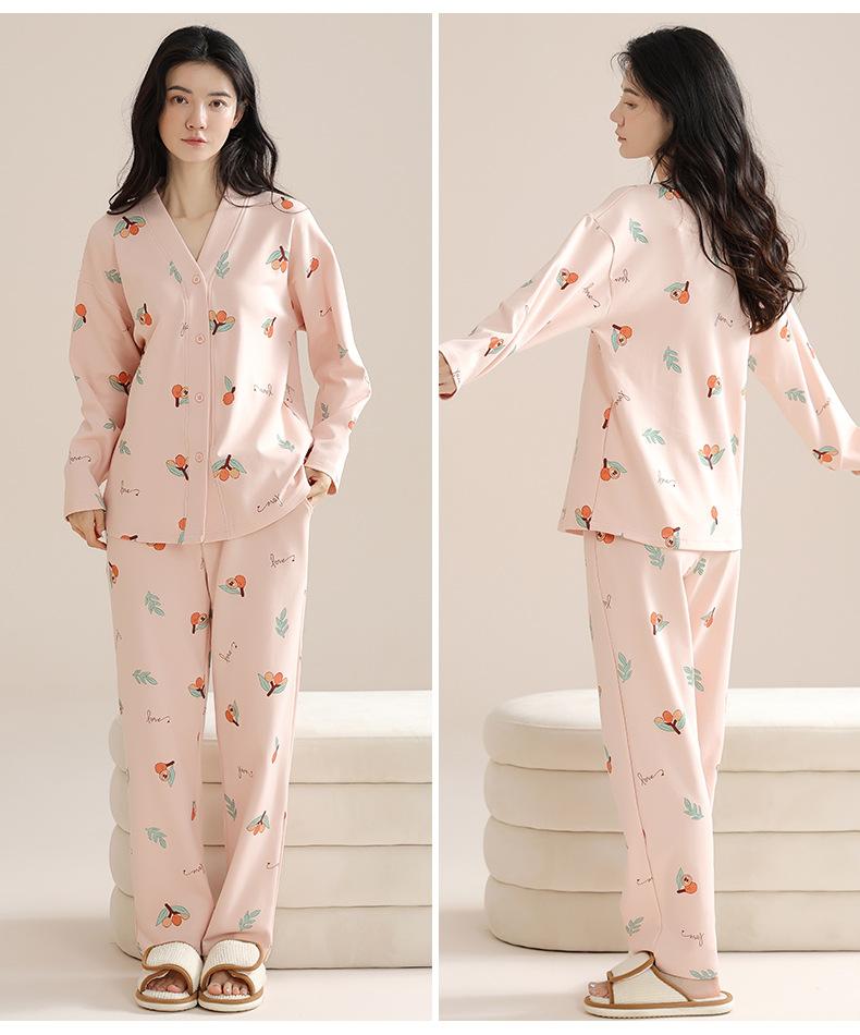 Pijamas de algodón para niña, primavera y otoño, cuello kimono, manga larga, estampado de dibujos animados, cómodos, tallas grandes, ropa exterior para el hogar.
