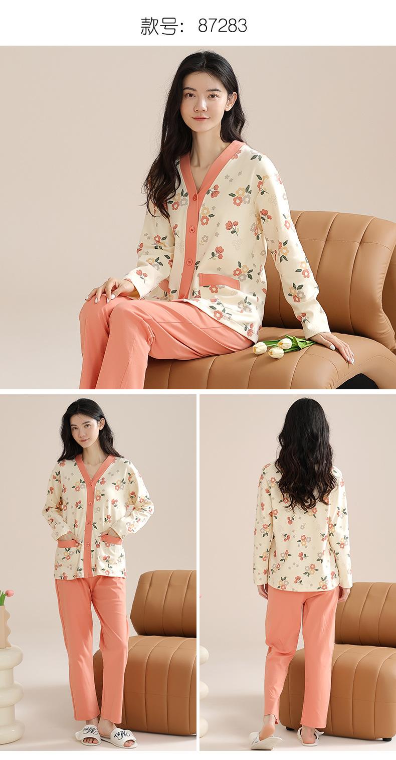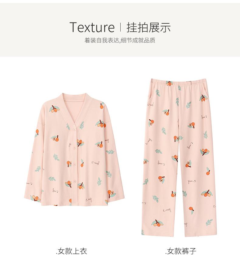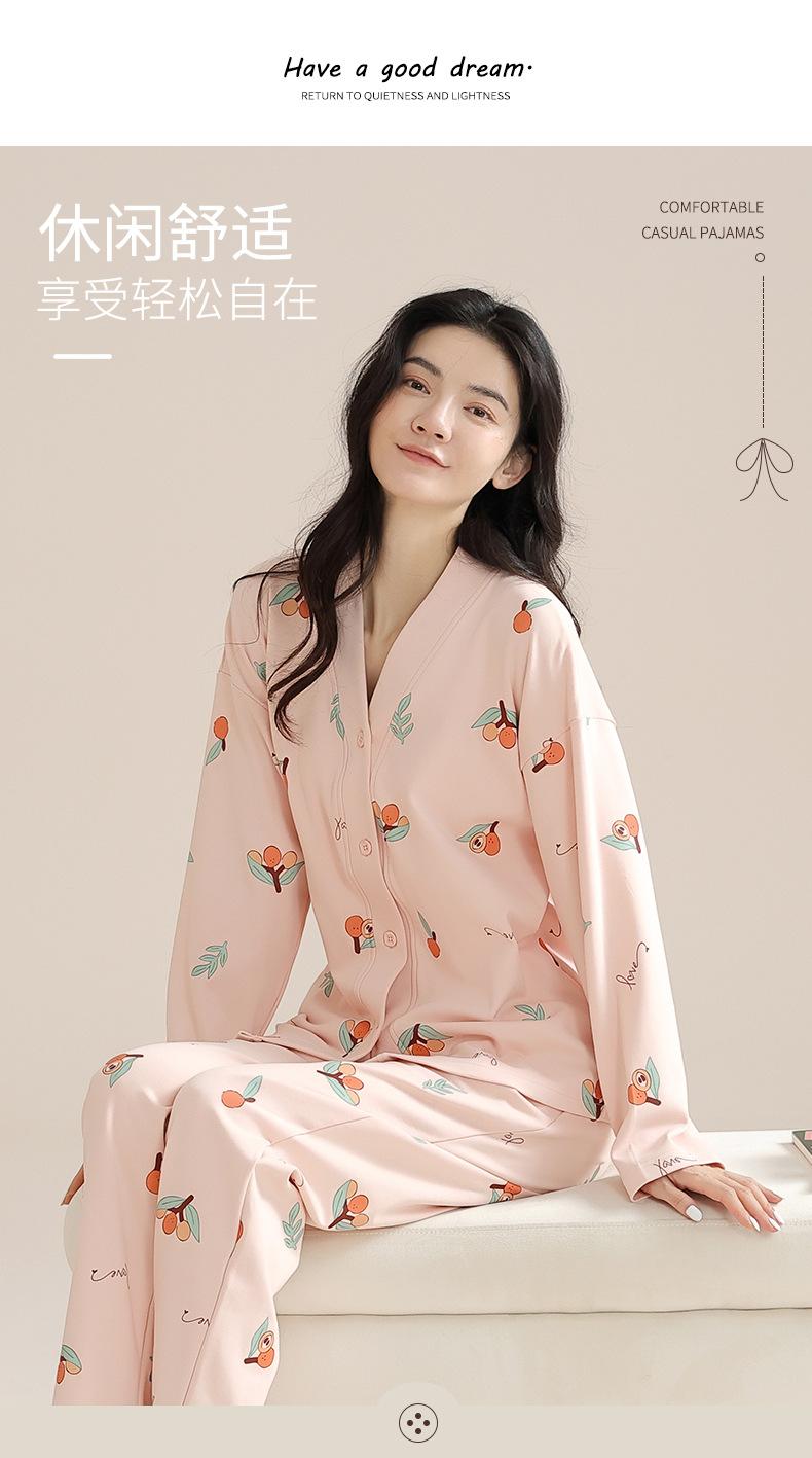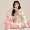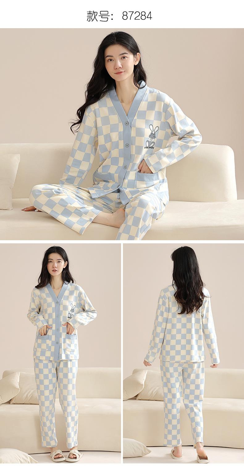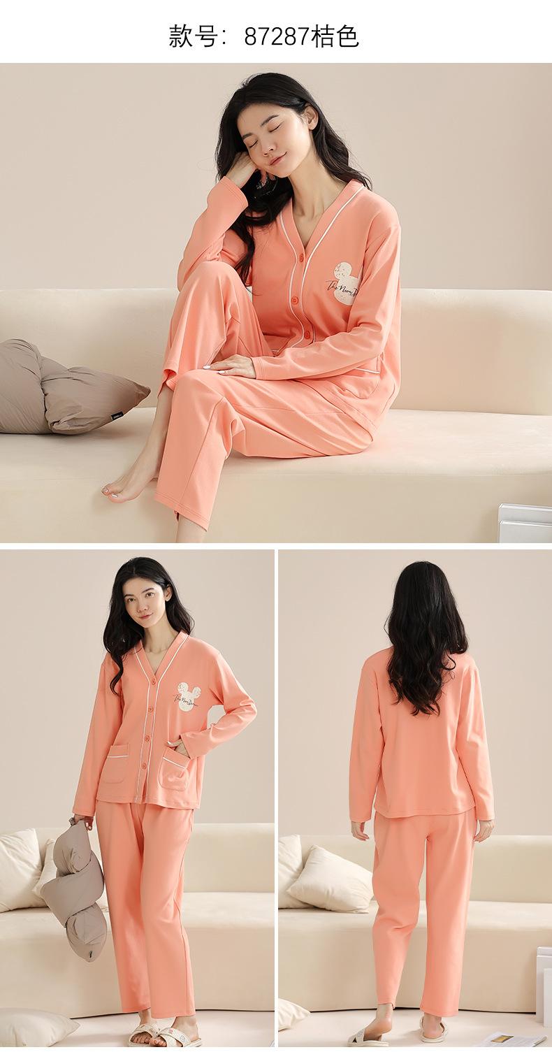 Pijamas de algodón para niña, primavera y otoño, cuello kimono, manga larga, estampado de dibujos animados, cómodos, tallas grandes, ropa exterior para el hogar.