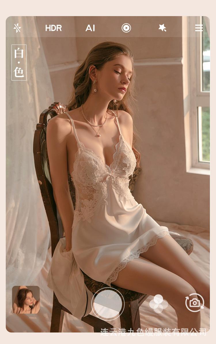 Camisón de Estilo Francés con Almohadilla en el Pecho Encaje Lujo Ligero Bata de Mañana Sexy Camisón de Tirantes Puro Verano Ropa de Casa Cómoda para Mujer