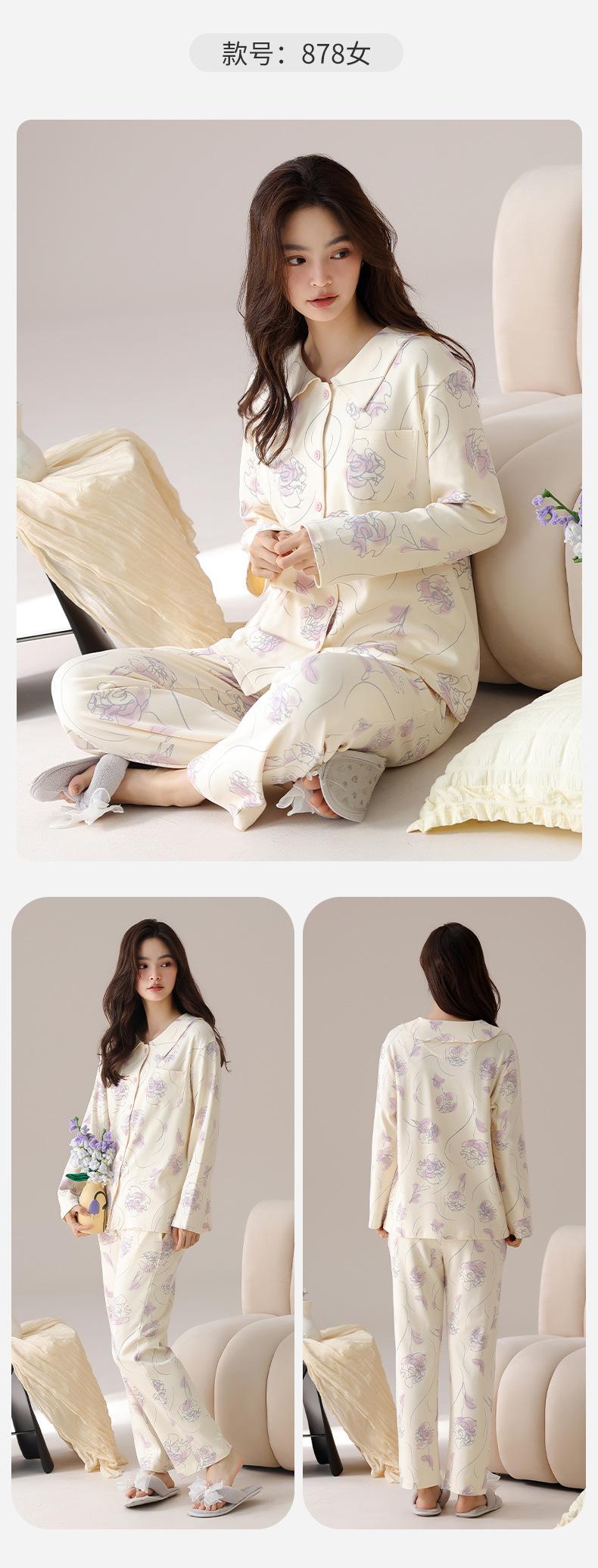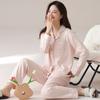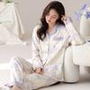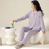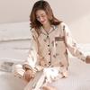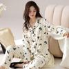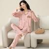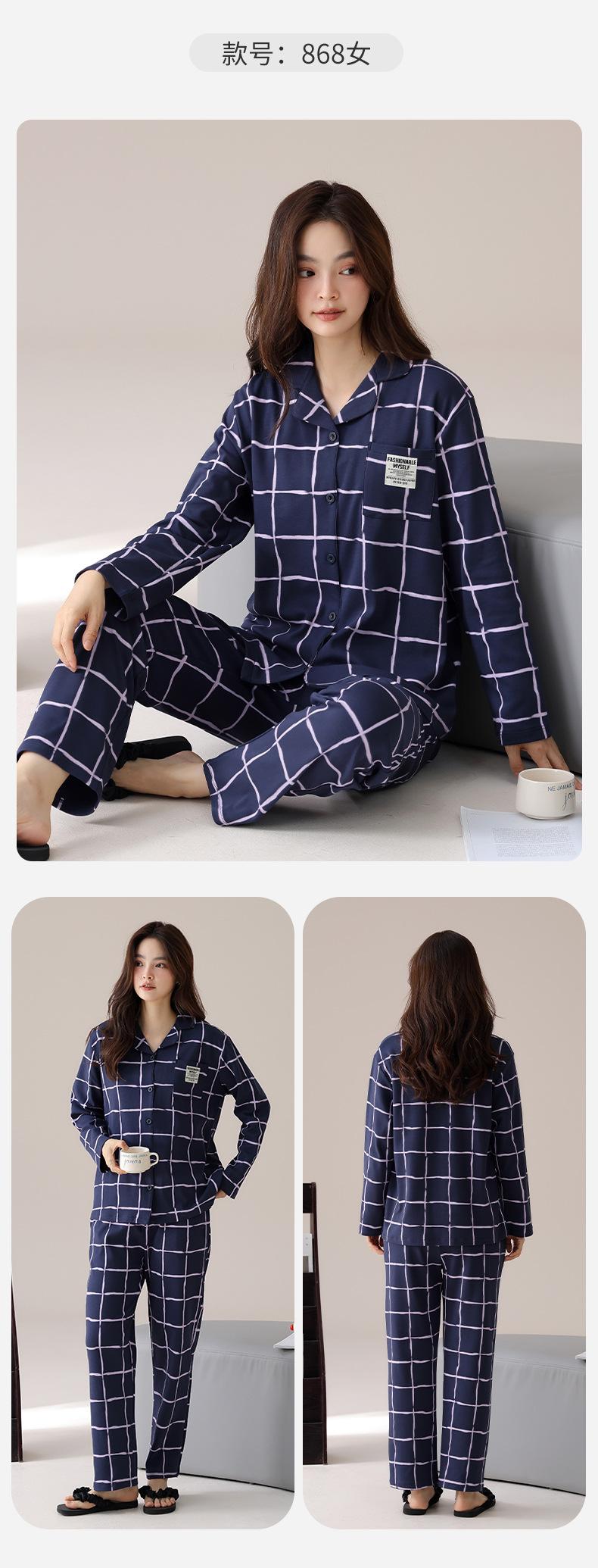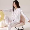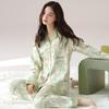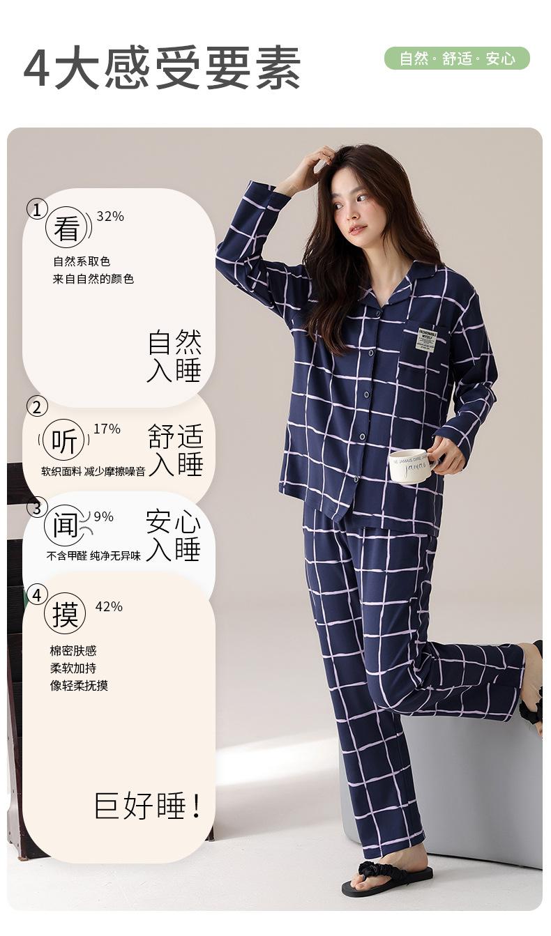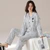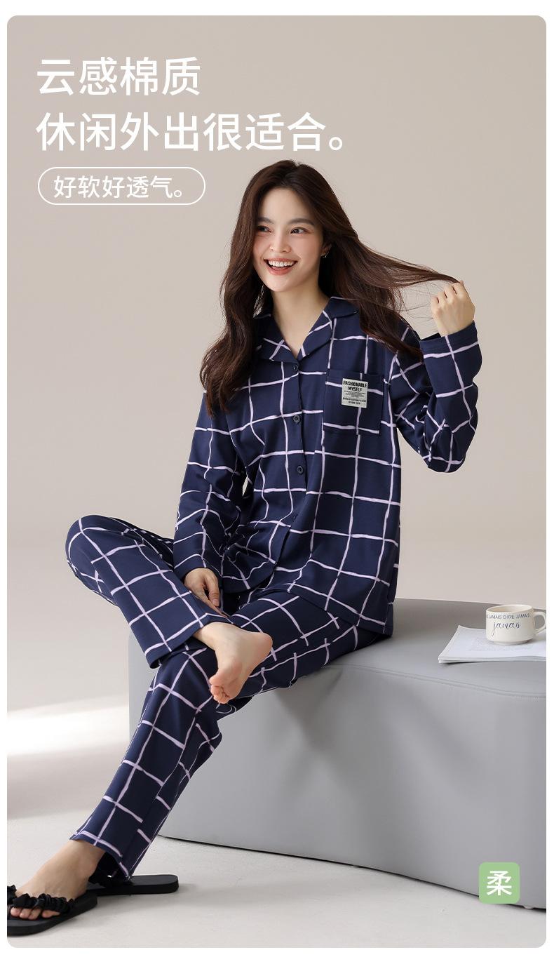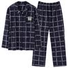 Pijamas de mujer finos de algodón puro, primavera y otoño, pantalones de manga larga, cárdigan de solapa, ropa de abrigo a cuadros imprimible, ropa de casa para mujer