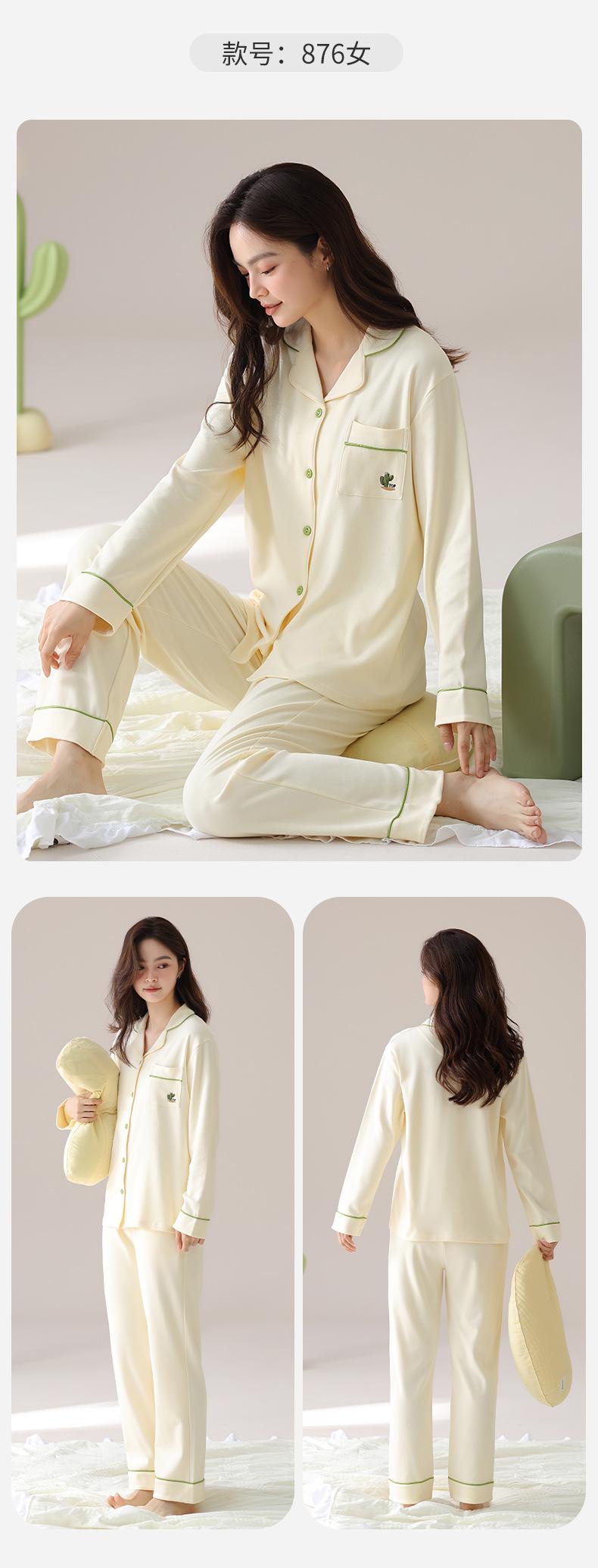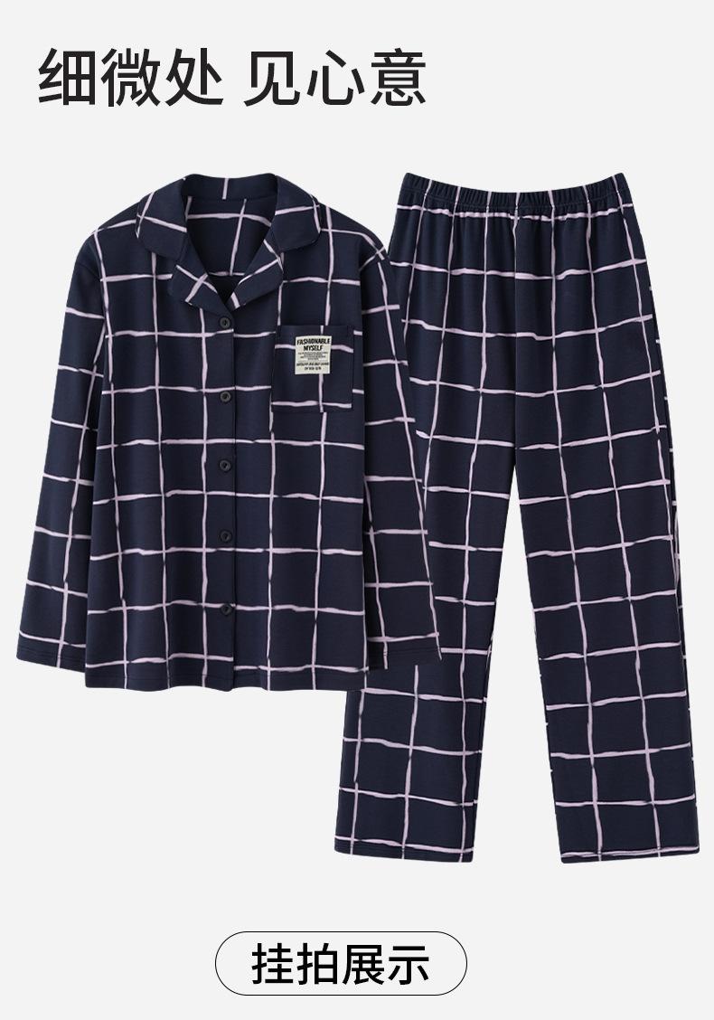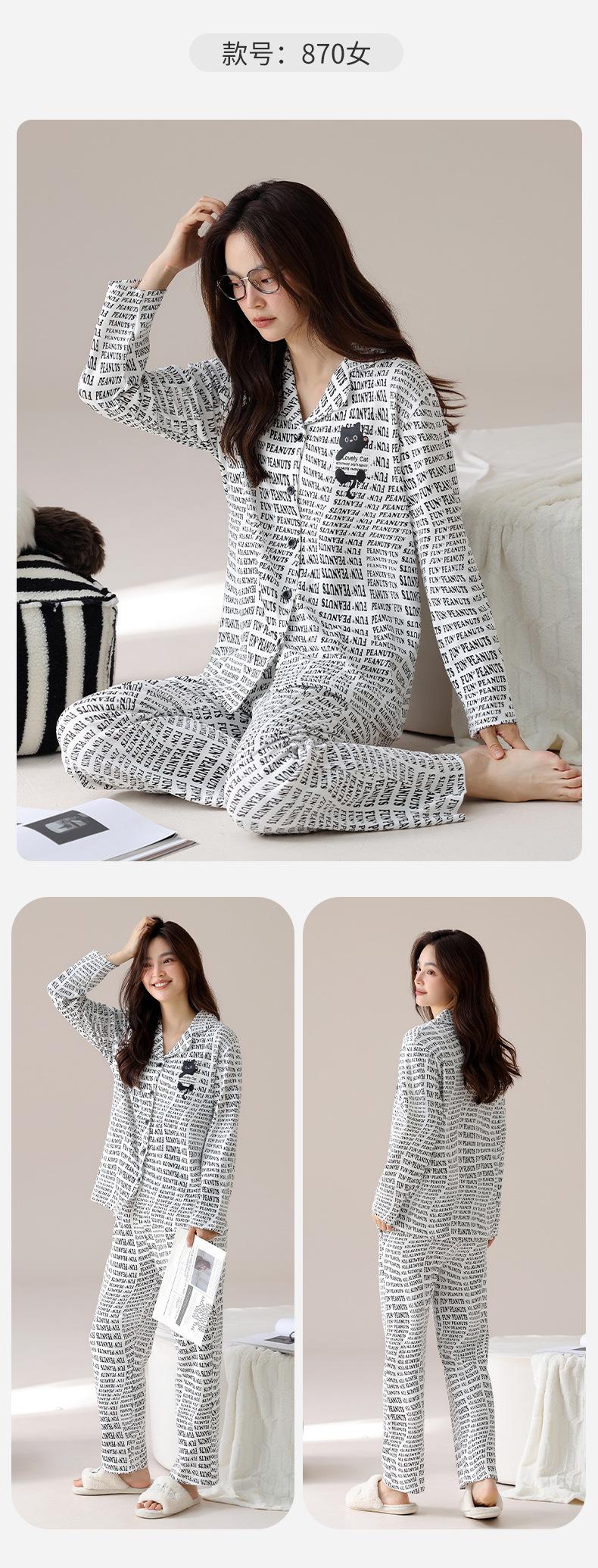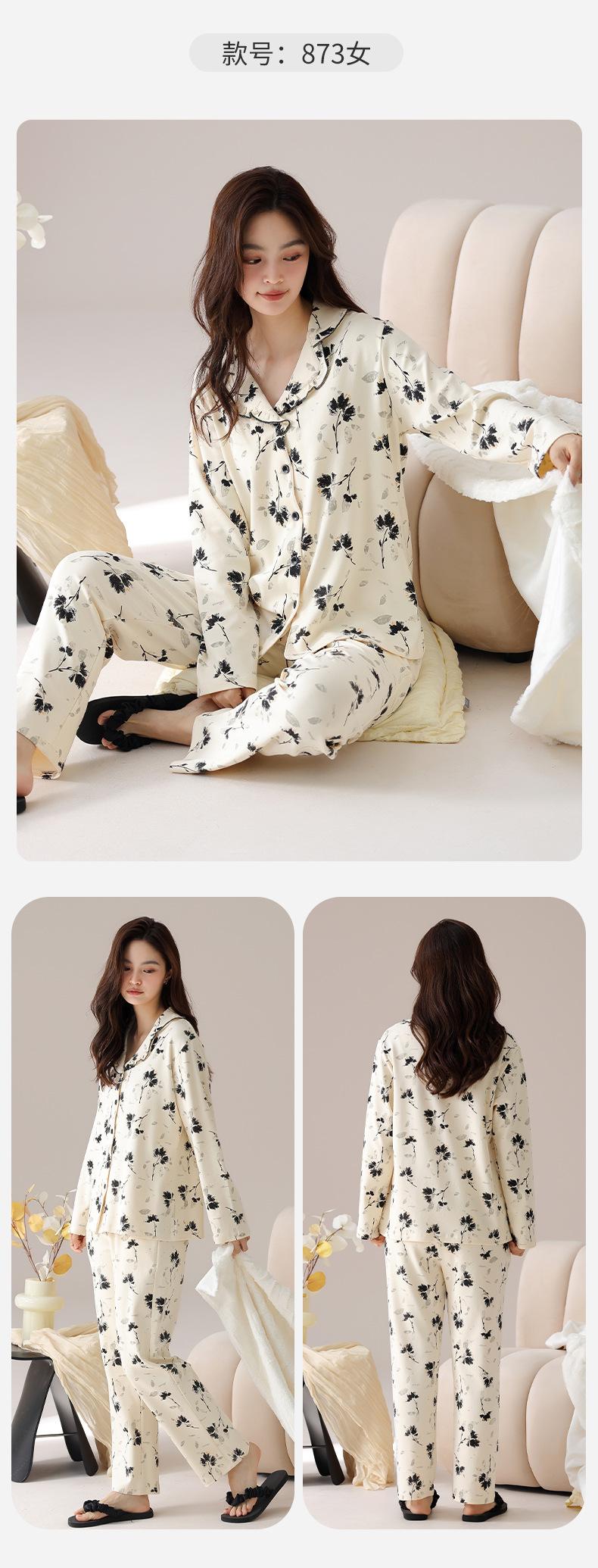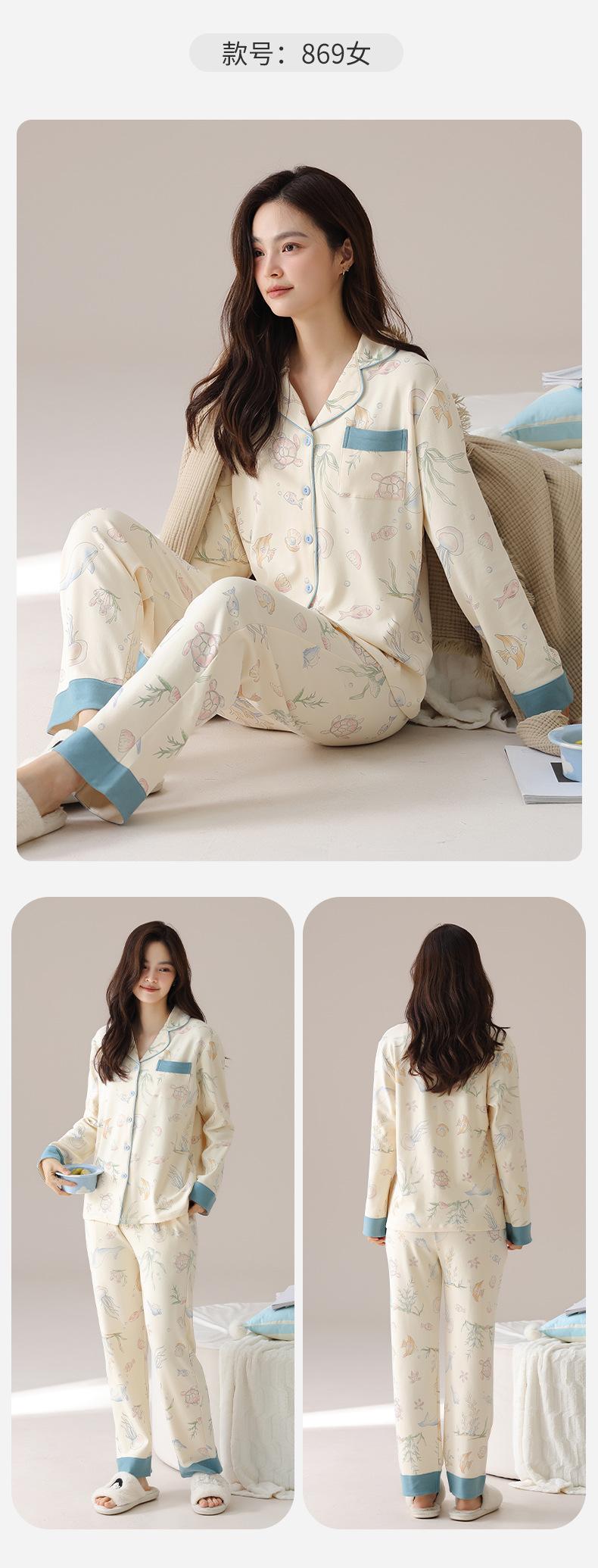 Pijamas de mujer finos de algodón puro, primavera y otoño, pantalones de manga larga, cárdigan de solapa, ropa de abrigo a cuadros imprimible, ropa de casa para mujer