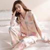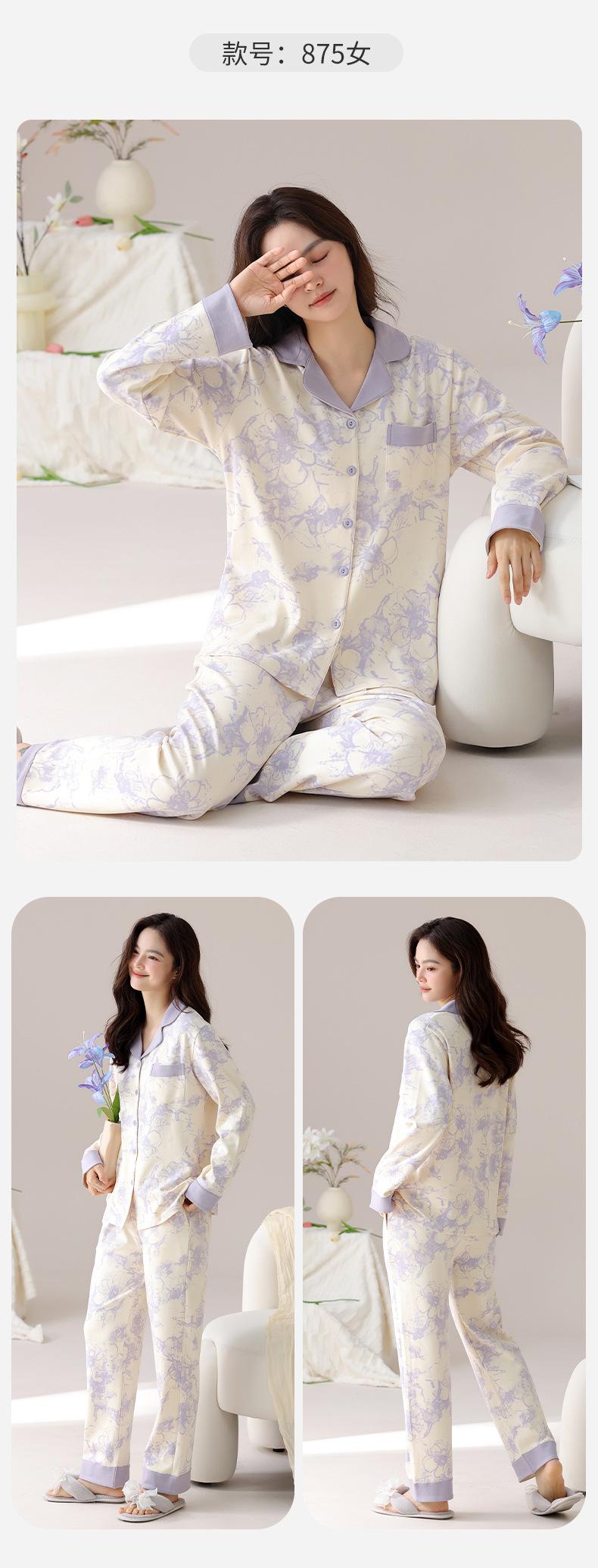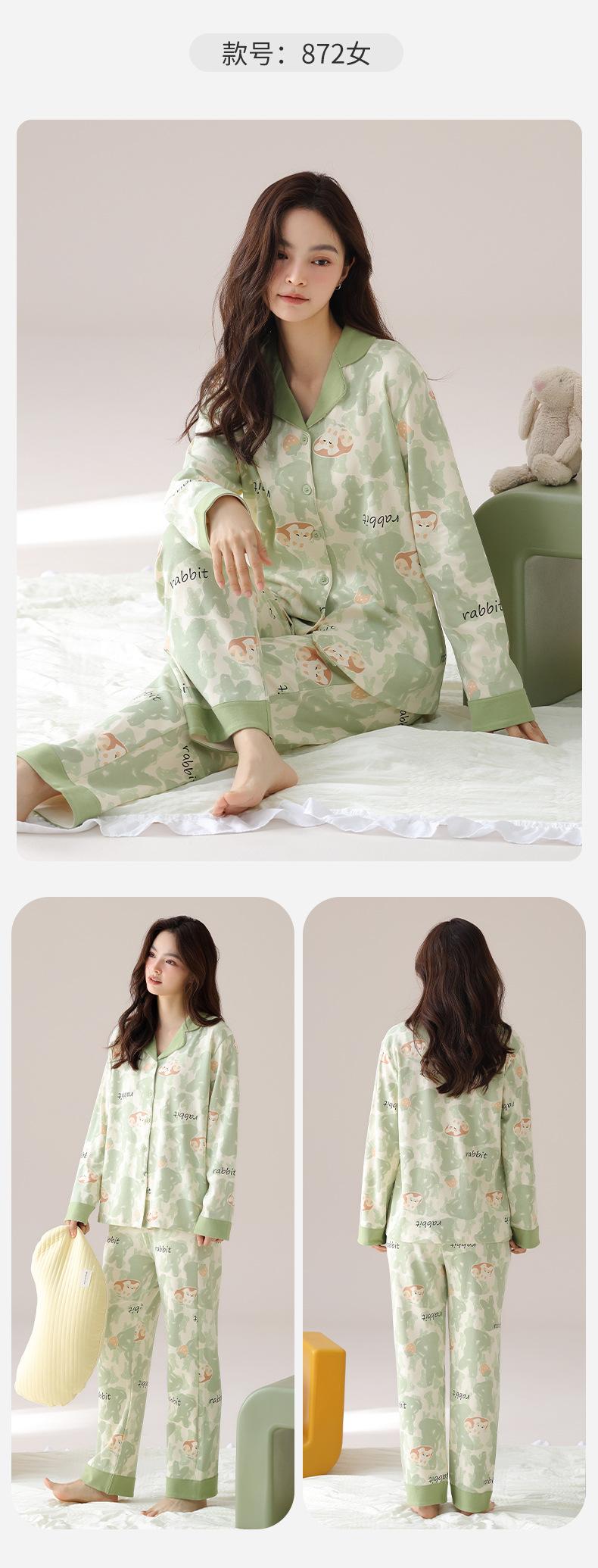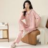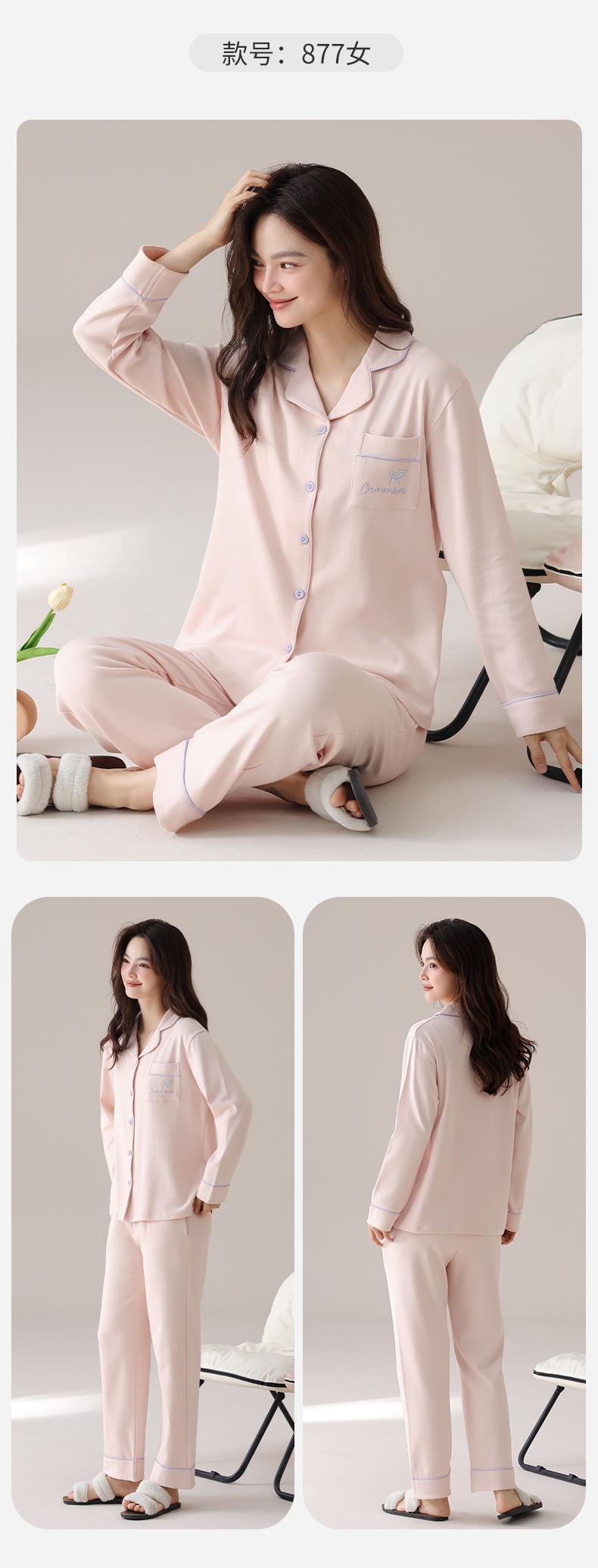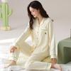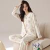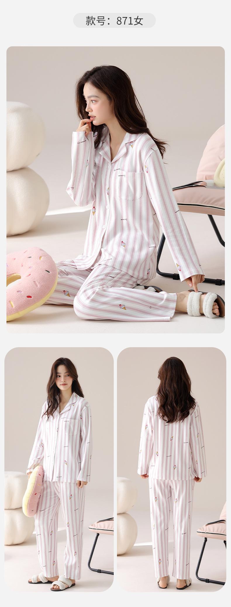 Pijamas de mujer finos de algodón puro, primavera y otoño, pantalones de manga larga, cárdigan de solapa, ropa de abrigo a cuadros imprimible, ropa de casa para mujer