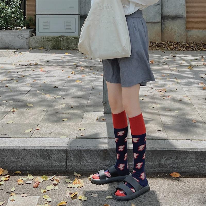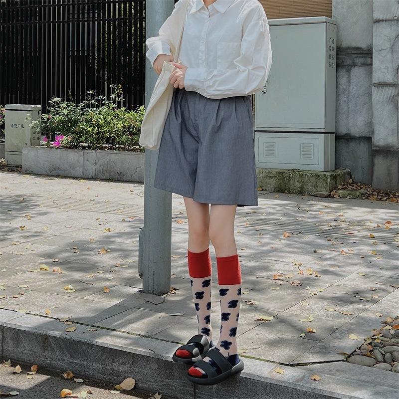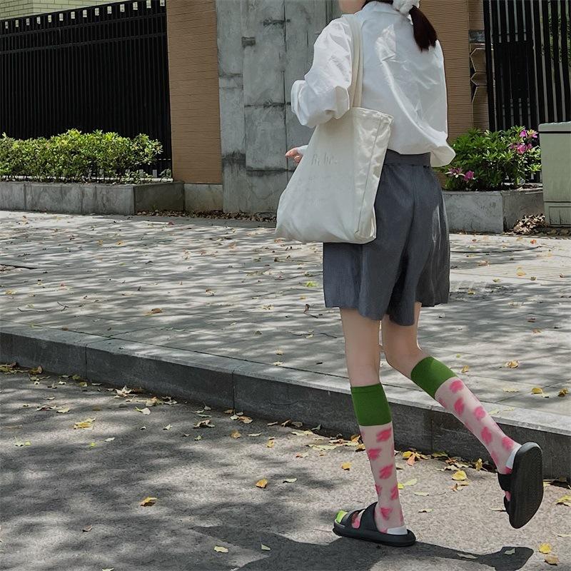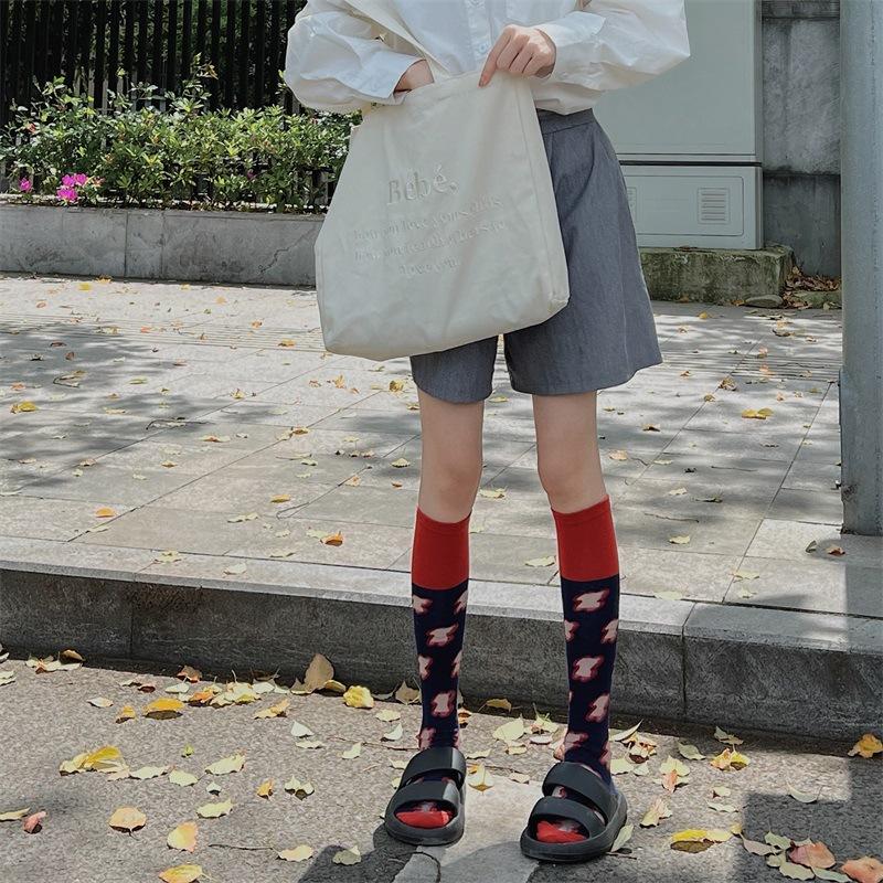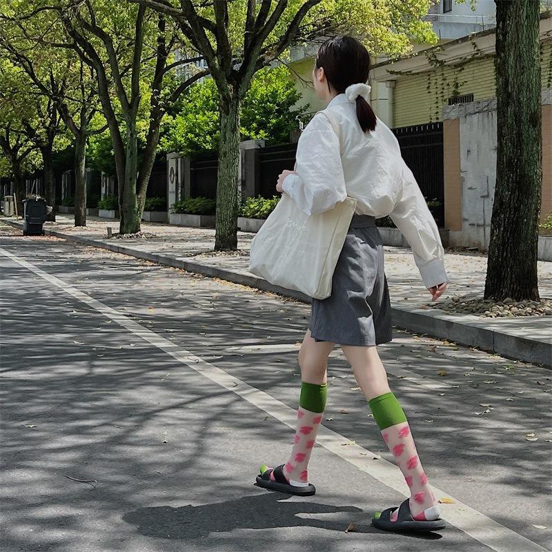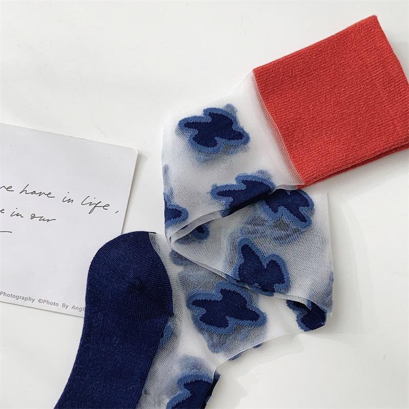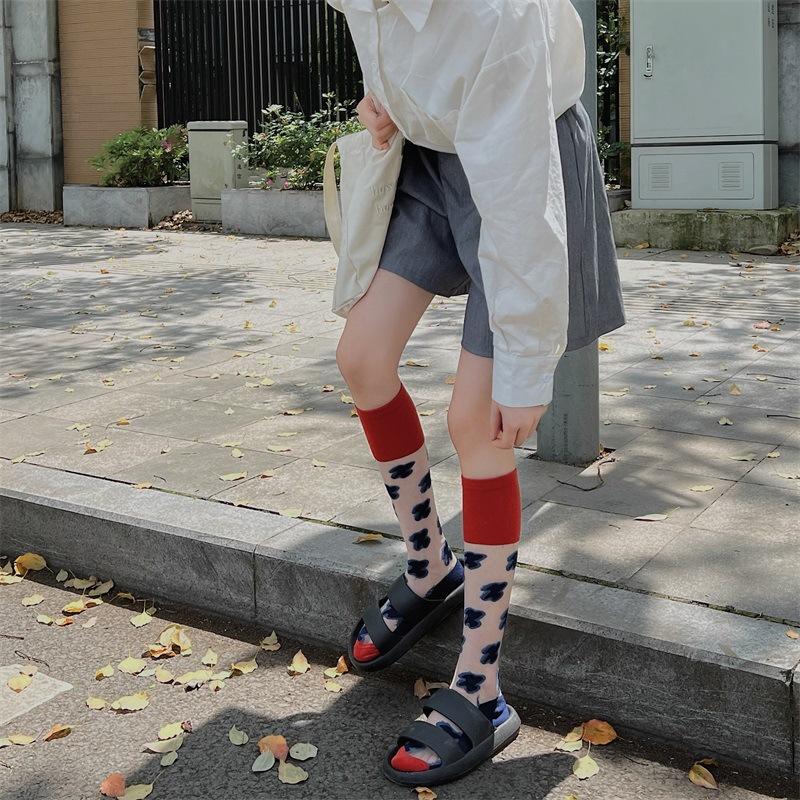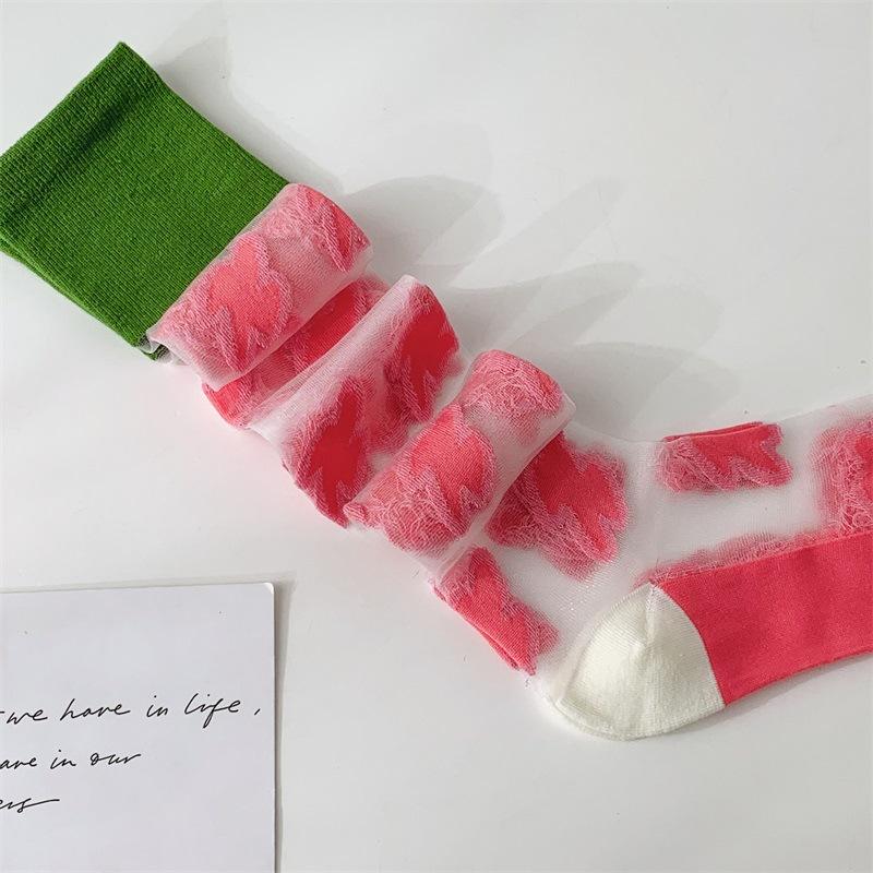 Calcetines de verano para mujer, medias hasta la rodilla, estilo japonés, estilo francés, con pequeñas flores, medias finas de cristal JK Net rojas.