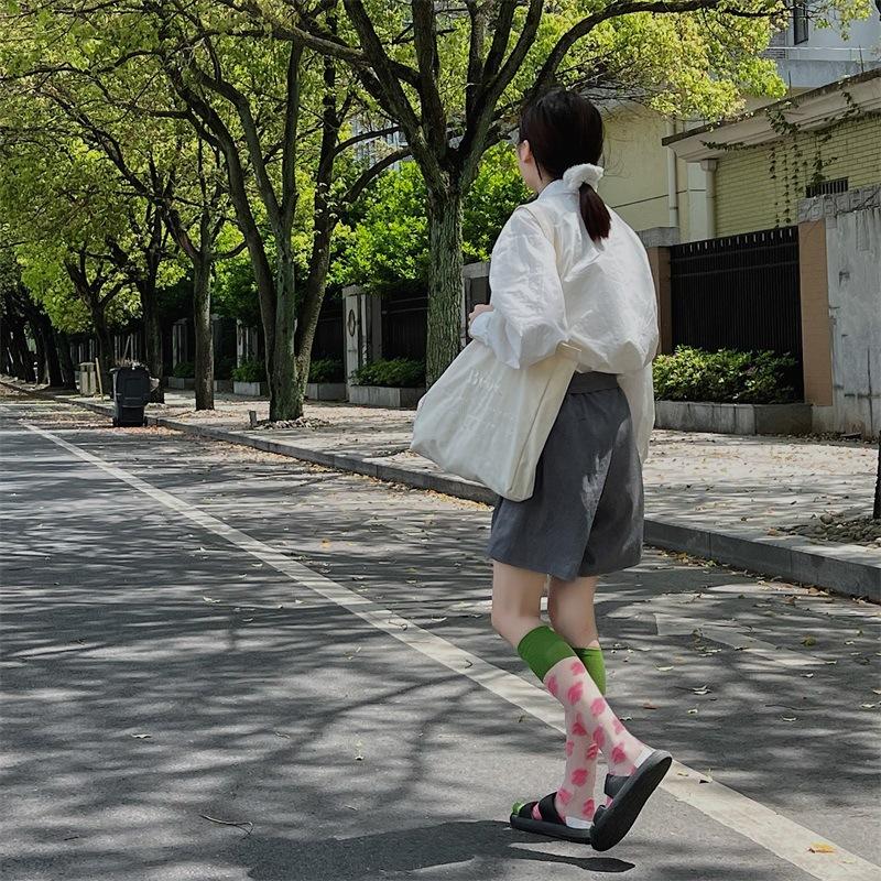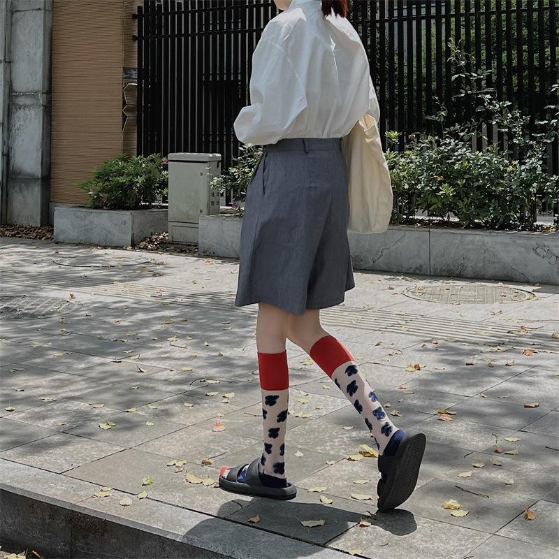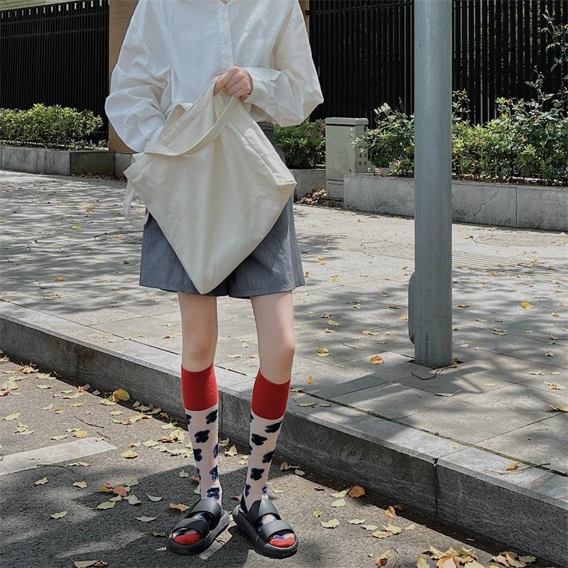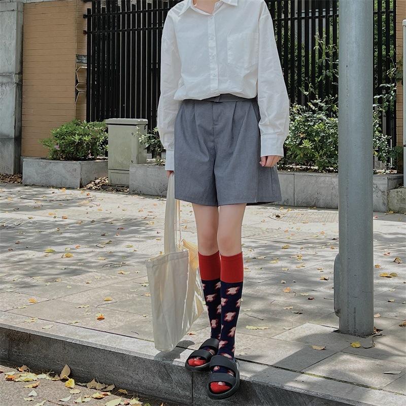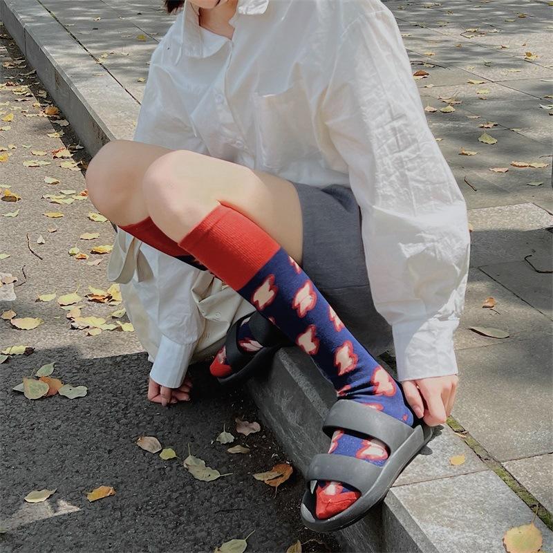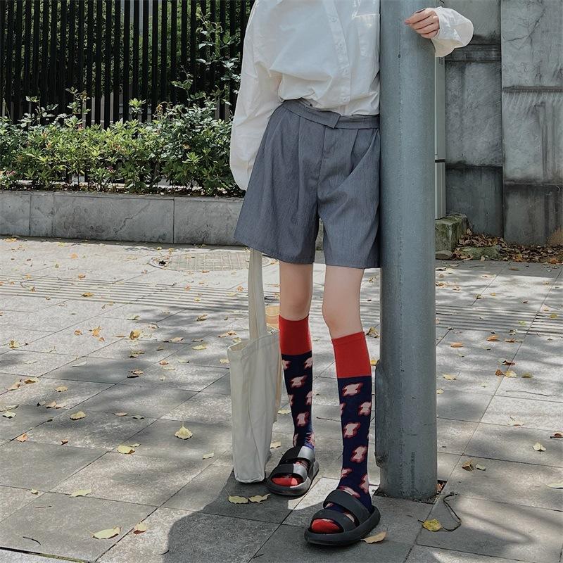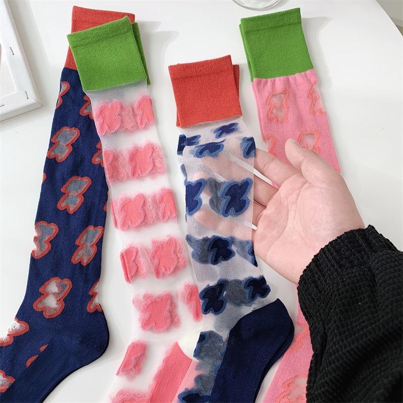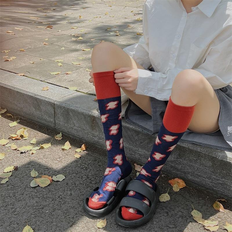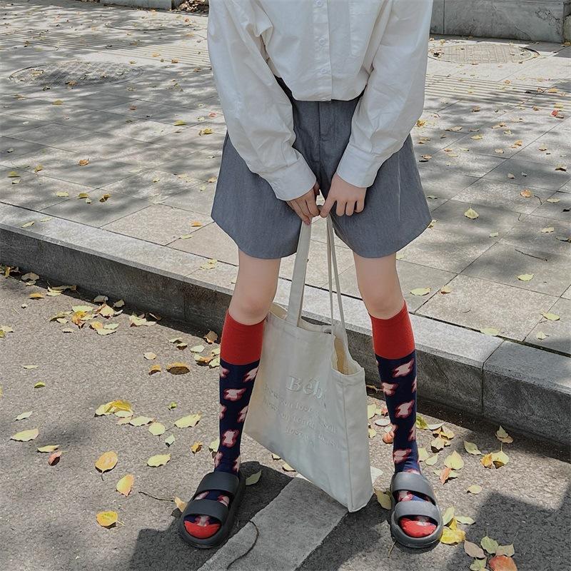 Calcetines de verano para mujer, medias hasta la rodilla, estilo japonés, estilo francés, con pequeñas flores, medias finas de cristal JK Net rojas.