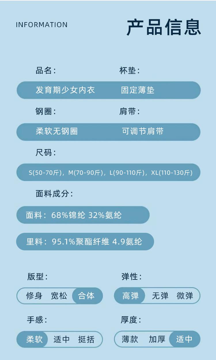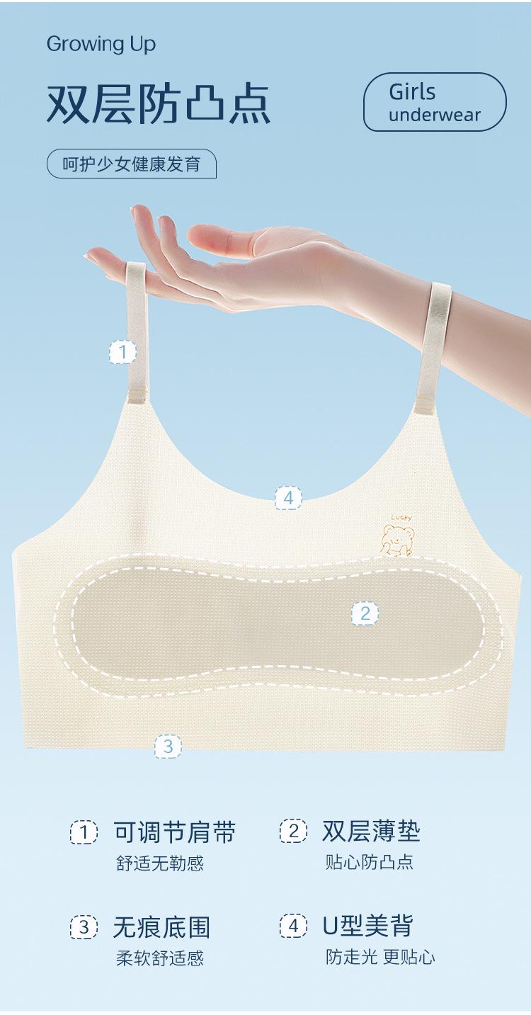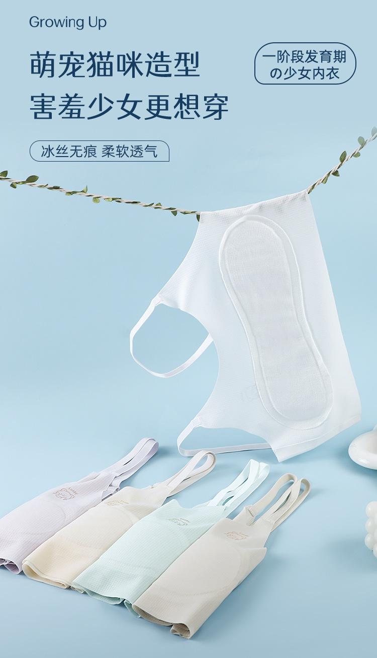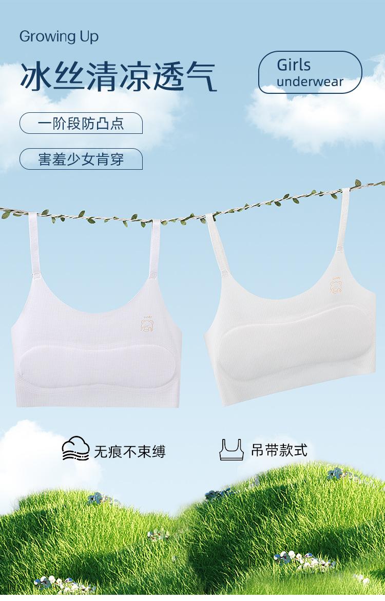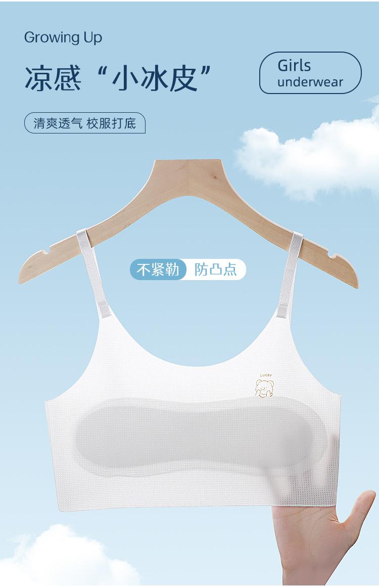 Ropa interior para niñas de 7 a 16 años, transpirable, de seda helada, para estudiantes de primaria y secundaria, sin tirantes, fina, para el desarrollo de la pubertad.
