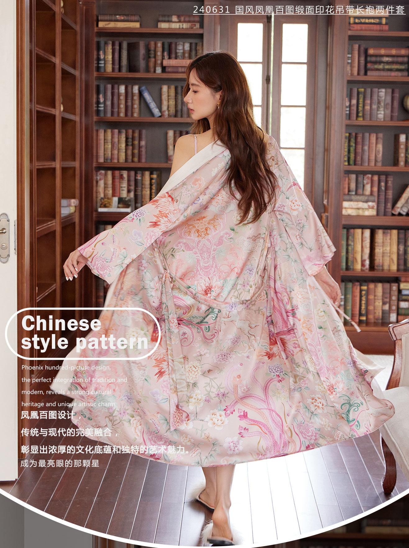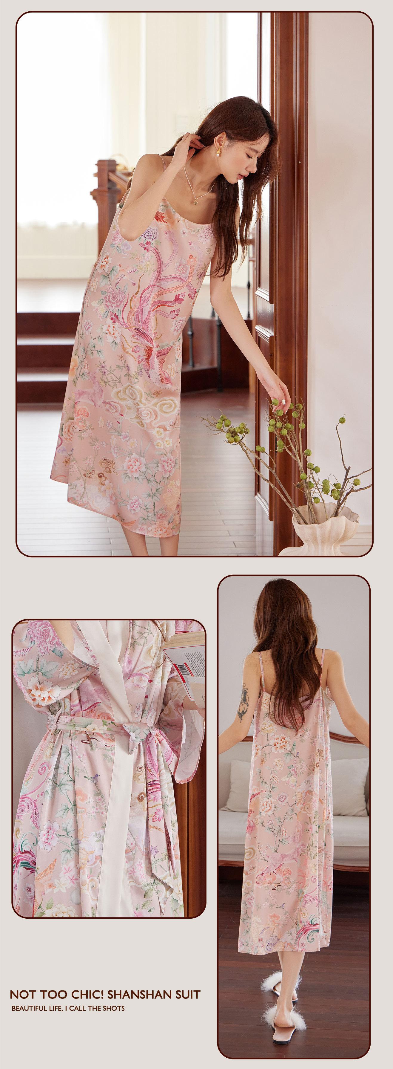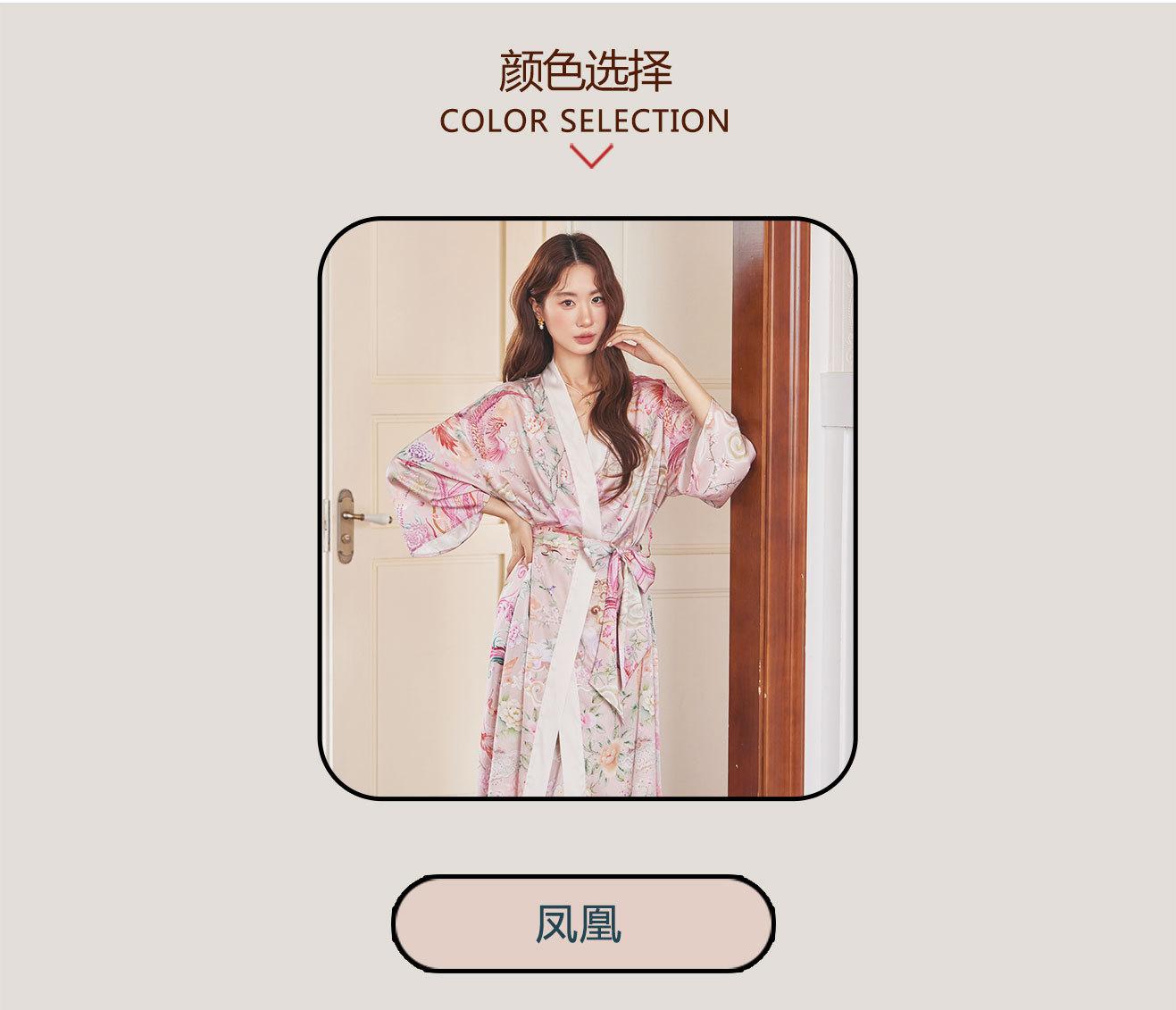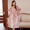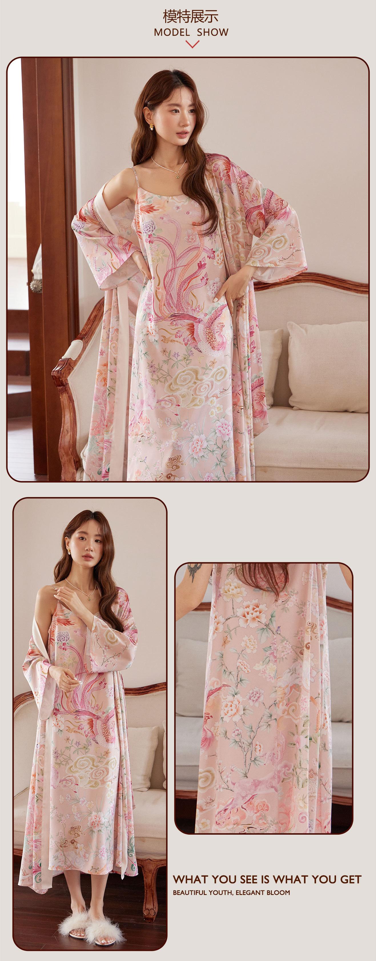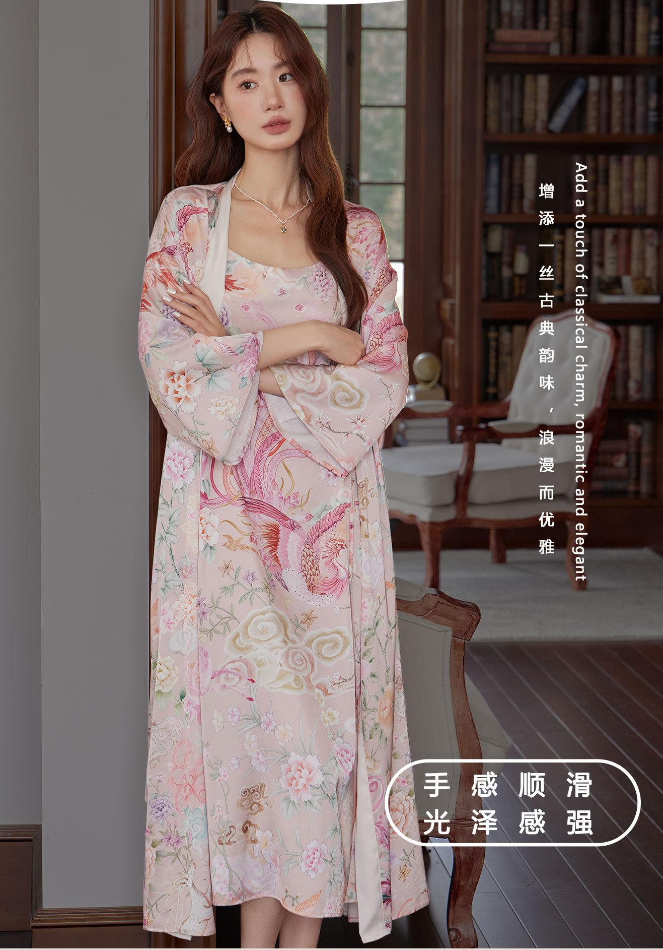 Bata Camisón Bata de Mañana Grulla Pijama Primavera y Otoño Estampado de Seda Talla Grande Verano