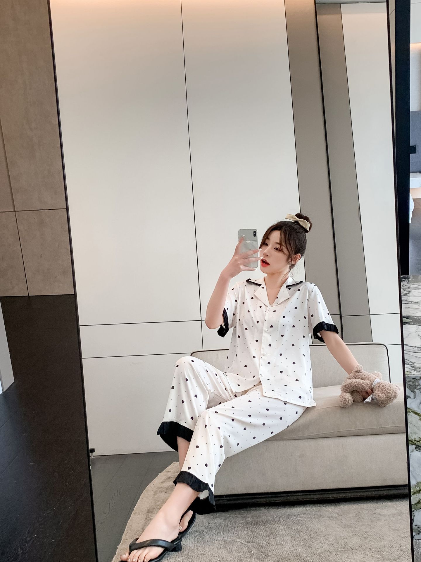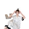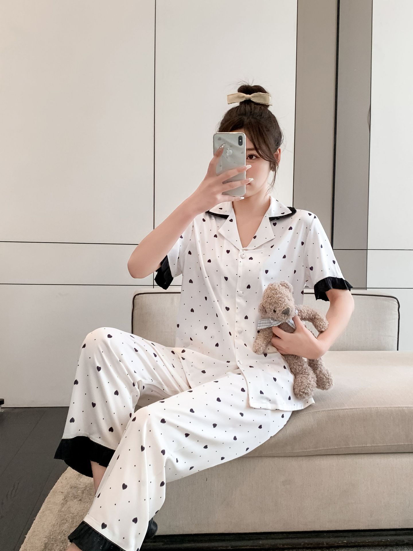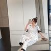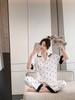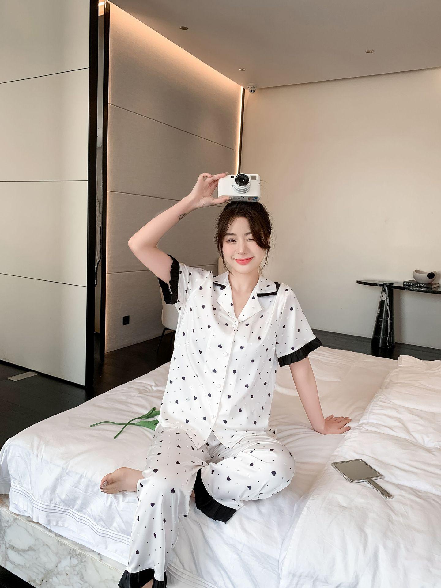 Pijamas de seda de hielo para mujer, ropa de dormir de manga corta con estampado de amor para el hogar, pijamas de seda de imitación, venta al por mayor, primavera y verano 2023
