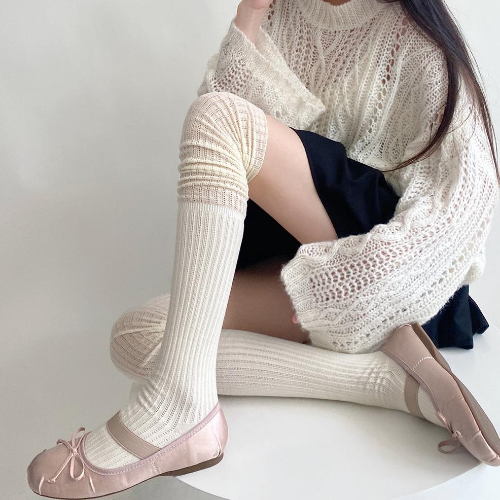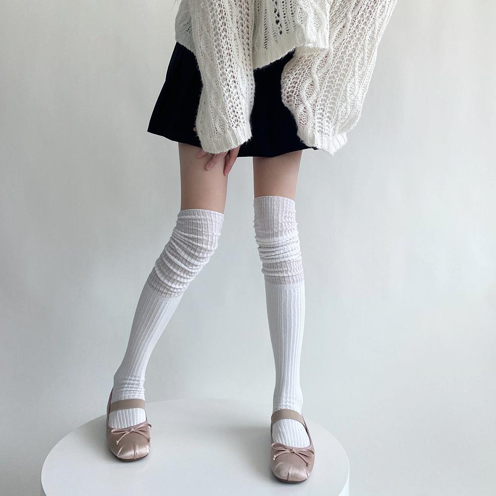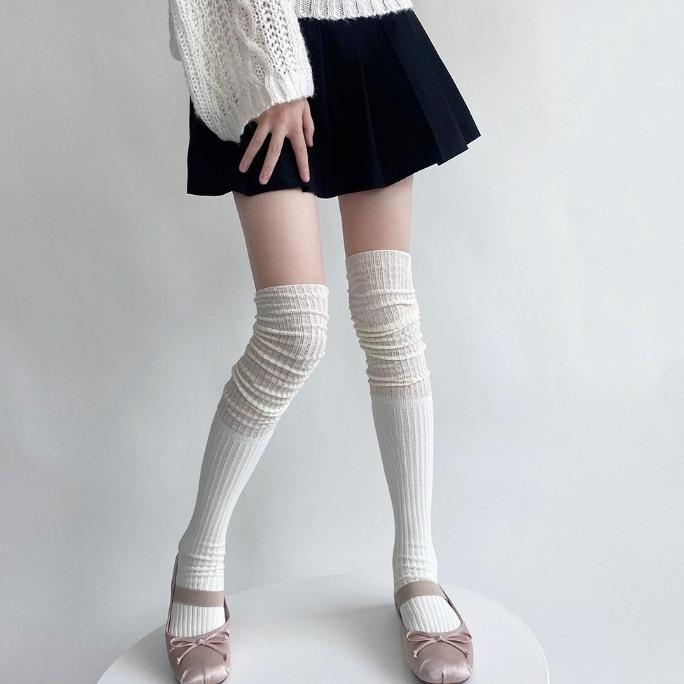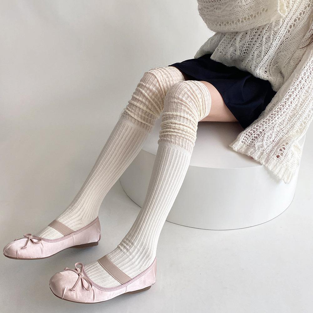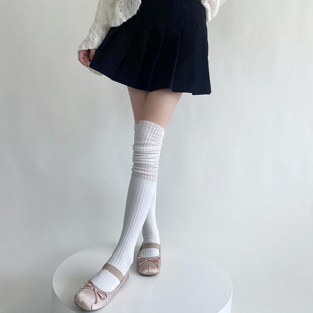 Calcetines de pelo hueco por encima de la rodilla de otoño e invierno, calcetines jk blancos lechosos suaves de otoño e invierno, calcetines altos con costura japonesa para mujer, calcetines hasta el muslo