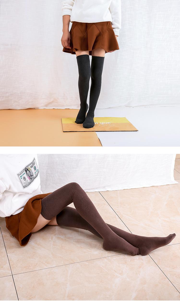 Calcetines altos hasta el muslo de color sólido para mujer, calcetines hasta el muslo de otoño e invierno, medias de algodón peinado de micro-presión, deportivas transpirables, distribución de fábrica