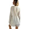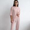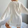 Conjunto de pijama de dos piezas de manga larga con cuello redondo para mujer, ropa de hogar de Jacquard de punto elástico transpirable blanco de otoño 2024, estilo europeo y americano