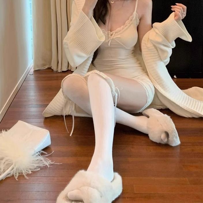 Milky white-lace [bow on the front]], Black-lace, Dark gray-lace, Milky white-lace-calf socks, Milky White soc...