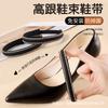 Zapatos de tacón alto ajustables sin instalación, con correa de cordón apretada y suelta, zapatos de cuero, grandes, sin tacón, tacón anticaída, fijos e invisibles.